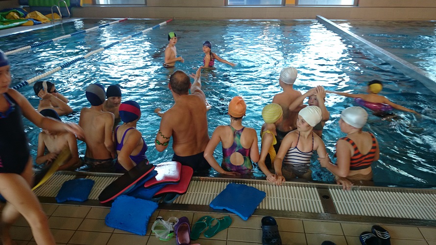 Dzięki staraniom Dyrektora naszej szkoły, Pani Wójt gminy Jastrzębia i Rodziców, uczniowe naszej szkoły i przedszkolaki uczęszczają na zajęcia basenowe. Nauka pływania w ramach zajęć wf sprawia dzieciom wielką frajdę. Dzieci uczęszczają na basen co poniedziałek i uczą sie bardzo szybko. Oprócz pływania dzieci korzystają z wielu atrakcji m.in: basenu sportowego o wymiarach 25X16 m, basenu do nauki pływania dla dzieci i młodzieży o skrajnych głębokościach 90 i 120 cm, brodzika o głębokości 30 cm dla dzieci najmłodszych z atrakcjami wodnymi i zjeżdżalnią, basenu rekreacyjnego z podwodną ławą wypoczynkową do leżenia i podwodnym masażem, pięciostanowiskowym ciśnieniowym masażem karku o różnych szerokościach strumienia wody, miejscem wytworzenia „sztucznej fali”, profesjonalnym jacuzzi, „hamownią” czyli miejscem wylotu z dwóch zjeżdżalni, zjeżdżalni o długości 75 i 67 metrów posiadających wewnętrzne atrakcje świetlne i głosowe.
