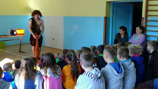 Szalony jaskiniowiec Mietek i jego kolega alchemik Albert wprowadzili nas w świat chemii i fizyki oraz przyrody. Mogliśmy nauczyć się z czego składa się ludzkie ciało i jak jest zbudowane. Dziękujemy miłym gościom za przybycie.