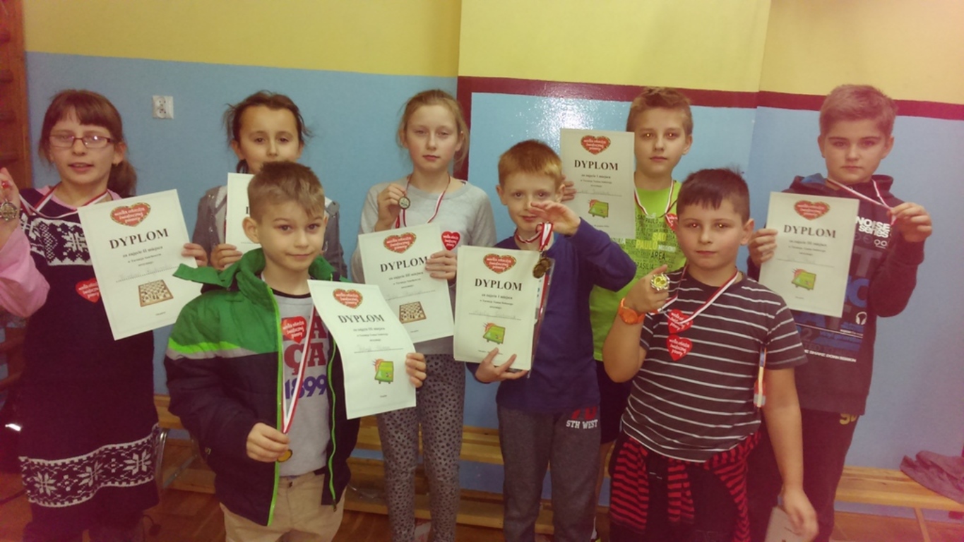 W dniu 10 stycznia 2016 roku nasza szkoła wzięła udział w szczytnym celu. Z okazji Wielkiej Orkiestry Świątecznej Pomocy nasi uczniowie wraz z uczniami z PS w Jedlińsku oraz Rodzice wzięli udział w w trzech turniejach: tenisa stołowego, warcabowym oraz szachowym. Wolontariusze WOŚP (uczniowie PS w Jedlińsku) zebrali środki, które zostaną przeznaczone na Wielką Orkiestrę Świątecznej Pomocy . Dziękujemy Panu Dyrektorowi PS w Jedlińsku - Janowi Dupli, wolonatriuszom, Rodzicom i przede wszystkim uczniom za udział w tej inicjatywie.