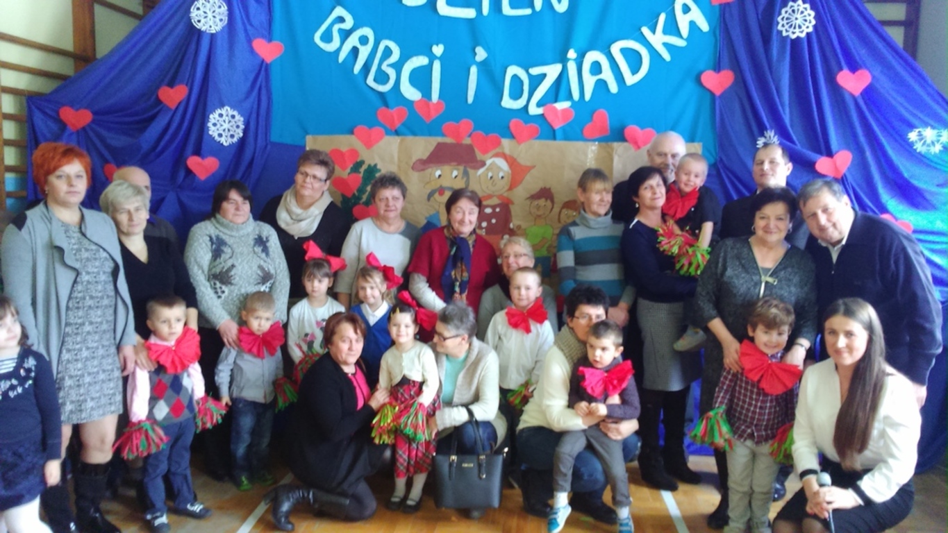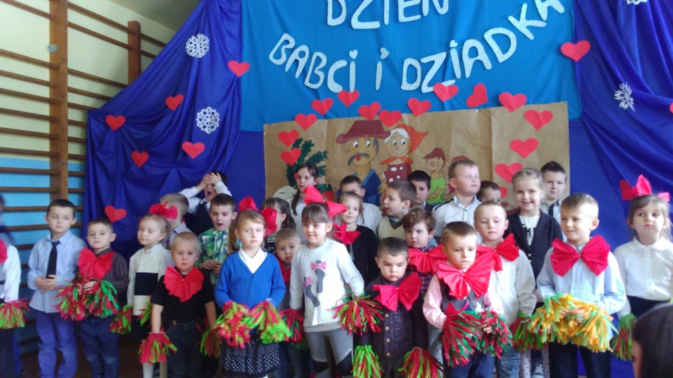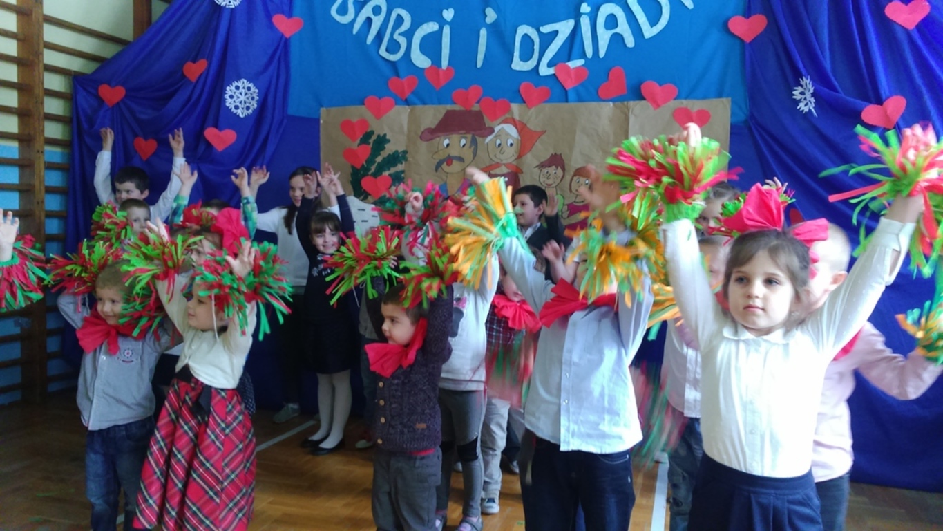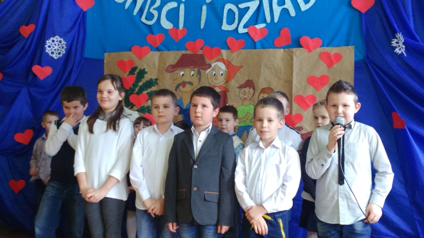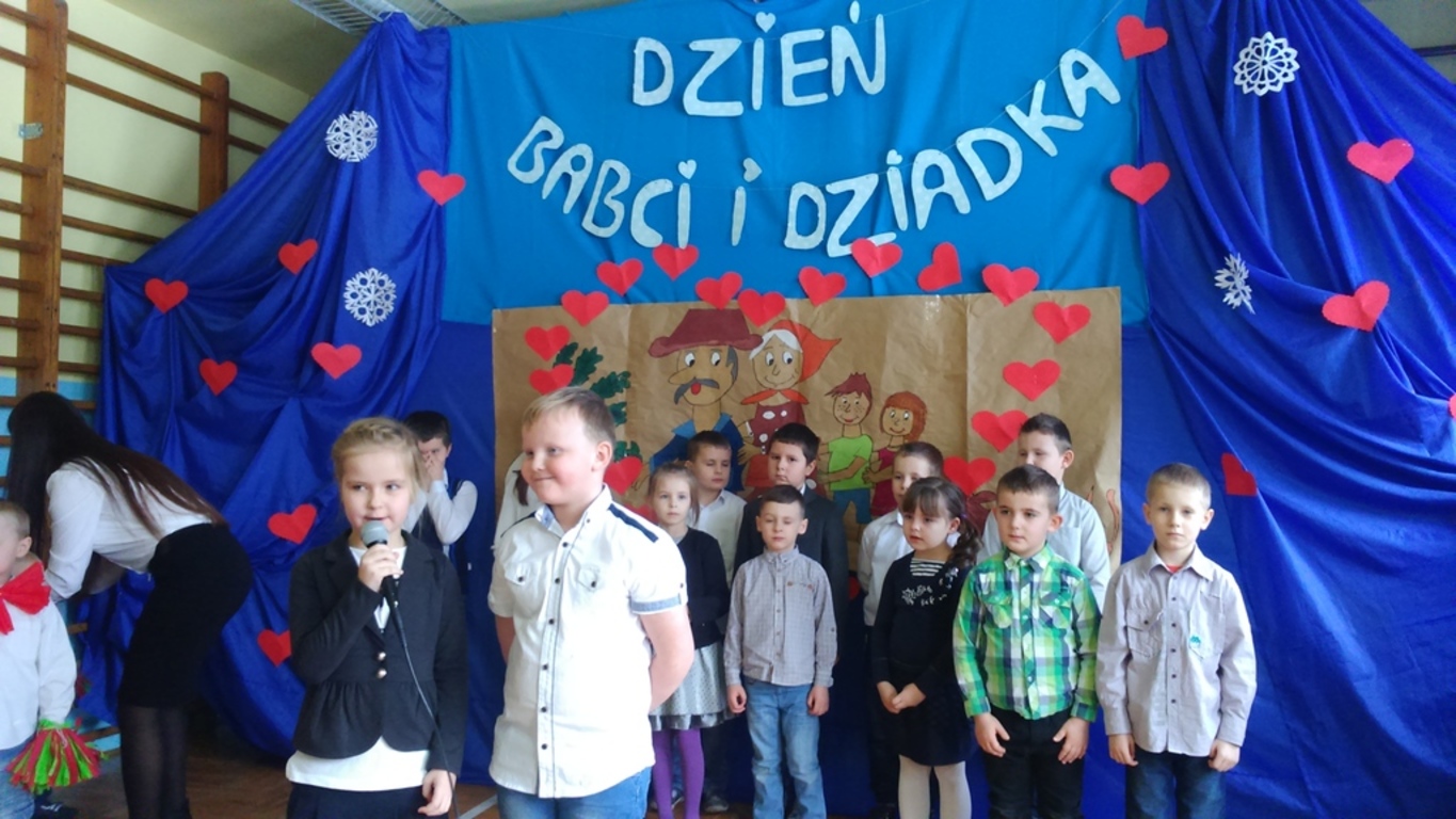 Mimo, iż styczeń jest zimowym miesiącem, pełnym chłodnych dni, są takie dwa dni, kiedy każdemu robi się cieplej na sercu jest to dzień Babci i dzień Dziadka. Takim dniem był 20 stycznia wtedy to właśnie w naszej szkole swoje święto obchodzili Babcie i Dziadkowie uczniów. Uroczystość z okazji święta Babci i Dziadka jest tradycją na stałe wpisaną w repertuar imprez szkolnych. Spotkanie z Babciami i Dziadkami przygotowały przedszkolaki pod kierunkiem pani Anny Gołębiowskiej, klasa 0 pod kierunkiem pani Marty Ulman oraz uczniowie klas 1-3 pod kierunkiem pań Anety Berlińskiej i Katarzyny Rajkowskiej. Program artystyczny był bardzo bogaty, dzieci uświetniły swój występ wierszami, piosenkami i tańcem, oprócz nich dzieci zaprezentowały swoje umiejętności językowe i pod kierunkiem pani Bożenki Mazur zaśpiewały piosenkę w języku angielskim. Babcie i Dziadkowie nie kryli łez ze wzruszenia, otrzymali od swoich wnuków i wnuczek własnoręcznie wykonane upominki, a słodki poczęstunek był miłym dodatkiem tego spotkania. W tym samym dniu w naszej szkole dla dzieci, Rodziców, Babć i Dziadków odbył się występ trupy cyrkowej „SZOK”.