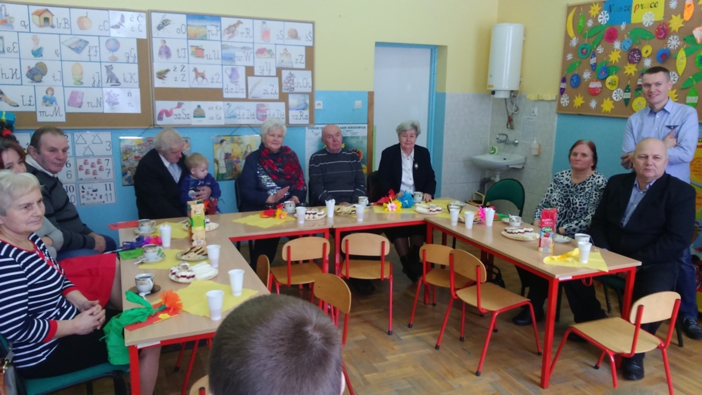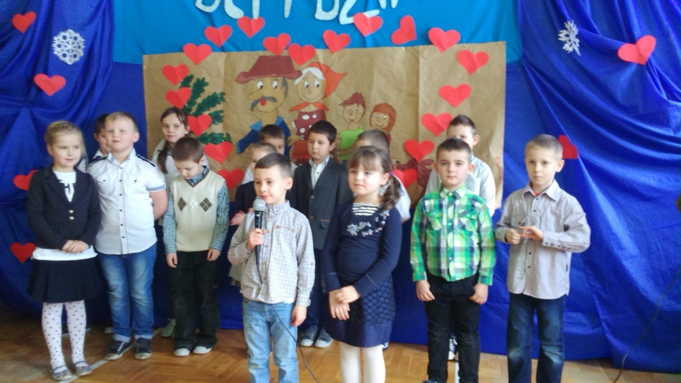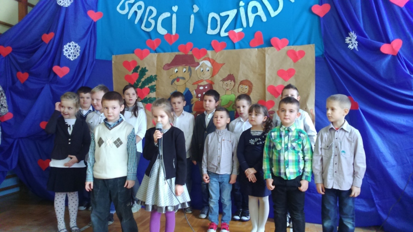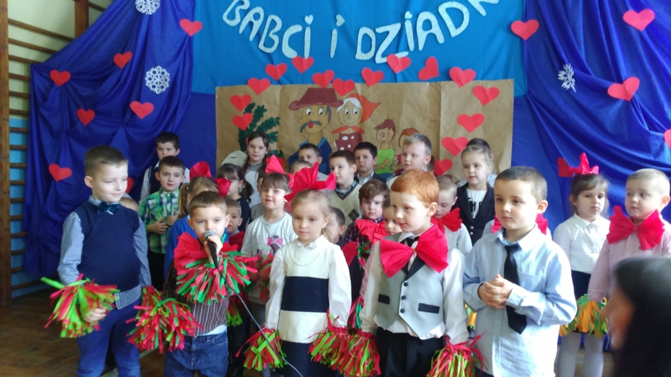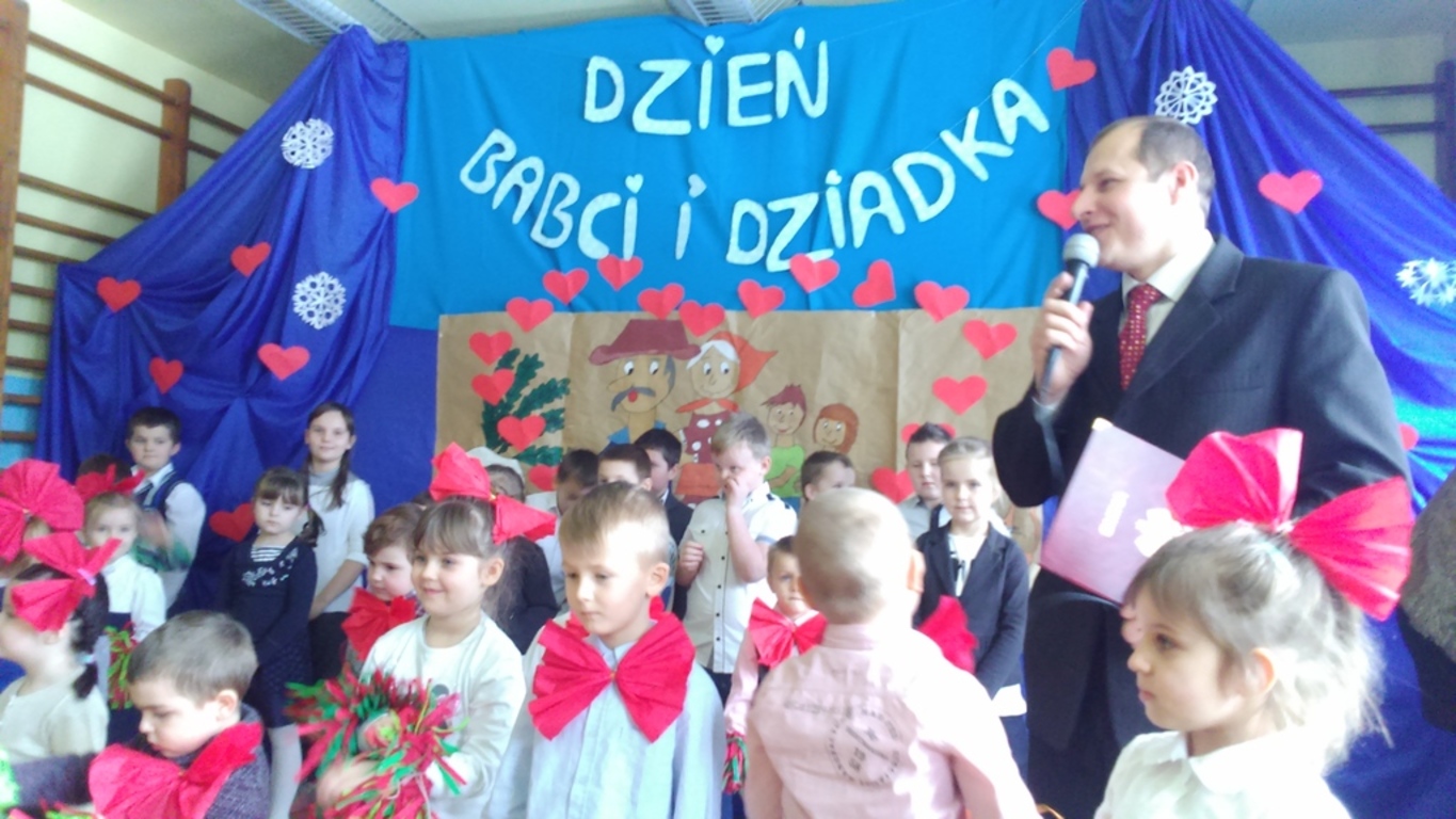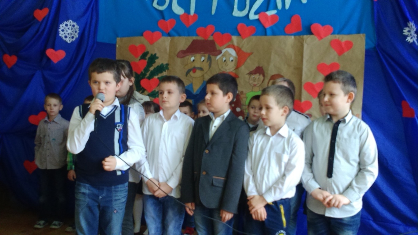 Mimo, iż styczeń jest zimowym miesiącem, pełnym chłodnych dni, są takie dwa dni, kiedy każdemu robi się cieplej na sercu jest to dzień Babci i dzień Dziadka. Takim dniem był 20 stycznia wtedy to właśnie w naszej szkole swoje święto obchodzili Babcie i Dziadkowie uczniów. Uroczystość z okazji święta Babci i Dziadka jest tradycją na stałe wpisaną w repertuar imprez szkolnych. Spotkanie z Babciami i Dziadkami przygotowały przedszkolaki pod kierunkiem pani Anny Gołębiowskiej, klasa 0 pod kierunkiem pani Marty Ulman oraz uczniowie klas 1-3 pod kierunkiem pań Anety Berlińskiej i Katarzyny Rajkowskiej. Program artystyczny był bardzo bogaty, dzieci uświetniły swój występ wierszami, piosenkami i tańcem, oprócz nich dzieci zaprezentowały swoje umiejętności językowe i pod kierunkiem pani Bożenki Mazur zaśpiewały piosenkę w języku angielskim. Babcie i Dziadkowie nie kryli łez ze wzruszenia, otrzymali od swoich wnuków i wnuczek własnoręcznie wykonane upominki, a słodki poczęstunek był miłym dodatkiem tego spotkania. W tym samym dniu w naszej szkole dla dzieci, Rodziców, Babć i Dziadków odbył się występ trupy cyrkowej „SZOK”.