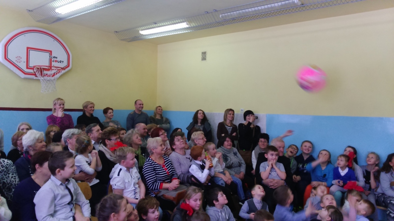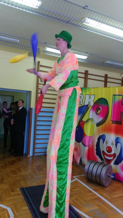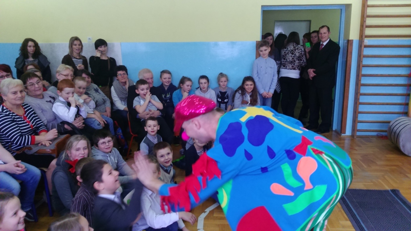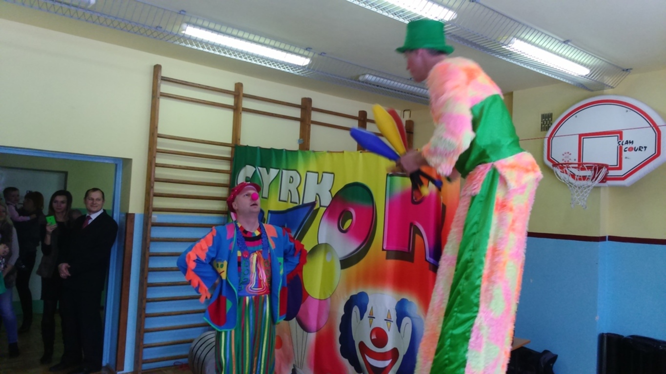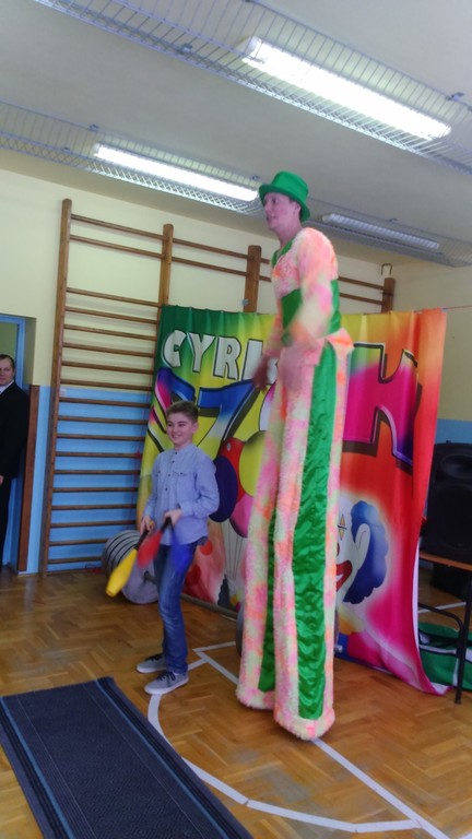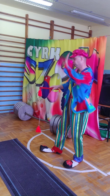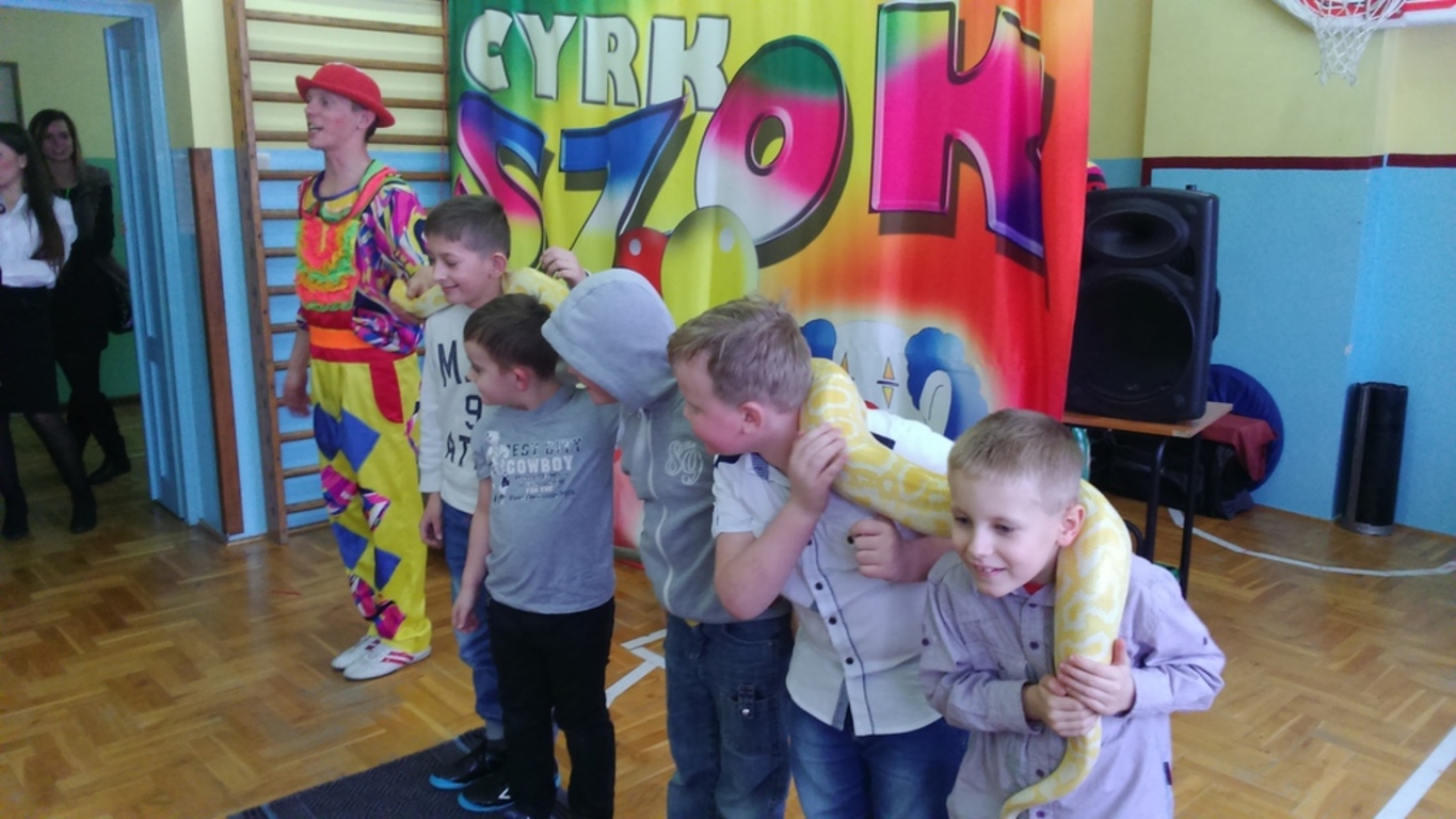 W dniu 20 stycznia w naszej szkole odbył się występ trupy artystycznej "SZOK". Artyści zaprezentowali nam sztukę cyrkową w najlepszym wydaniu. Mieliśmy okazję zobaczyć clowna, akrobacje, woltyżerkę na rowerze, tresowanego węża i psa. Ponadto wysportowani cyrkowcy pokazali nam tajniki magii i iluzji. Duże wrażenie na wszystkich obecnych wywarła balanserka. Do zabawy aryści zaprosili uczniów naszej szkoły, Nauczycieli oraz Rodziców i Dziadków. Pełni zapału, z różnym skutkiem, próbowali dotrzymać kroku zawodowcom, co często wzbudzało ogólną radość. Było dużo śmiechu i zabawy.