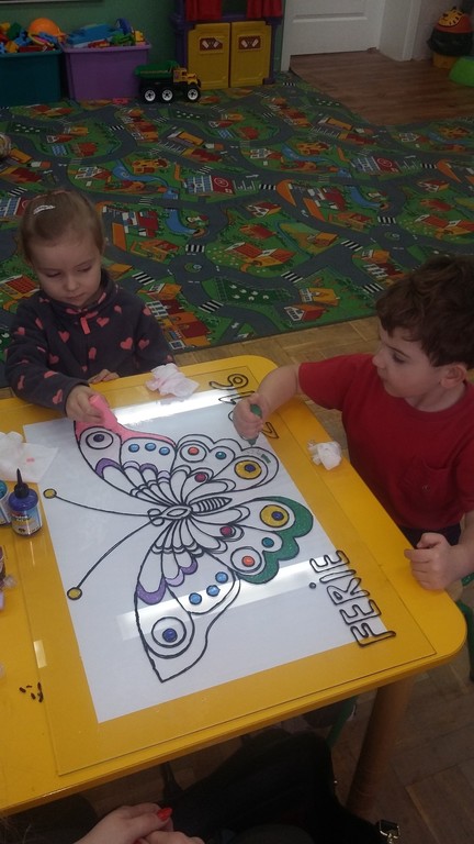 W części warsztatowej dzieci brały udział w wielu konkursach, zajęciach plastycznych i turniejach. W ramach zajęć plastycznych, dzieci z punktu przedszkolnego ,,Miś’’ i klasy ,,0’’ z pomocą pani Ani Gołębiowskiej malowały na szkle. Powstał piękny obraz, który można podziwiać na ścianie korytarza. W przedszkolu odbyły się ponadto zajęcia kulinarne, dogoterapia i rytmika.