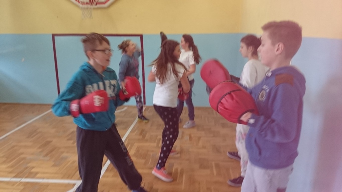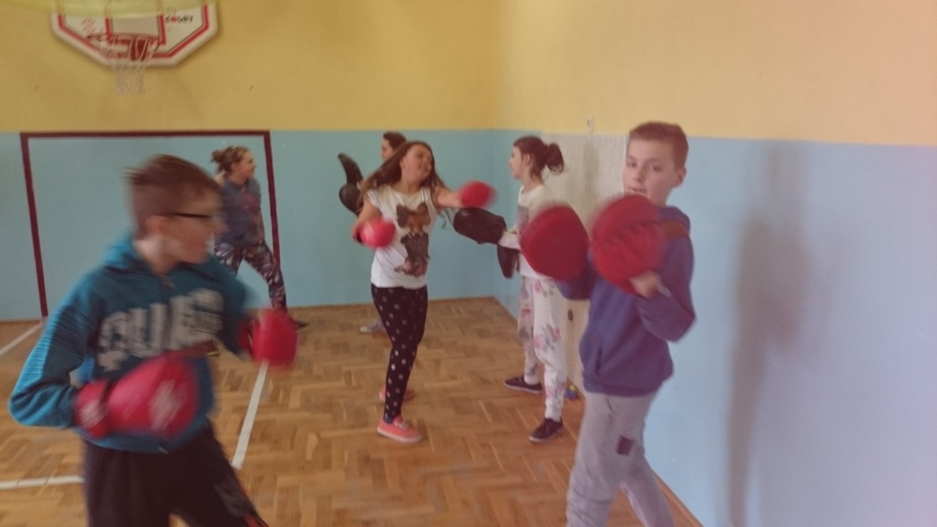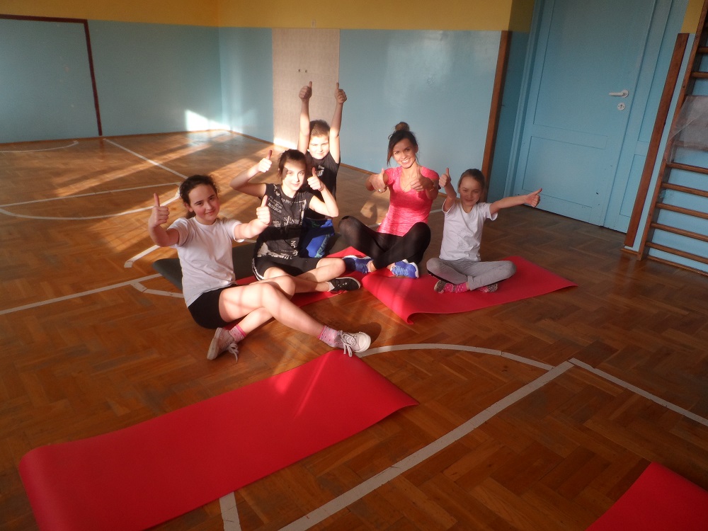 Już pierwsze zajęcia z fitness prowadzone przez panią Magdalenę Kaczor cieszyły się dużym powodzeniem. Treningi obejmowały rozgrzewkę, część wzmacniającą całe ciało, a następnie stretching. Odpowiednio dobrana rytmiczna muzyka dodawała dzieciom energii.