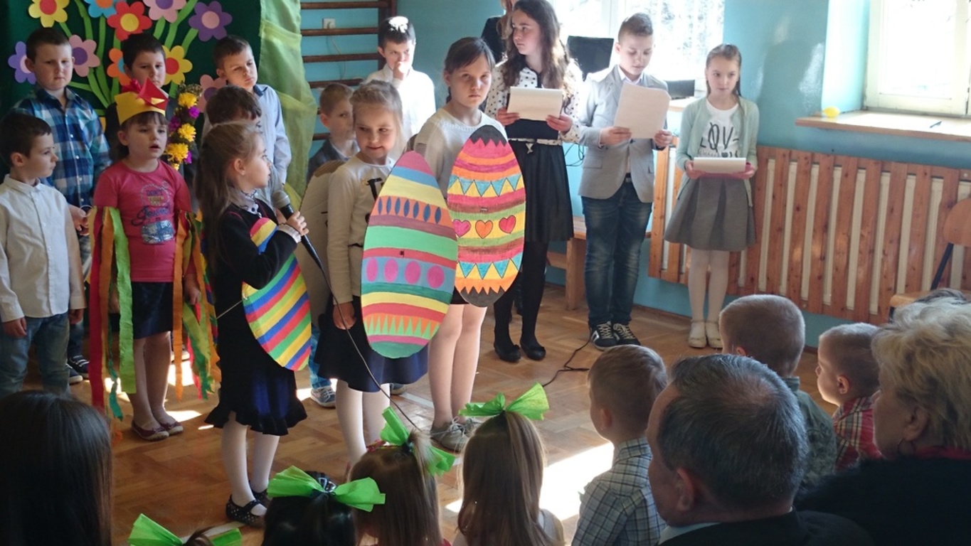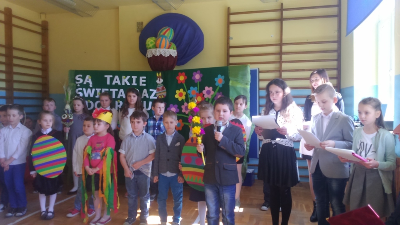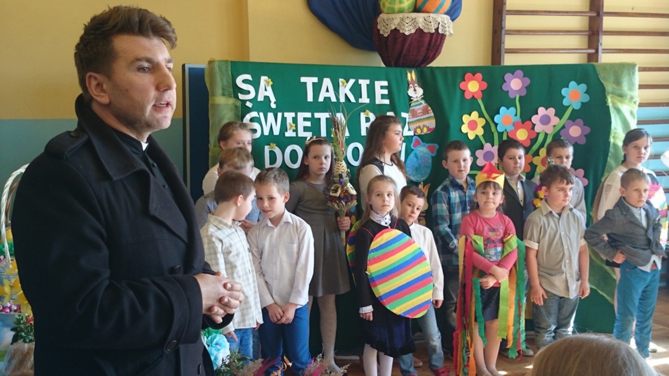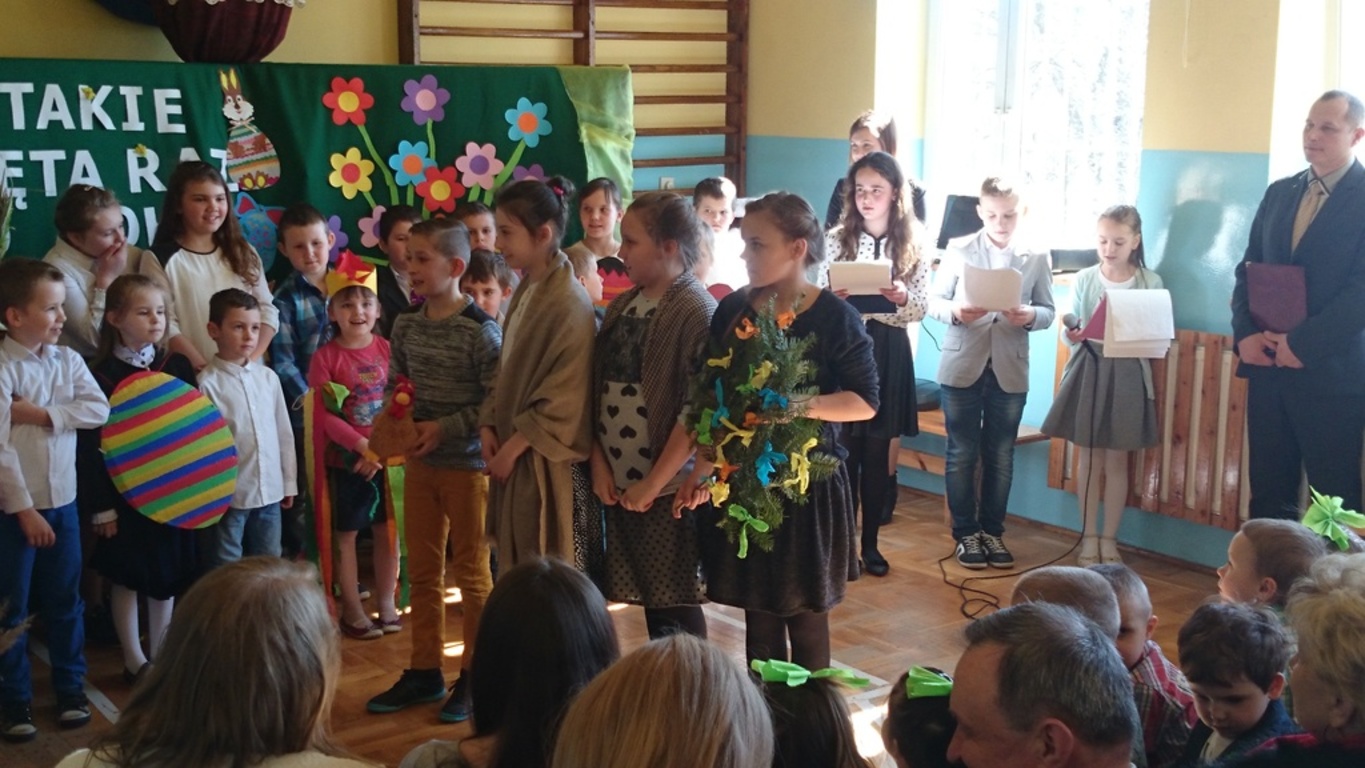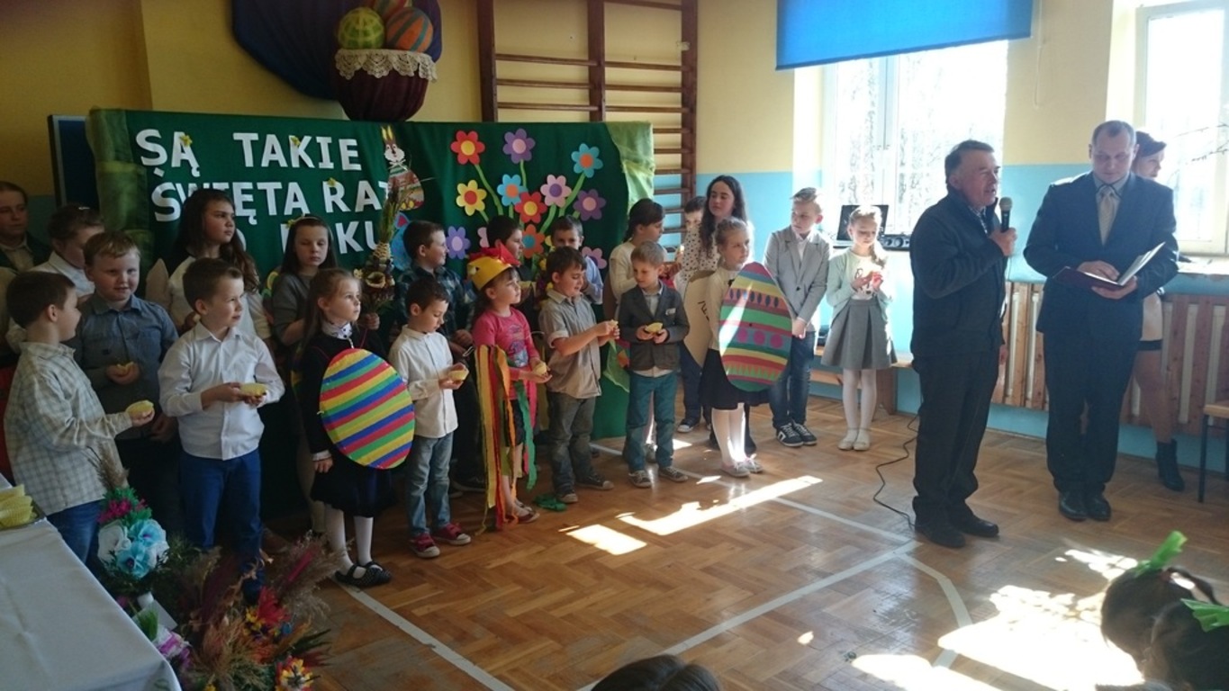 W dniu 23 marca o godz. 12.00 odbyło się w naszej szkole uroczyste spotkanie związane ze Świętami Wielkiej Nocy. Pod przewodnictwem Pani Anety Berlińskiej uczniowie klas I-VI oraz przedszkolaki z punktu Przedszkolnego „Miś” przybliżyli wszystkim piękne polskie zwyczaje i tradycje związane z tymi najważniejszymi w roku świętami. W uroczystości uczestniczyli zaproszeni goście Radny Powiatowy Marian Wikło, przedstawiciele Stowarzyszenia „Owadów Wieś z Przyszłością” – Maria Cibor, Stanisław Mazur, przyjaciele szkoły Państwo Zofia i Józef Brzezińscy, przedstawiciele GOPS w Jastrzębi – panie Ewa Piasek i Anna Tkaczyk, Grono Pedagogiczne oraz Rodzice. Wiersze, piosenki i scenki w wykonaniu uczniów klas IV-VI przybliżyły wszystkim piękne polskie zwyczaje i tradycje związane z tymi najważniejszymi w roku świętami. Urozmaiceniem programu artystycznego był występ uczennic z klasy I i III, które przebrane za piękne wielkanocne pisanki, prezentowały swoje recytatorskie umiejętności. Barwne dekoracje oraz stół wielkanocny przystrojony pisankami, kurczaczkami, bukszpanem oraz wielkanocnymi babami dodawał kolorytu i wprowadzał w nastrój Świąt Zmartwychwstania Pańskiego. Na zakończenie spotkania p. Dyrektor Jakub Rajkowski podziękował wszystkim zaangażowanym w przygotowanie uroczystości oraz złożył całej społeczności szkolnej i przybyłym gościom najserdeczniejsze życzenia świąteczne. Głos zabrał także ks. Jarosław Banasik, który zgłębił sens Zmartwychwstania Pańskiego i tradycji oraz dołączył się do życzeń.
