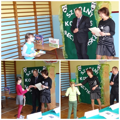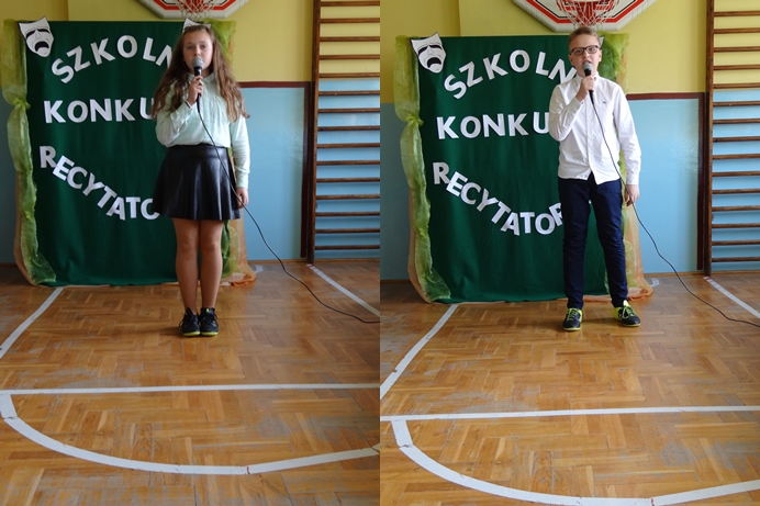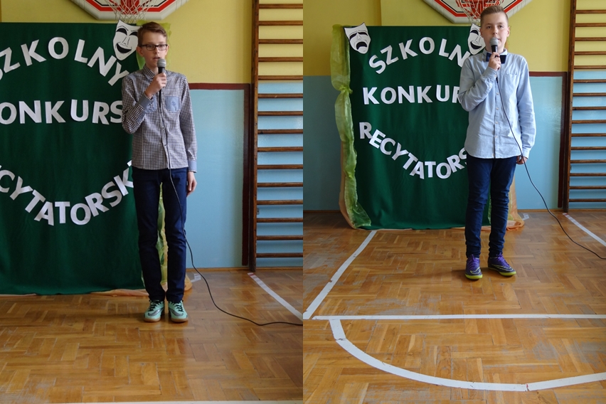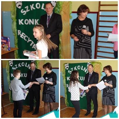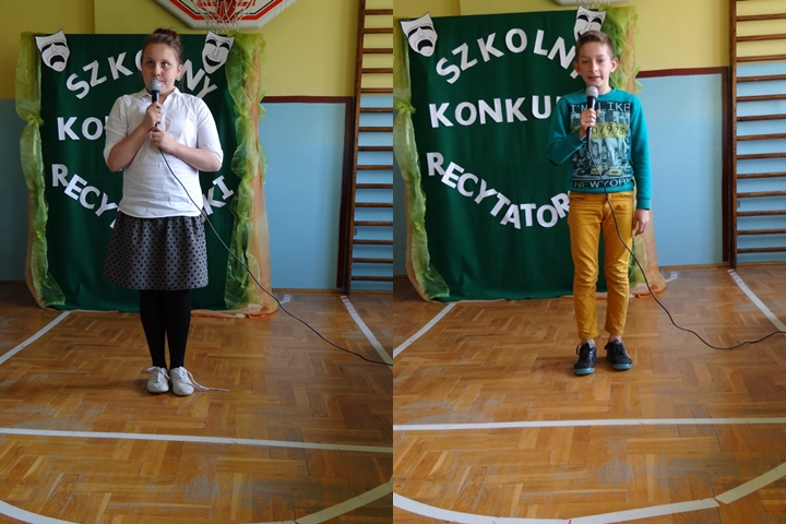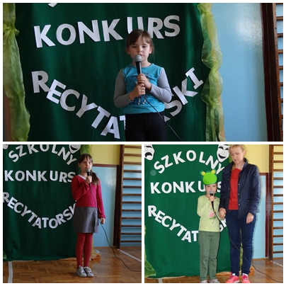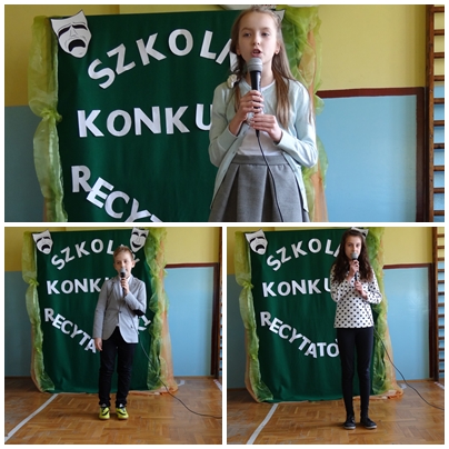 Wyróżnieni zostali Oskar Bochyński i Jakub Tomaszewski z klasy I. Spośród uczniów klas IV-VI jury nagrodziło miejscem I : Weronikę Woźniak , która wyrecytowała utwór Juliana Tuwima pt;,,Dwa wiatry”. Miejsce II zajął Jakub Jarząbek prezentując również utwór J. Tuwima pt;,,Okulary”. Natomiast miejsce III przypadło w udziale Nikoli Gaj ta uczennica z kolei zaprezentowała wiersz Jana Brzechwy pt;,,Znaki przestankowe”,.