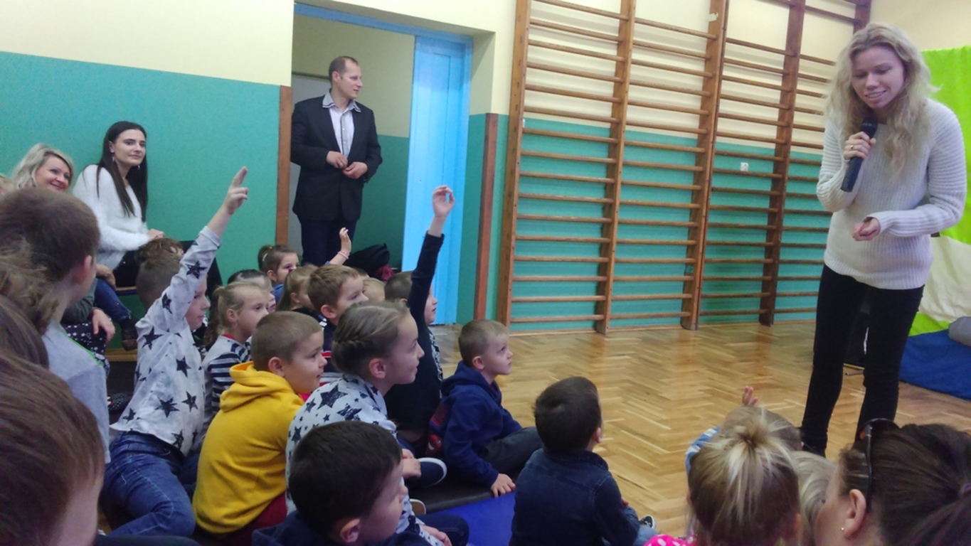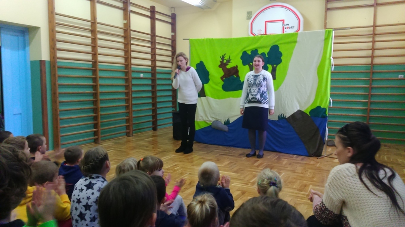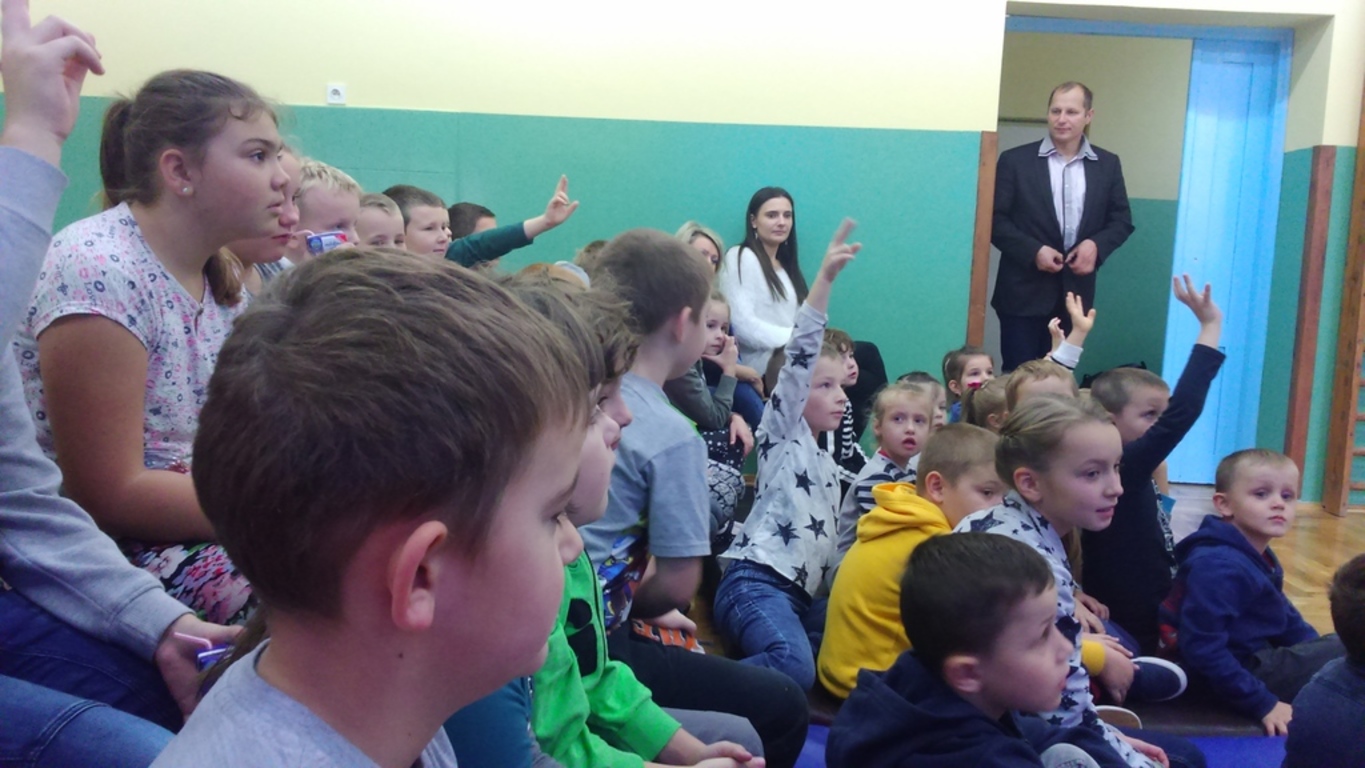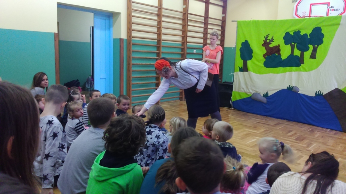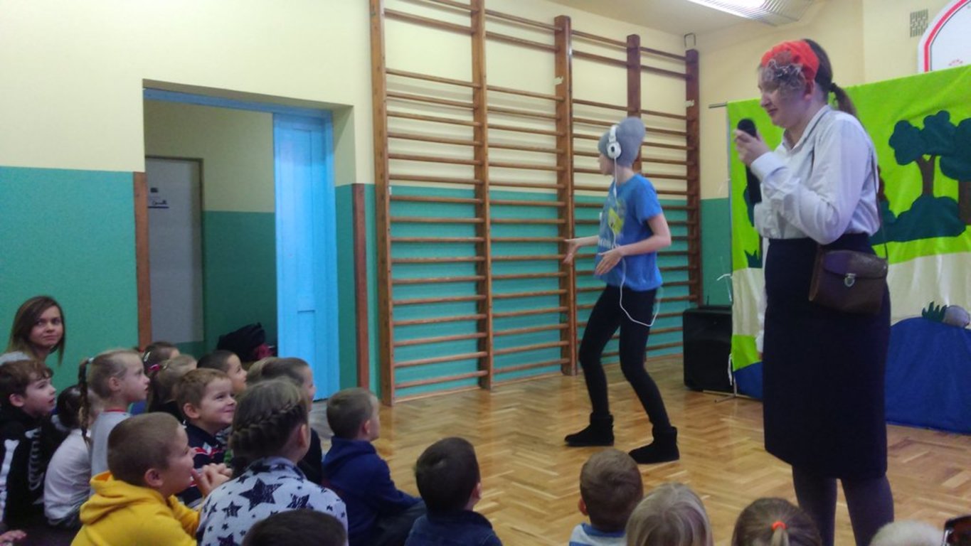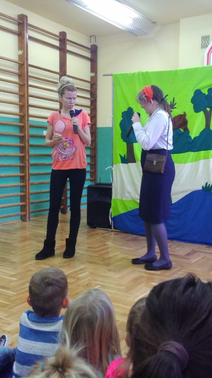 Z inicjatywy nauczyciela polonisty Pani Ewy Jagiełło - Kowalczyk w dniu 25 października w naszej szkole odbyły się warsztaty teatralne. Warsztaty te połączone były z bardzo ciekawym przedstawieniem, w którym mogły wziąć udział zarówno uczniowie jak i przedszkolaki. Przygoda Klary, kiedy to przenosi się w przyszłość sprawiła, że dzieci mogły wyobrazić sobie i porównać jak to było kiedyś, a jak świat dzieci wygląda teraz. Jednocześnie razem z bohaterką, mogły bawić się w zabawy, w które bawili się dawniej ich dziadkowie. Przedstawienie wszystkim się bardzo podobało, aktorom dziękujemy za ciekawe przeżycia.