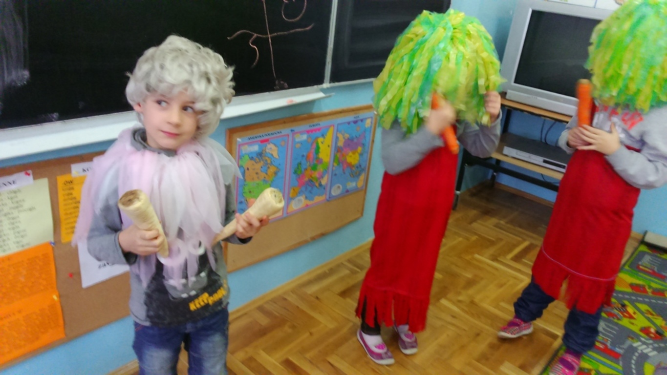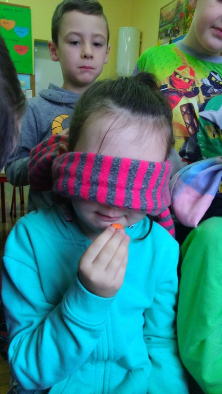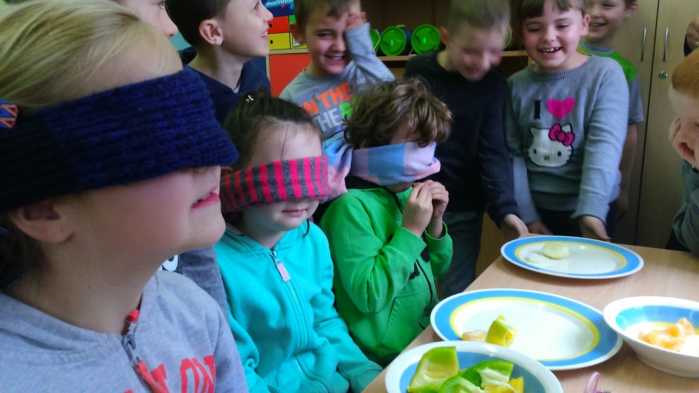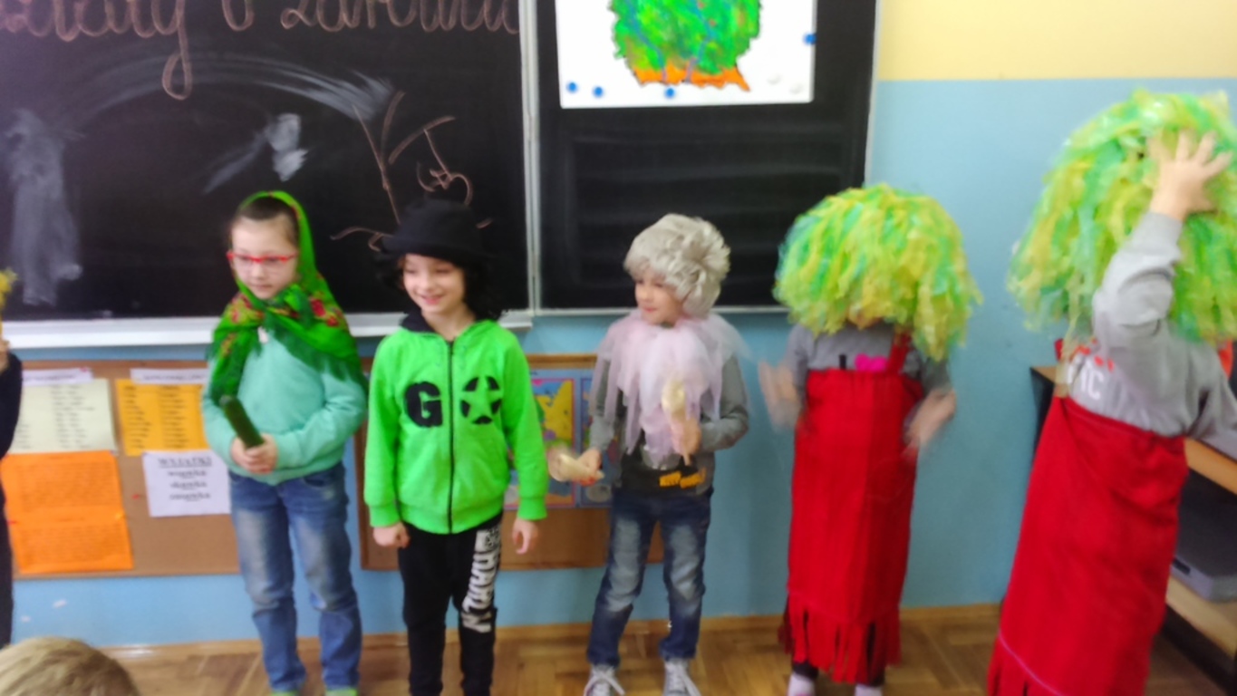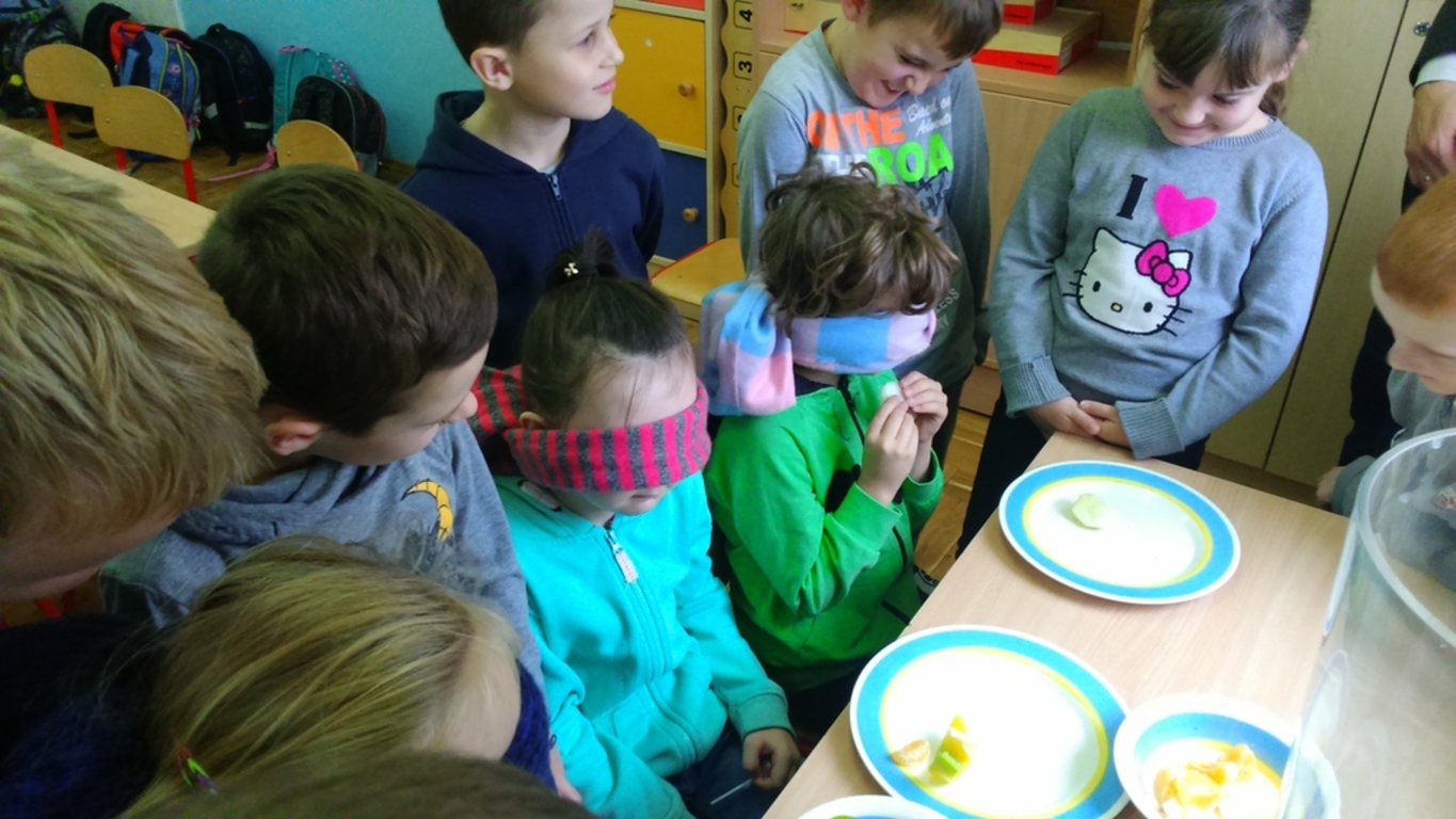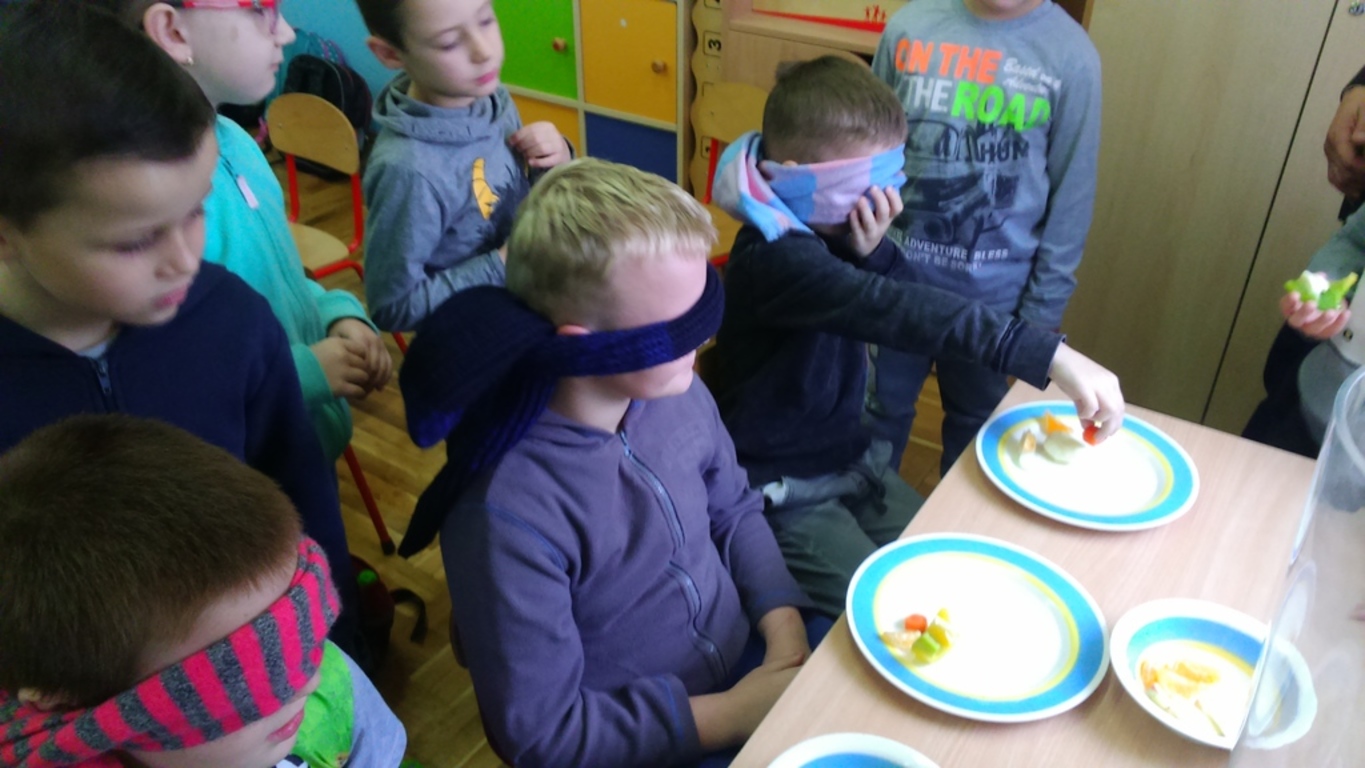 W dniu 30 października uczniowie klas I i II wzięli udział w „Warsztatach o zdrowiu”. Warsztaty przeprowadziła Pani Katarzyna Rajkowska – szkolny koordynator promocji zdrowia. Podczas dwugodzinnych warsztatów uczniowie mieli okazję poznać zasady prawidłowego odżywiania, sprawdzić swoją wiedzę na temat spożywania warzyw, owoców, przetworów mlecznych, białkowych, węglowodanów, tłuszczy i napojów. Dzieci poznawały warzywa i owoce po dotyku i smaku, a ponadto z naturalnych rekwizytów wykonały bezbłędnie piramidę żywienia. Poza degustacją zdrowych artykułów spożywczych samodzielnie wyrzucały produkty niezdrowe, a ze zdrowych tworzyły kolorowy dzban. Uczniom bardzo podobały się zabawy teatralne i muzyczne. Z wykorzystaniem barwnych strojów oraz wierszy o warzywach i owocach odgrywały scenki dramowe, a z użyciem instrumentów muzycznych wykonanych z kapsli i drewnianych łyżek, zagrali warzywną partyturę oraz odtańczyli owocowy taniec. W nagrodę wszyscy mogli wybrać sobie dowolne warzywo lub owoc.