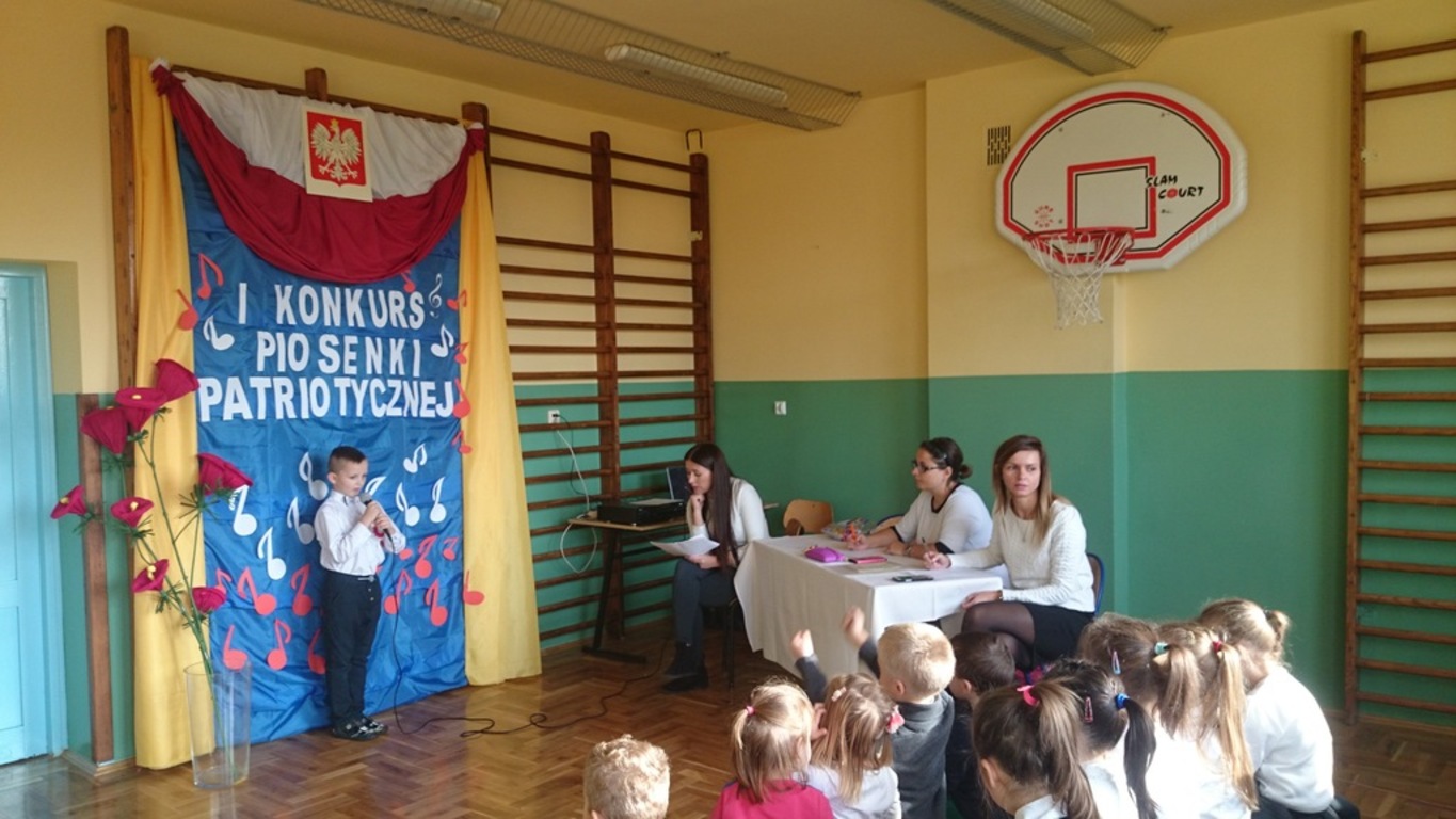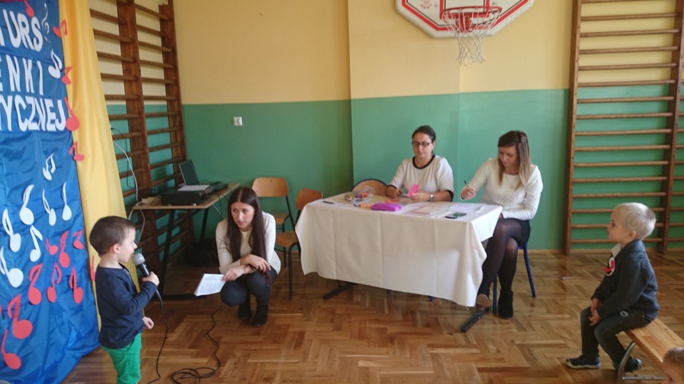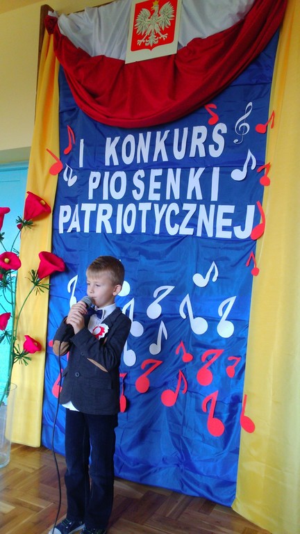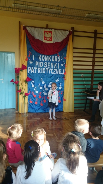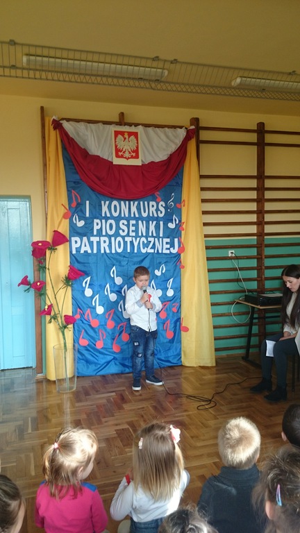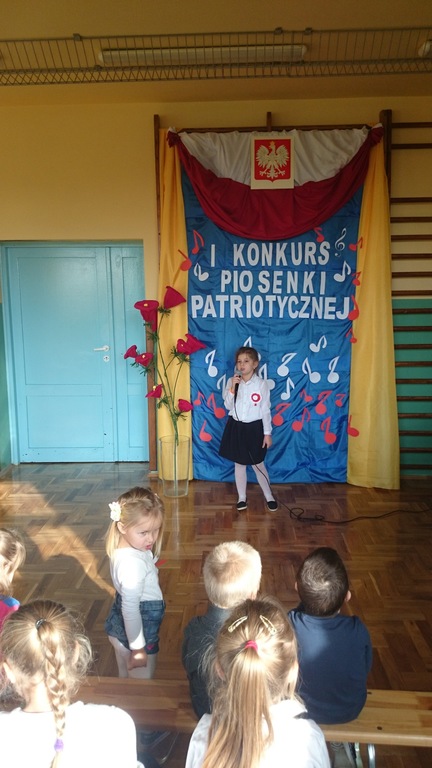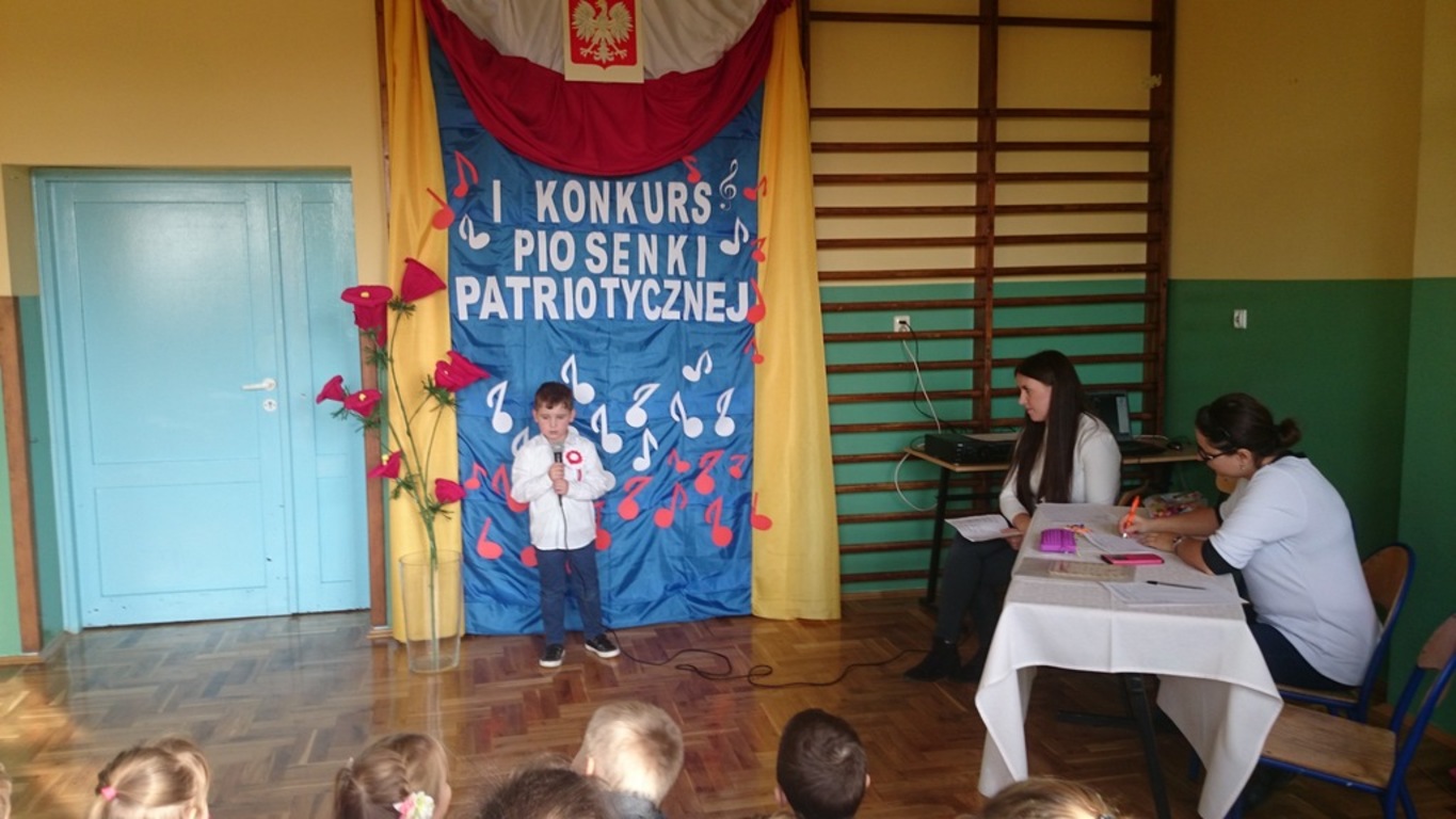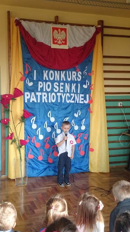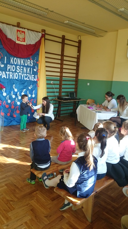 W dniu 4 listopada 2016r. w naszej szkole odbył się I Konkurs Piosenki Patriotycznej dla klasy "0" oraz przedszkola, którego organizatorem była Dyrekcja szkoły, Rada Rodziców oraz koordynator - pomysłodawca pani Katarzyna Rajkowska. Łącznie 16 solistów z klasy "0" oraz przedszkolaków uczestniczyło w tej edycji konkursu. Komisja konkursowa w składzie panie: Katarzyna Rajkowska, Anna Gołębiowska i Magdalena Kaczor dołożyły starań, aby dzieci dobrze czuły się na scenie konkursowej.
