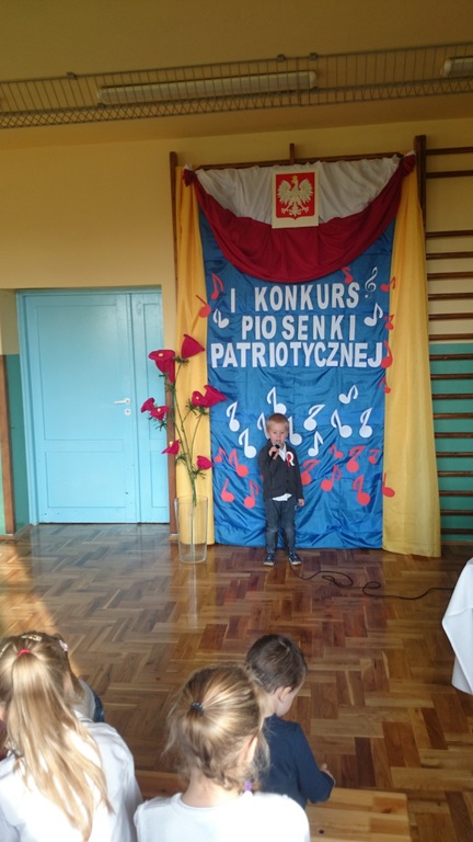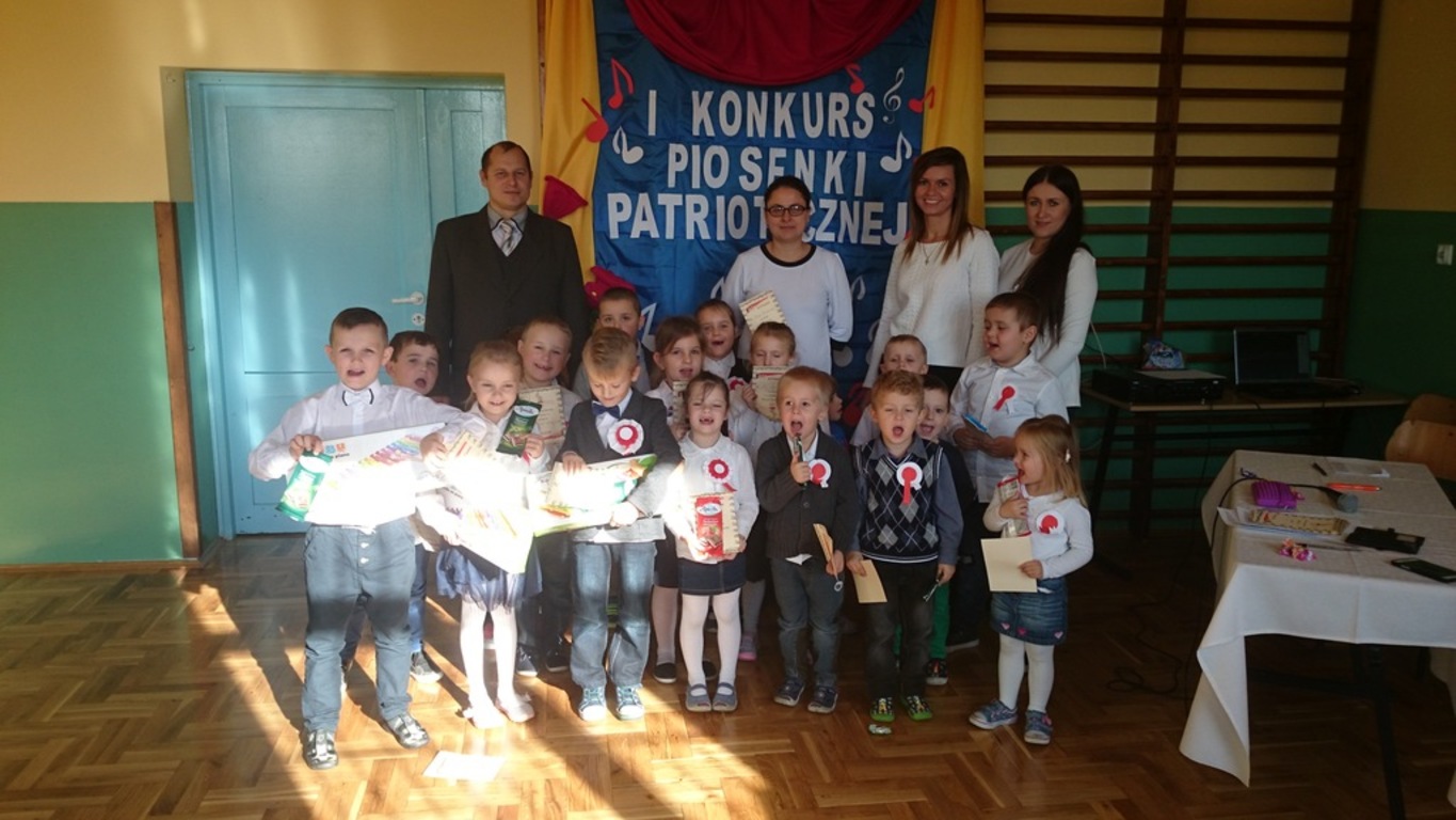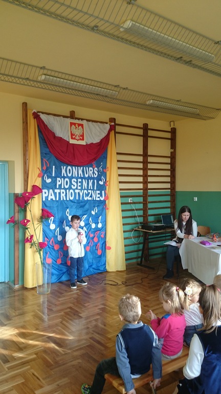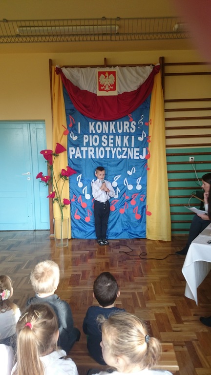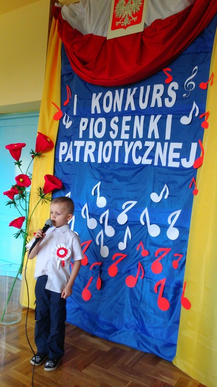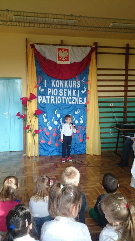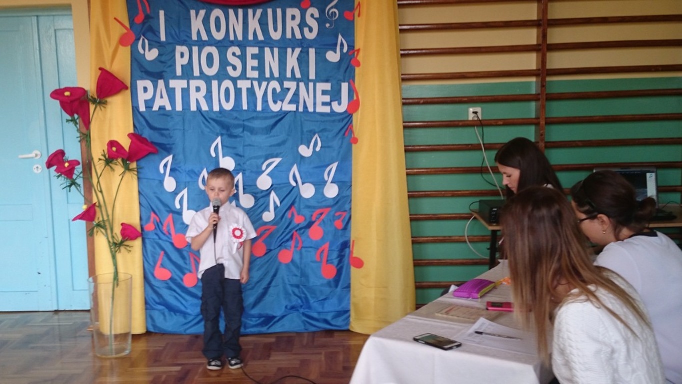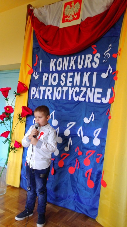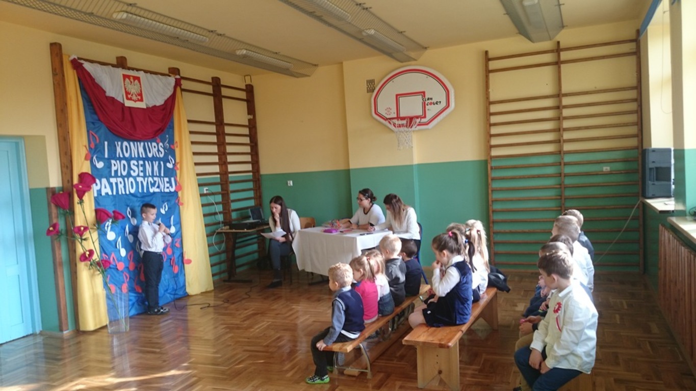 W dniu 4 listopada 2016r. w naszej szkole odbył się I Konkurs Piosenki Patriotycznej dla klasy "0" oraz przedszkola, którego organizatorem była Dyrekcja szkoły, Rada Rodziców oraz koordynator - pomysłodawca pani Katarzyna Rajkowska. Łącznie 16 solistów z klasy "0" oraz przedszkolaków uczestniczyło w tej edycji konkursu. Komisja konkursowa w składzie panie: Katarzyna Rajkowska, Anna Gołębiowska i Magdalena Kaczor dołożyły starań, aby dzieci dobrze czuły się na scenie konkursowej.