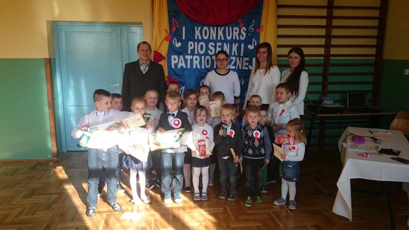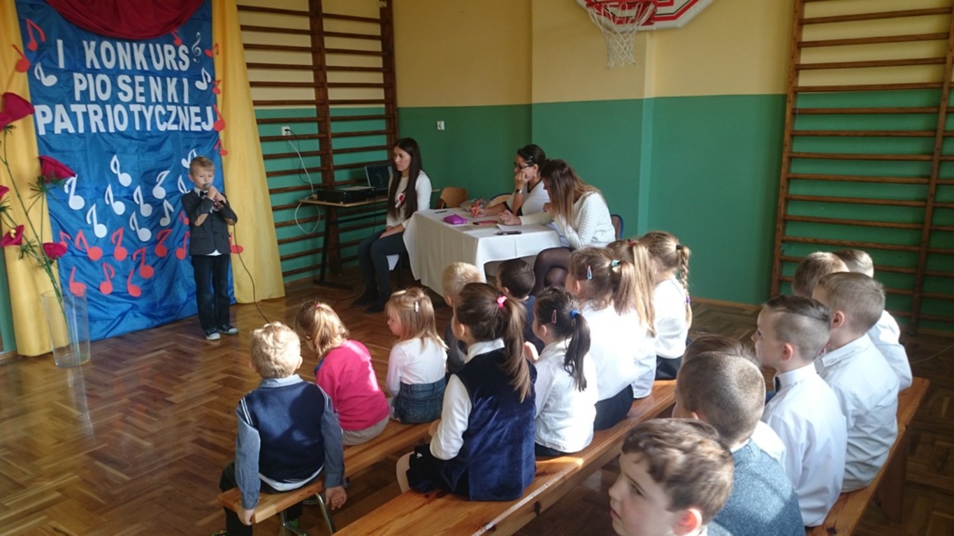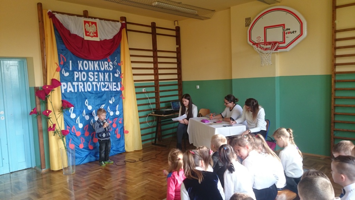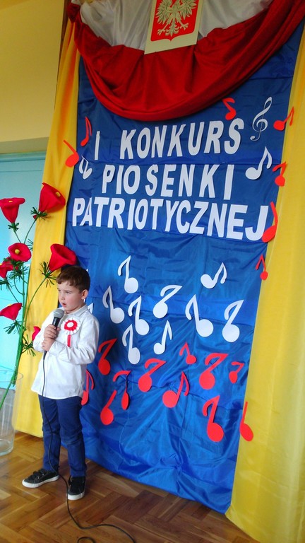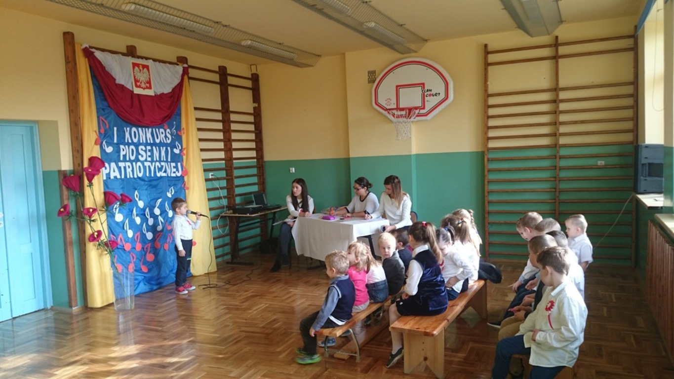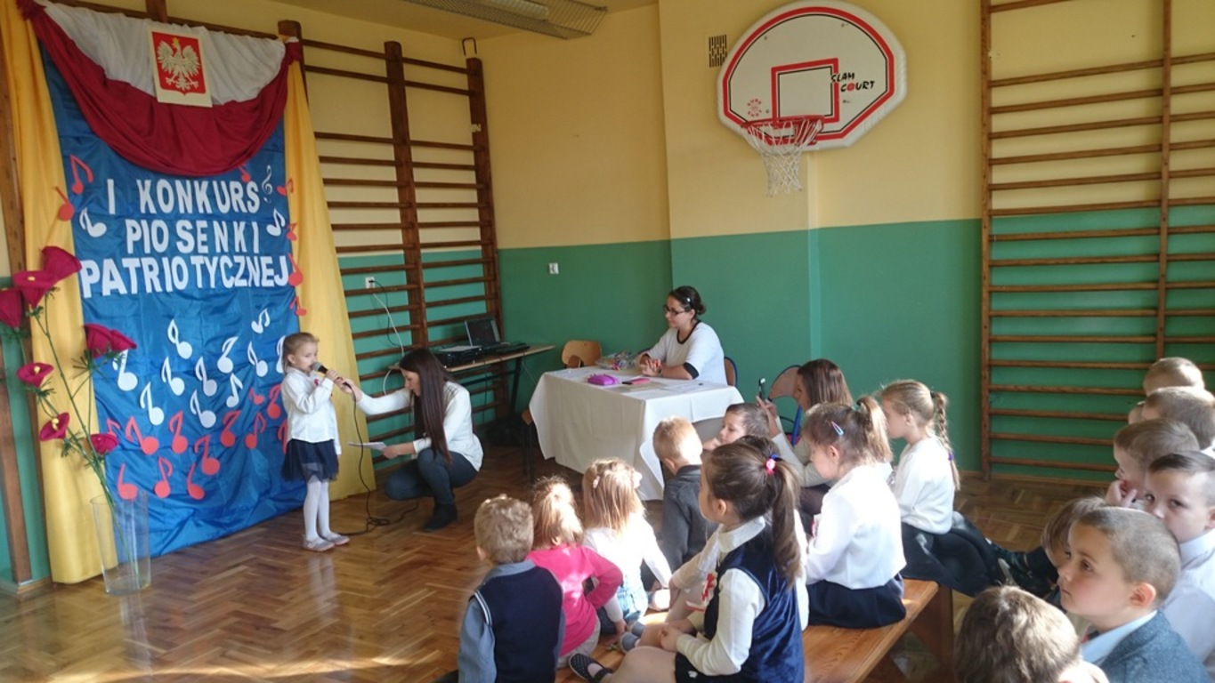 W dniu 4 listopada 2016r. w naszej szkole odbył się I Konkurs Piosenki Patriotycznej dla klasy "0" oraz przedszkola, którego organizatorem była Dyrekcja szkoły, Rada Rodziców oraz koordynator - pomysłodawca pani Katarzyna Rajkowska. Łącznie 16 solistów z klasy "0" oraz przedszkolaków uczestniczyło w tej edycji konkursu. Komisja konkursowa w składzie panie: Katarzyna Rajkowska, Anna Gołębiowska i Magdalena Kaczor dołożyły starań, aby dzieci dobrze czuły się na scenie konkursowej.