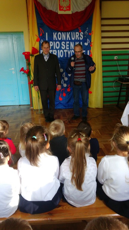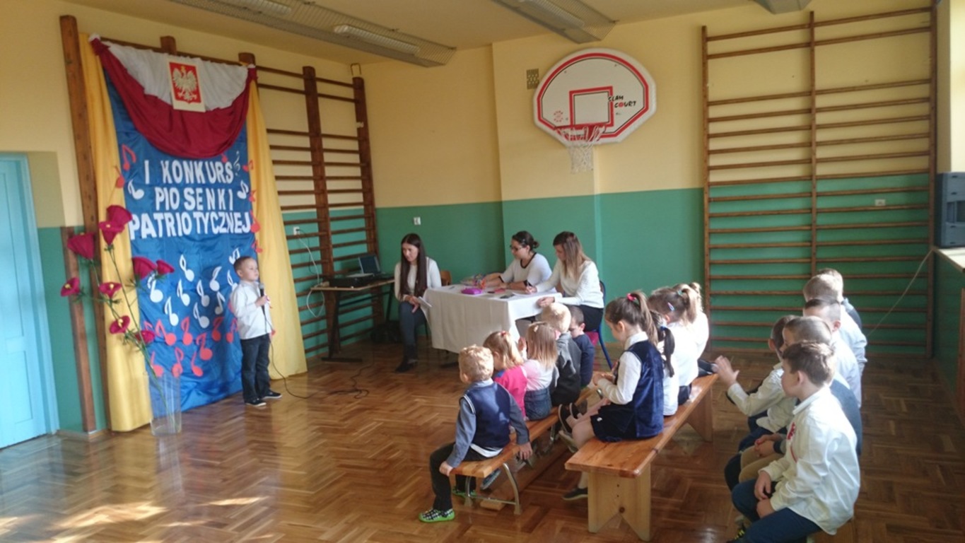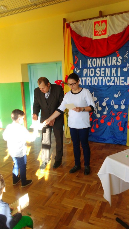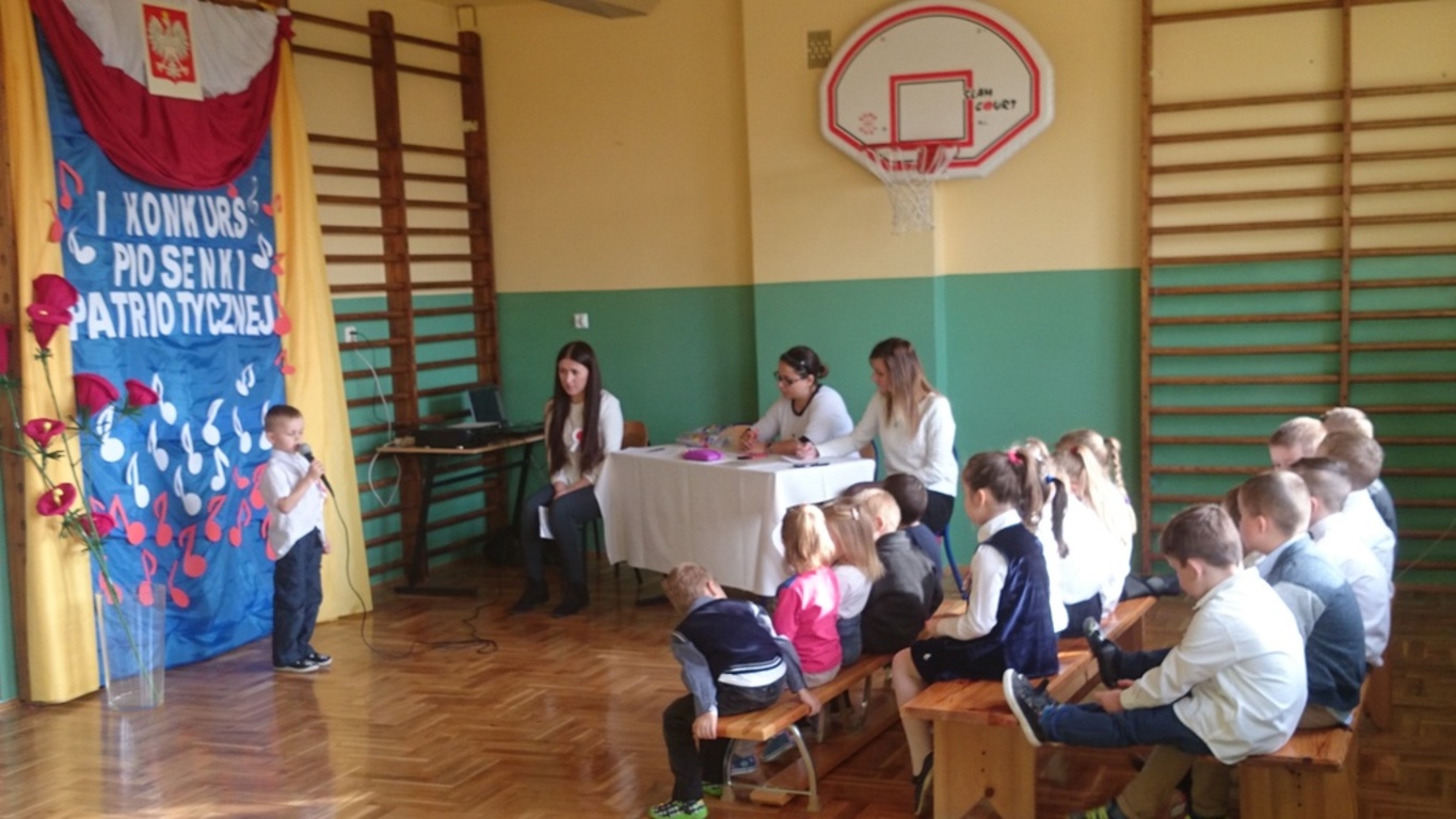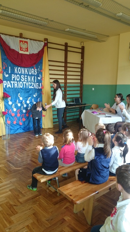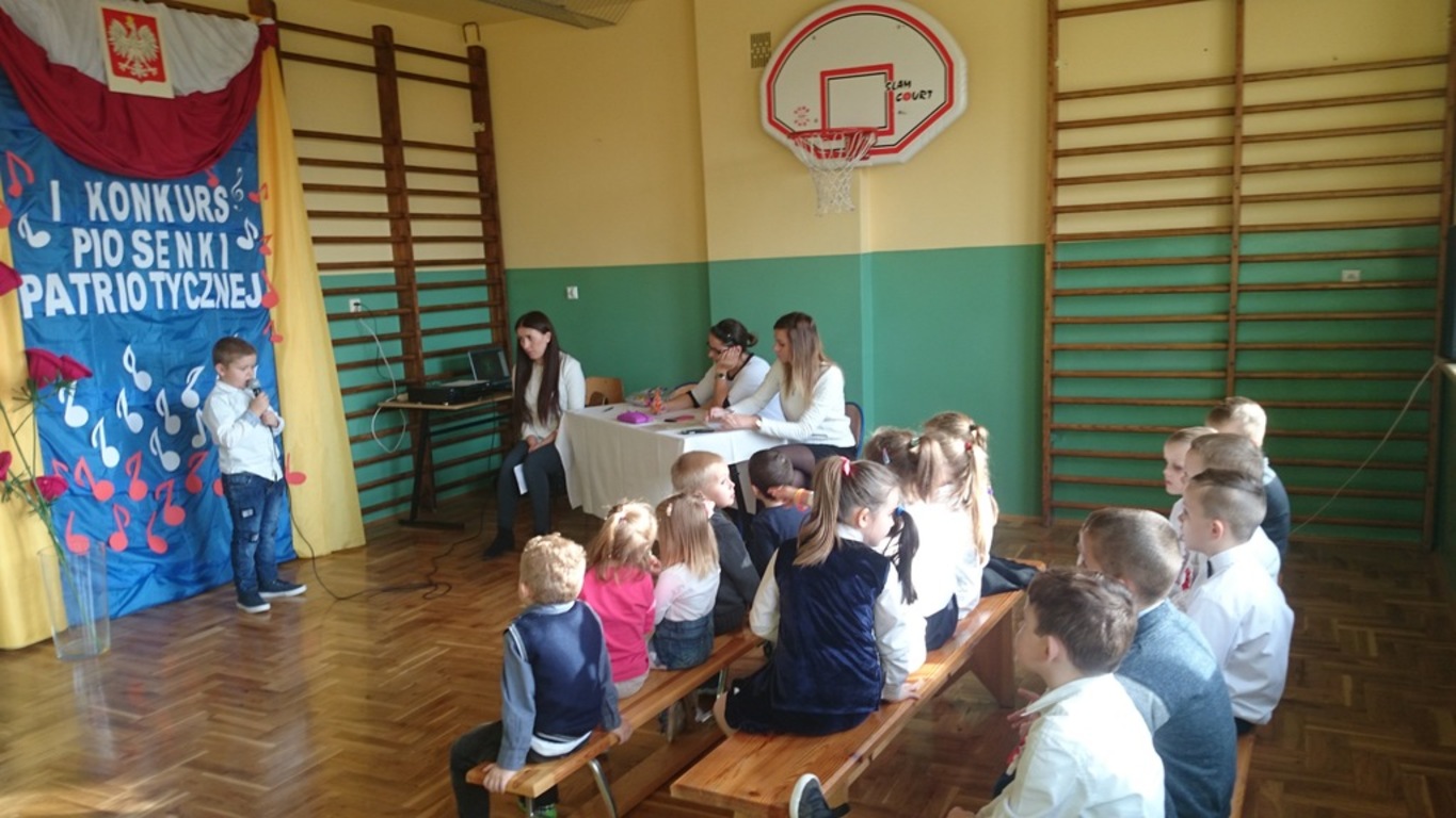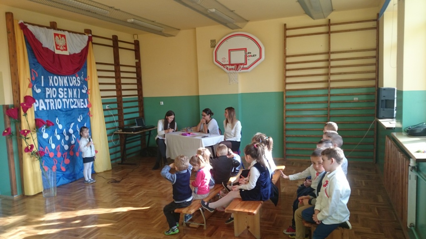 W dniu 4 listopada 2016r. w naszej szkole odbył się I Konkurs Piosenki Patriotycznej dla klasy "0" oraz przedszkola, którego organizatorem była Dyrekcja szkoły, Rada Rodziców oraz koordynator - pomysłodawca pani Katarzyna Rajkowska. Łącznie 16 solistów z klasy "0" oraz przedszkolaków uczestniczyło w tej edycji konkursu. Komisja konkursowa w składzie panie: Katarzyna Rajkowska, Anna Gołębiowska i Magdalena Kaczor dołożyły starań, aby dzieci dobrze czuły się na scenie konkursowej.
