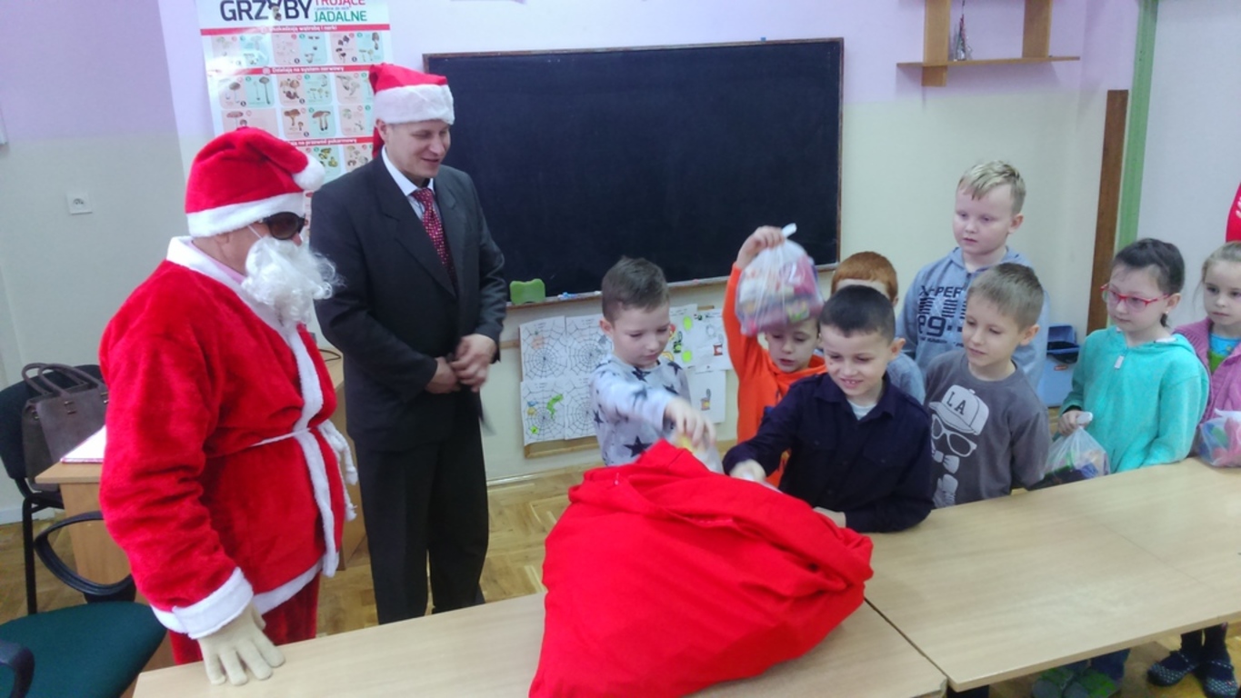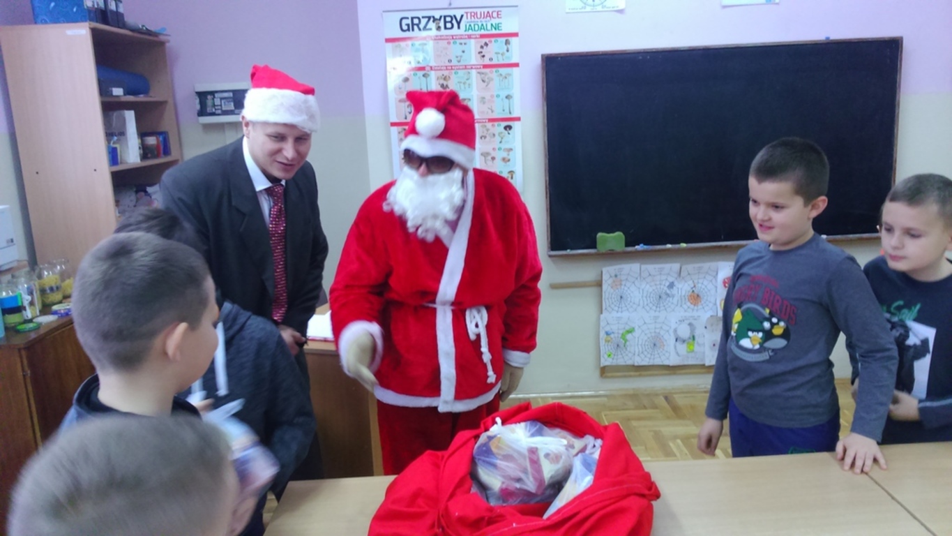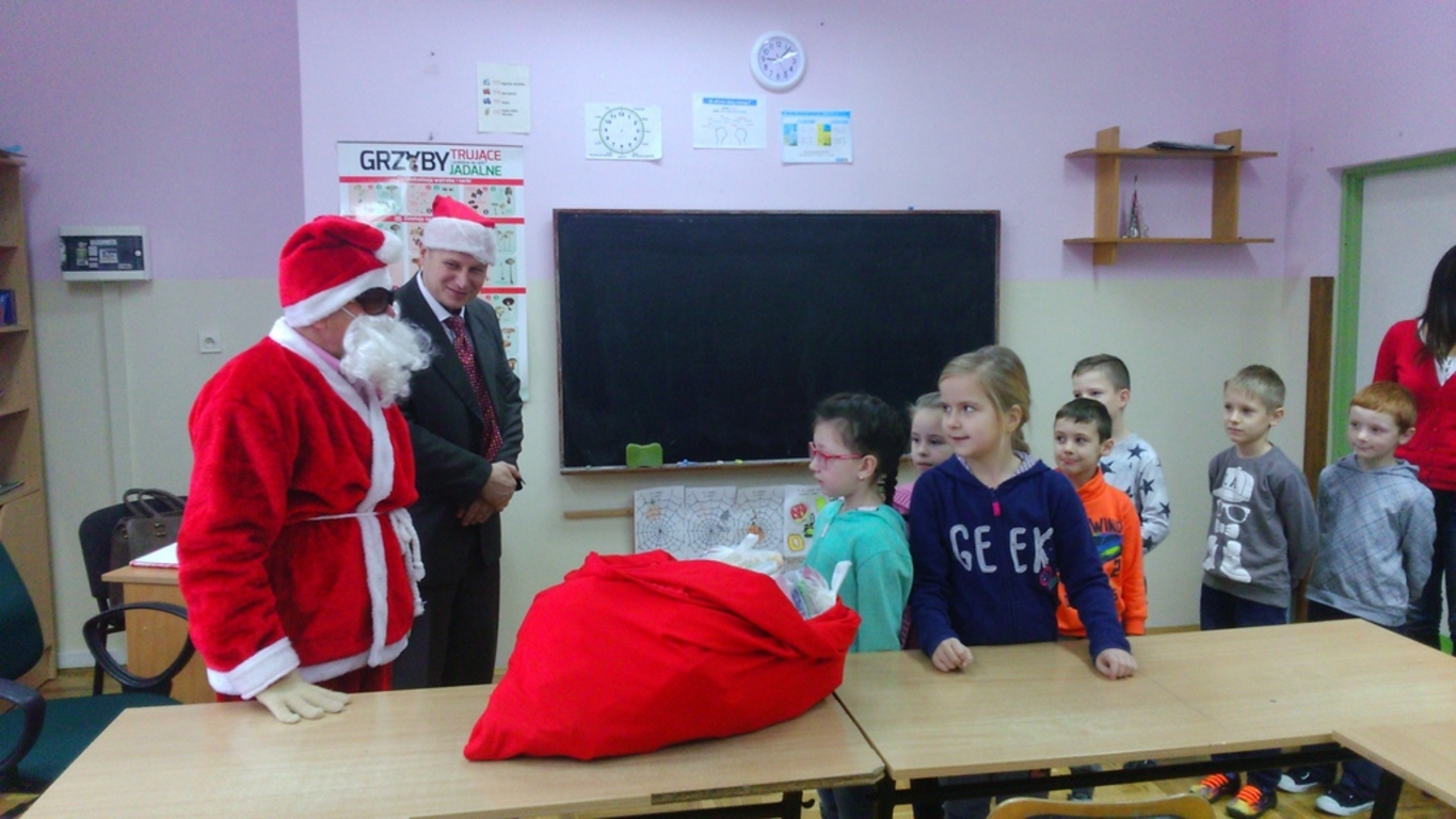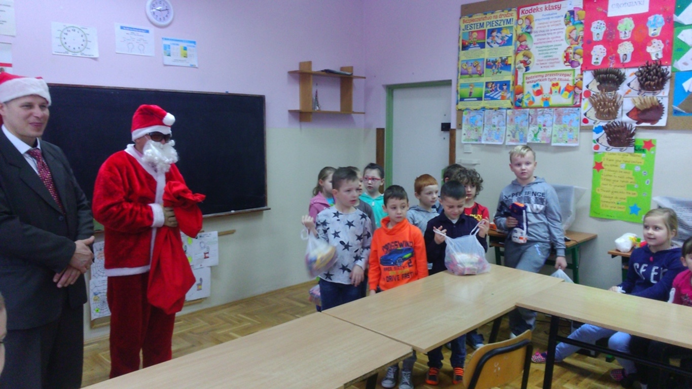 W dniu 6 grudnia 2016 roku do uczniów naszej szkoły przybył św. Mikołaj. Spotkania z miłym gościem obywały się w klasach, w atmosferze doskonałej zabawy. Dzieci mogły porozmawiać ze św. Mikołajem, odpowiadały na pytania gościa, śpiewały piosenki. Dla utrwalenia tego jakże emocjonującego wydarzenia wykonano pamiątkowe zdjęcia. Św. Mikołaj odwiedził klasy I-VI i odwdzięczył się wszystkim dzieciom pięknymi prezentami. Ponadto dzieci z klas I-III w tym dniu pod okiem wychowawczyń wykonały piękne prace plastyczne i obejrzały film o żywocie św. Mikołaja.