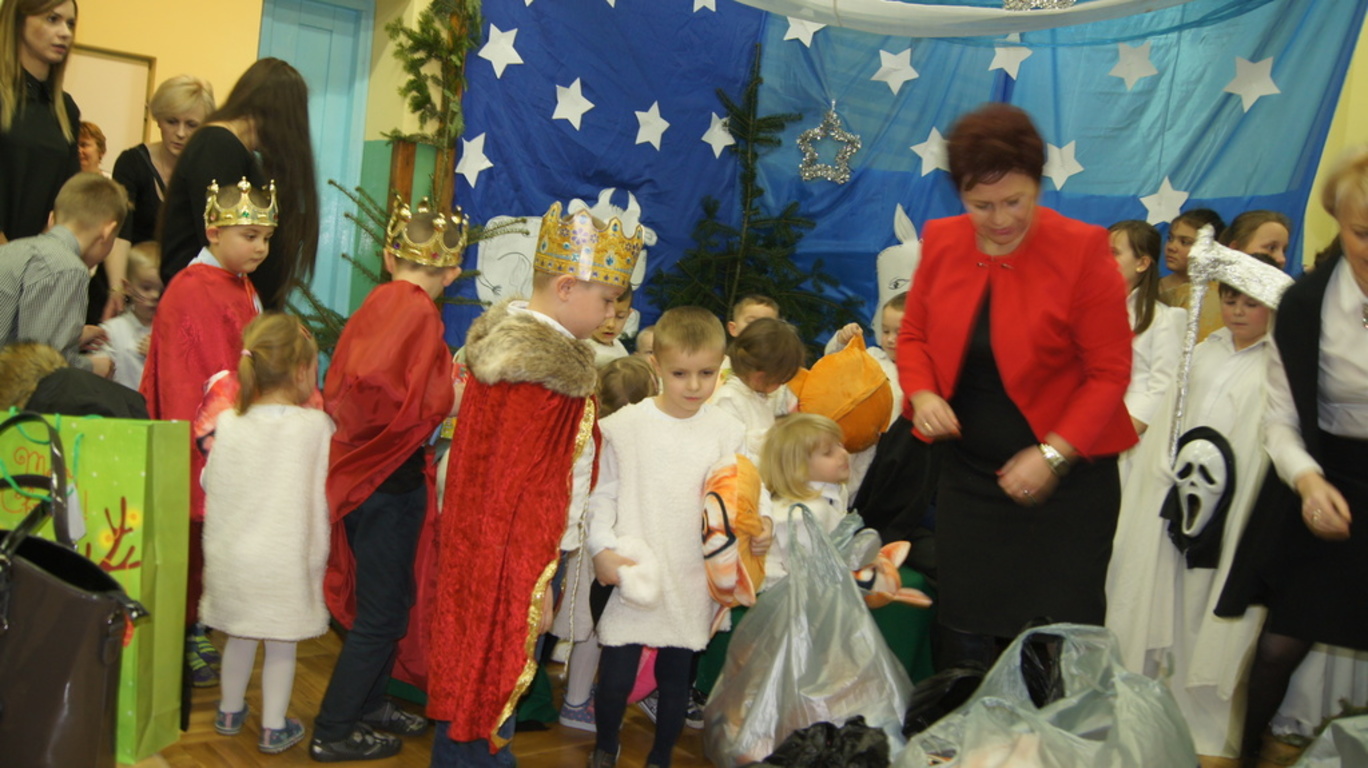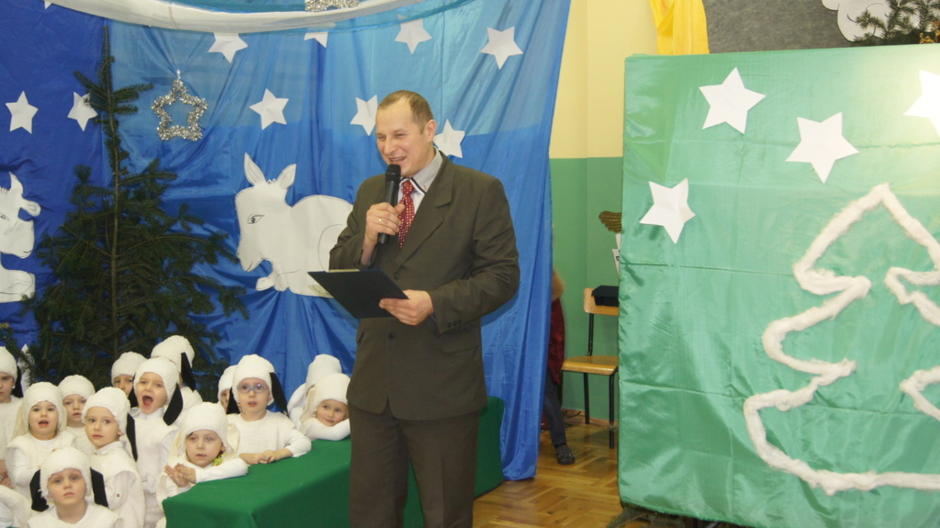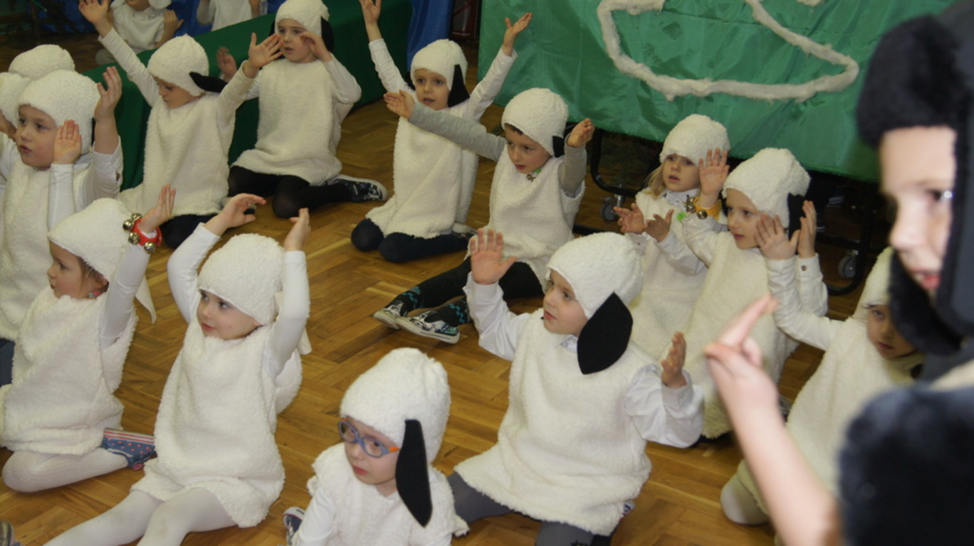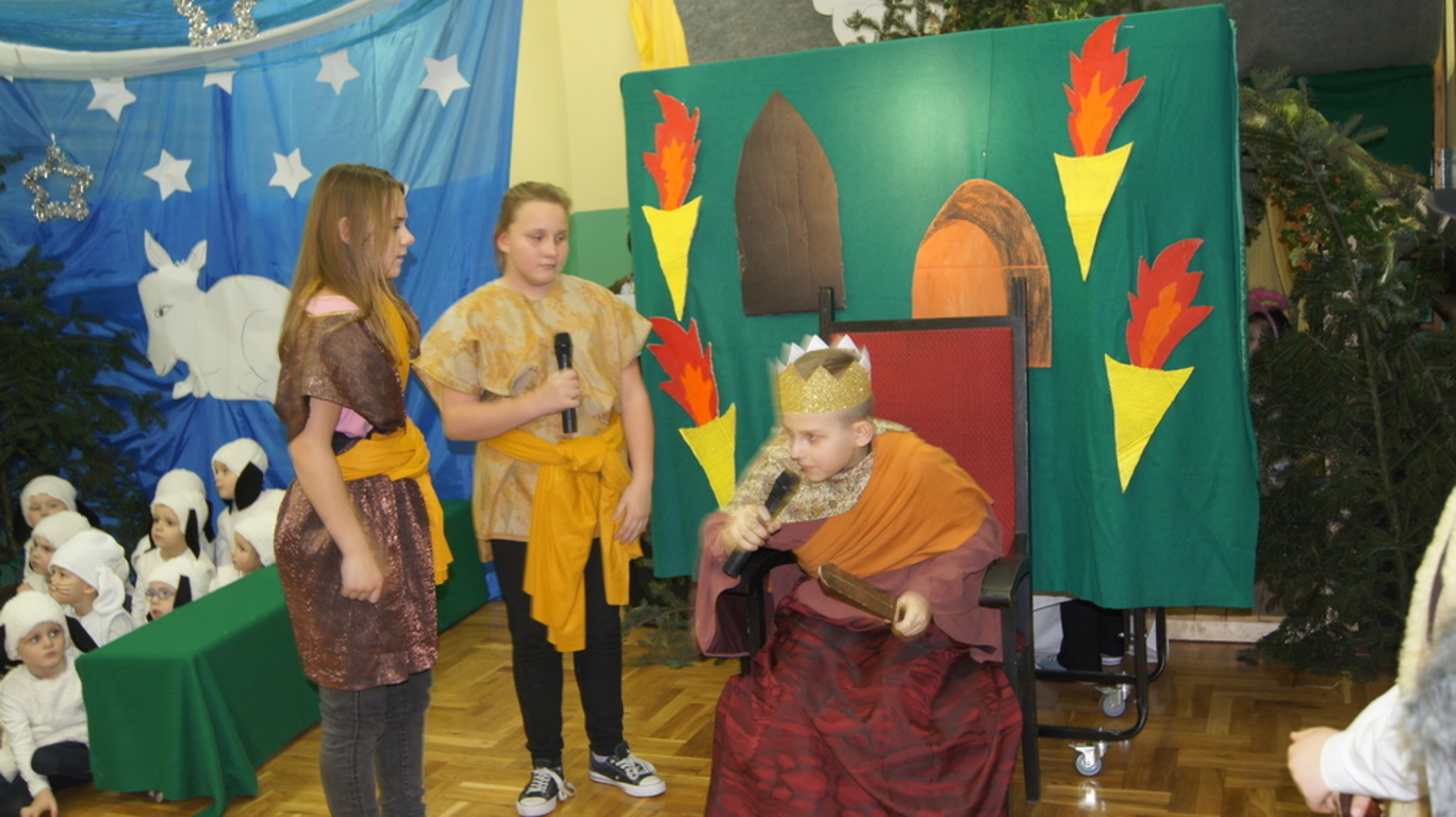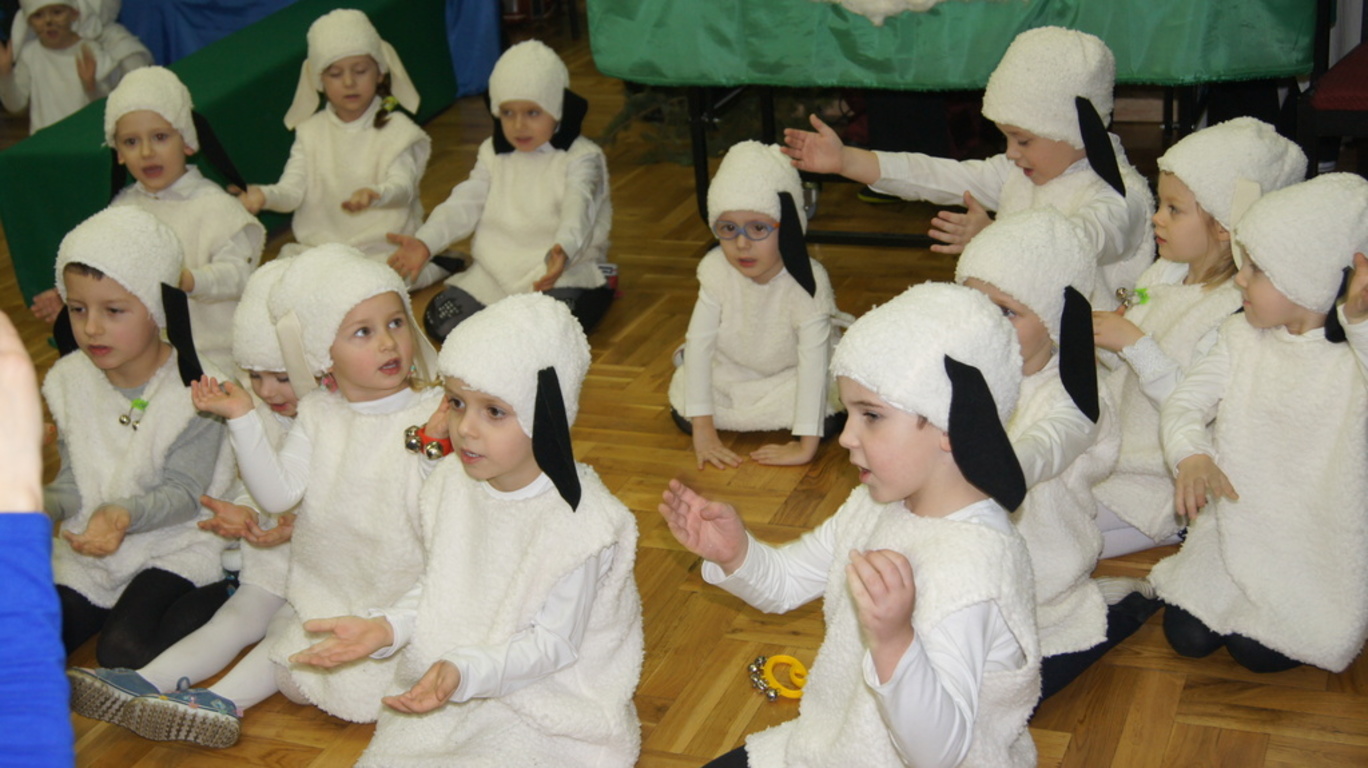 Podczas tegorocznych jasełek, uczniowie naszej szkoły wraz z przedszkolakami Punktu Przedszkolnego „Miś” w żywiołowy sposób wyśpiewali i odtańczyli radosną tajemnicę Bożego Narodzenia. Dzieci zachęciły wszystkich zaproszonych gości oraz kolegów i koleżanki do przeżywania tej magicznej, jedynej nocy w roku. Podczas przedstawienia jasełkowego, nawet zwierzęta przemówiły ludzkim głosem, by obwieścić radosną nowinę. Na pierwszy plan wysunęły się postacie aniołów oraz baranków odegranych przez przedszkolaków, na scenie pojawili się także Trzej Królowie, pasterze, Archanioł Gabriel, Józef, Maryja z Dzieciątkiem. Uczennice klasy IV i V odegrały kolędy na keyboardzie, a Pan Dyrektor na akordeonie. Doskonałym uzupełnieniem tekstu mówionego była muzyka, nocny nastrój poszczególnych scen oraz piosenki dla dzieci i pastorałki.
