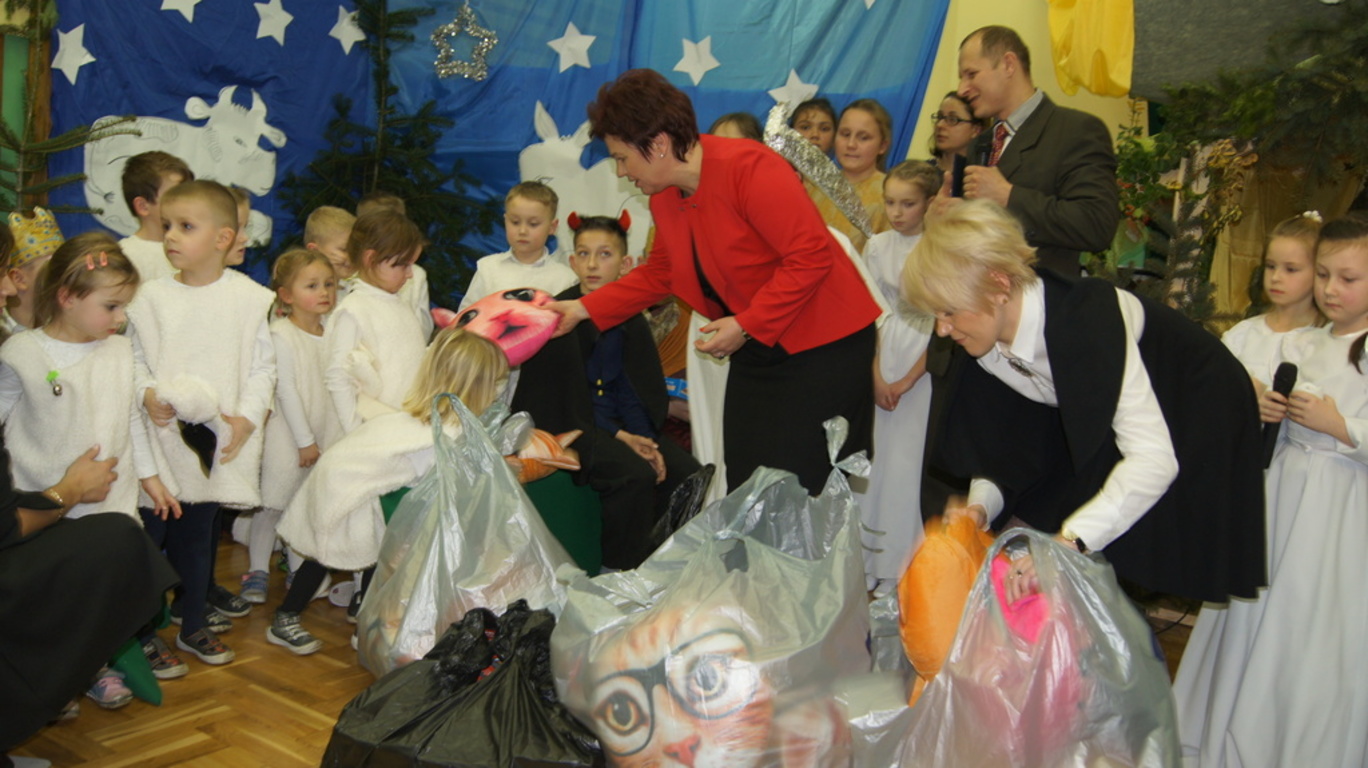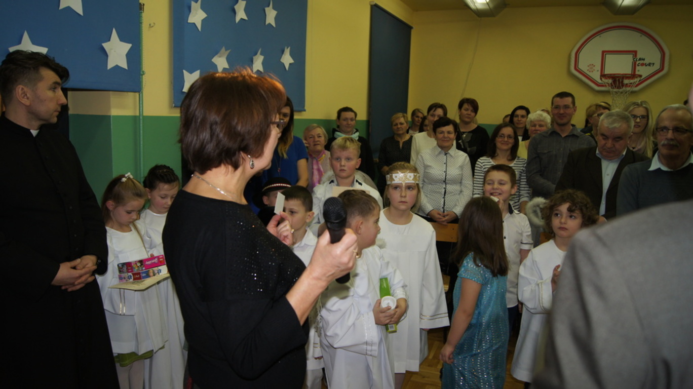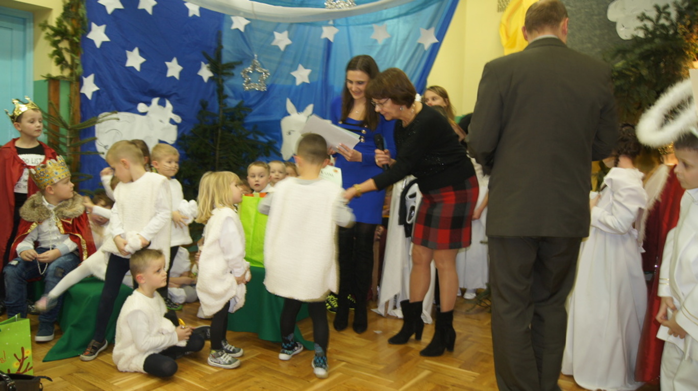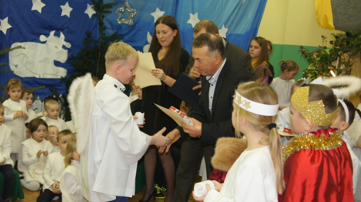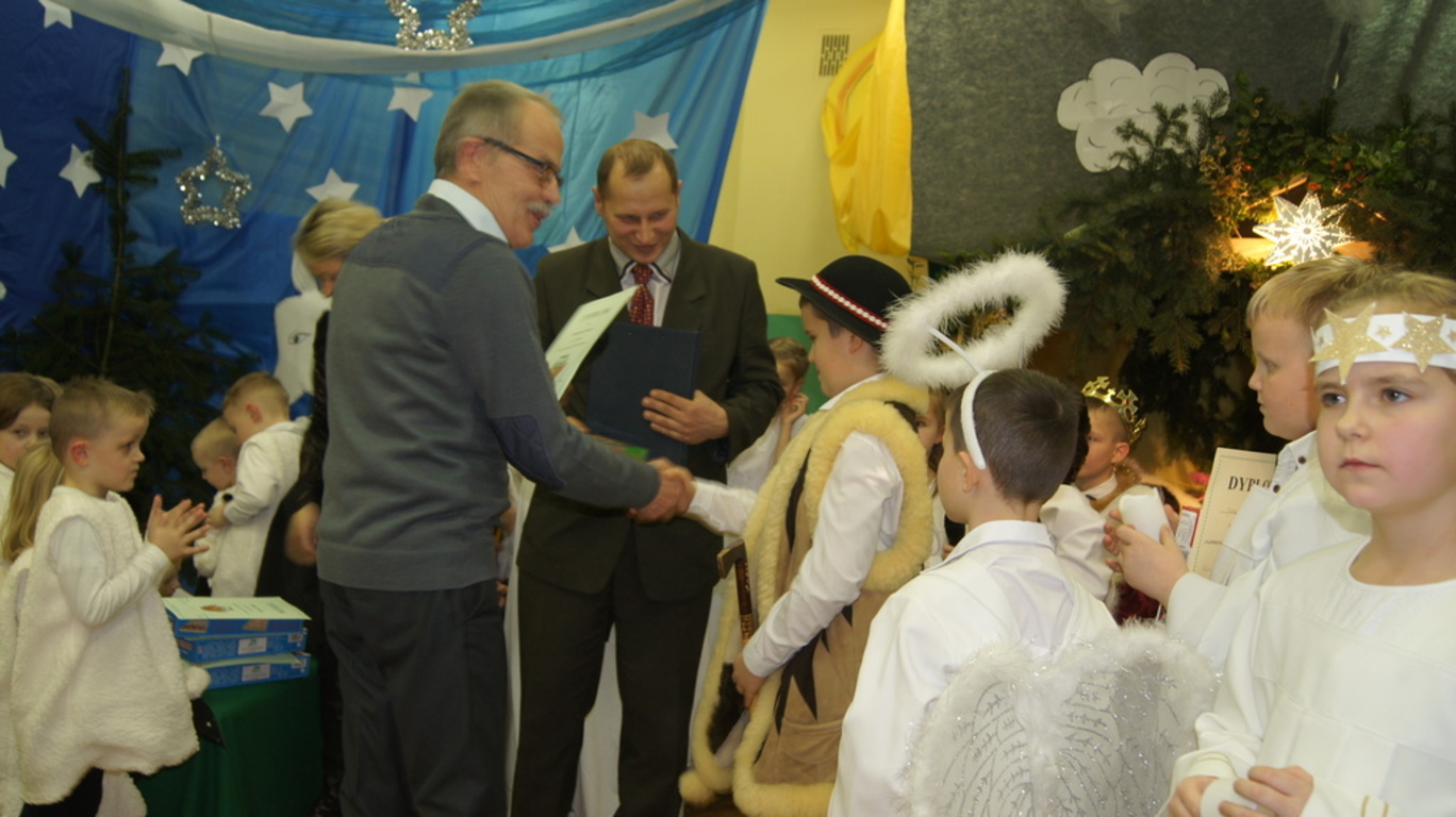Uroczystość była okazją do wręczenia nagród uczniom, którzy wykonali przepiękne choinki i karki bożonarodzeniowe w konkursach szkolnych oraz w konkursie ortograficznym. Ponadto każdy z uczniów i przedszkolaków otrzymał upominek świąteczny. Wszyscy zaproszeni goście, którzy zabierali głos na akademii chwalili piękny występ i ogromny wkład pracy włożony przez występujących artystów. Modlitwą poprowadzoną przez ks. Jarosława Banasika zwieńczyliśmy tę uroczystość.