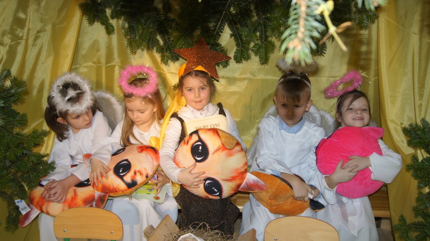 Rodzicom składamy serdeczne podziękowania za piękne stroje owieczek, pastuszków, aniołków. Dziękujemy Panu Sławomirowi Rędzia za żywe choinki i Anecie Świstak za karpie na stół wigilijny.