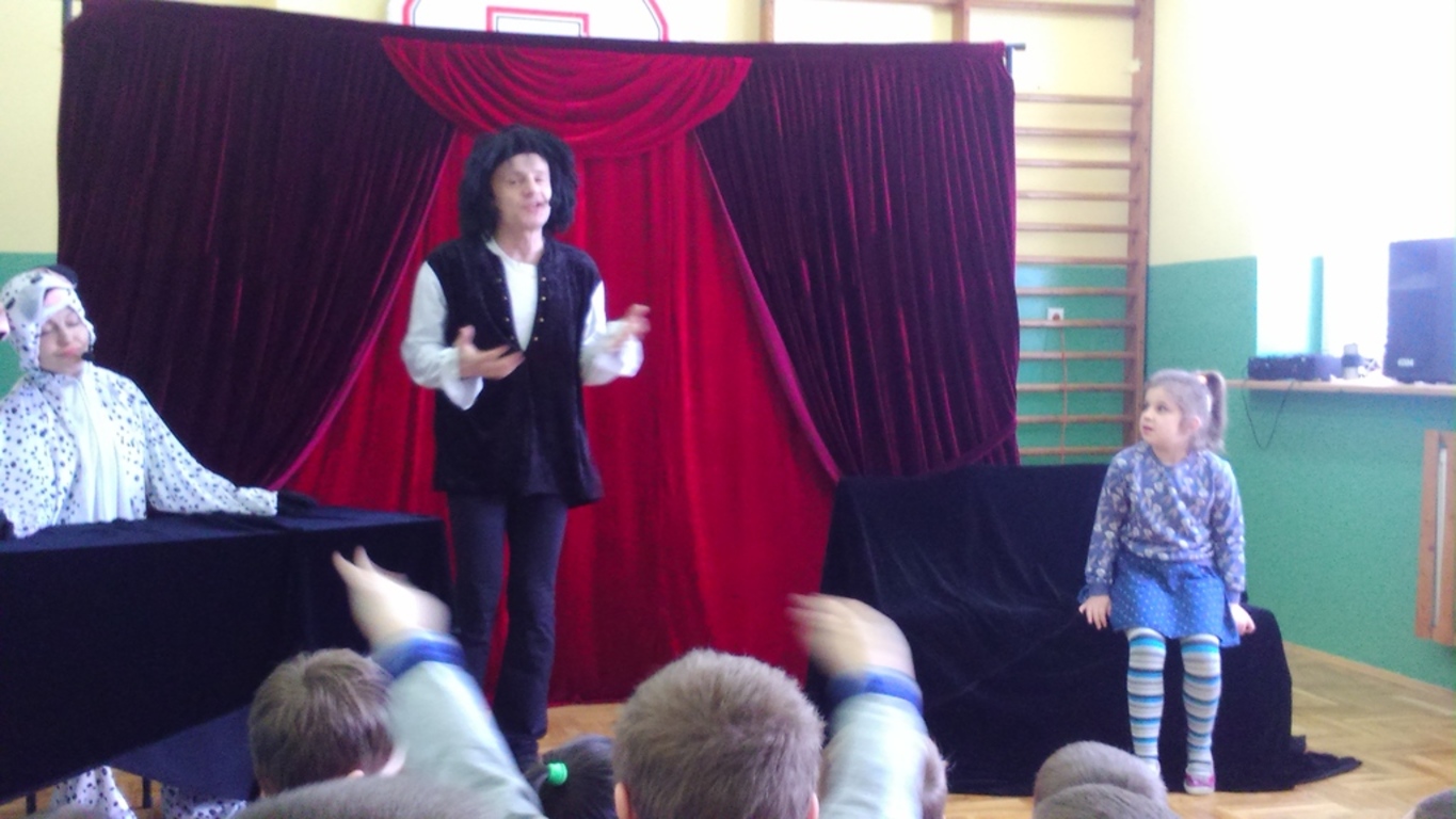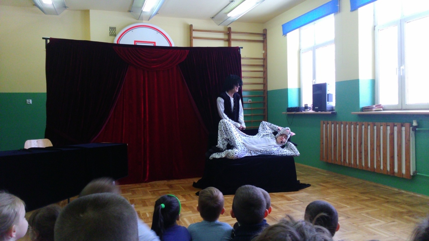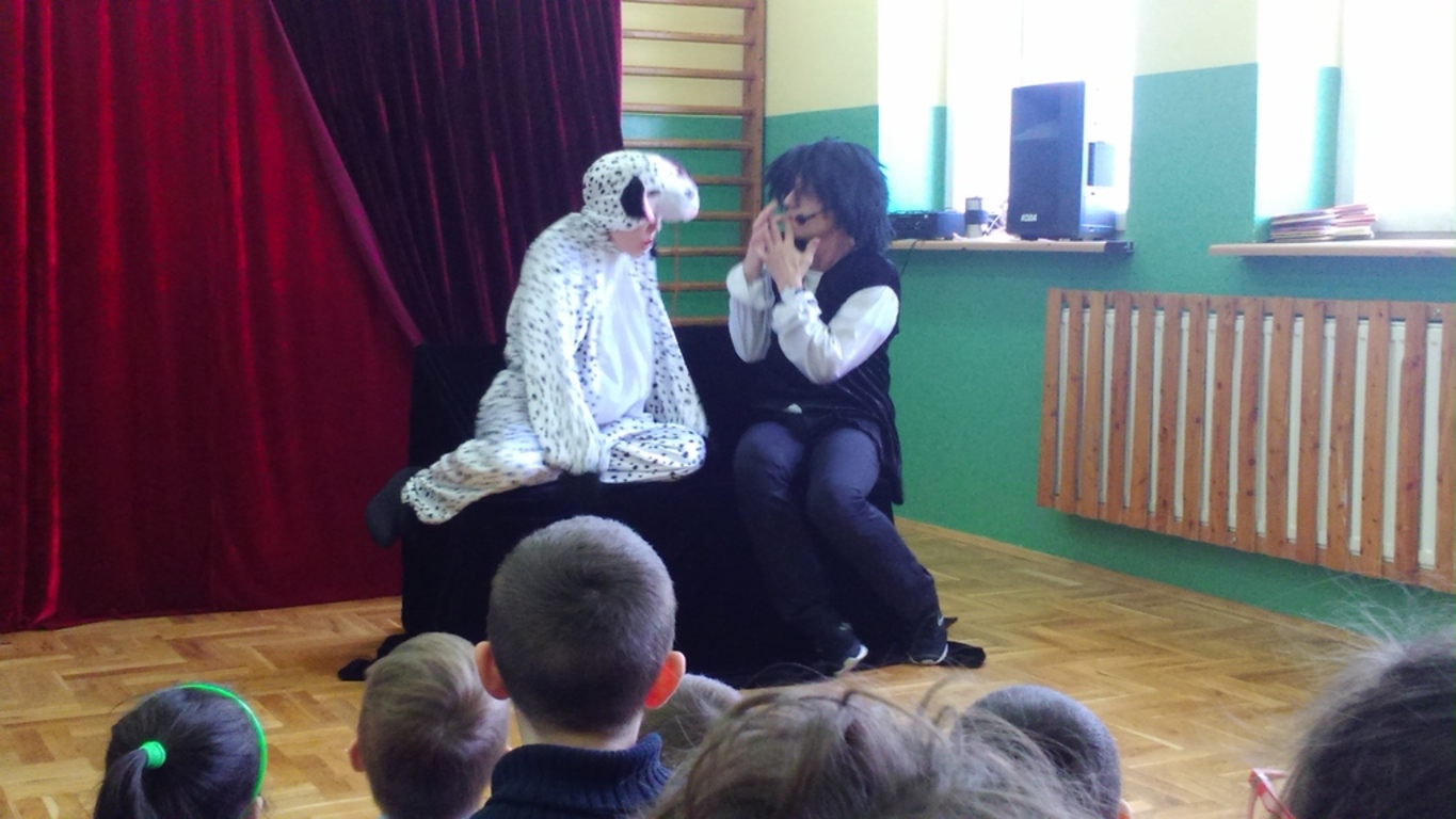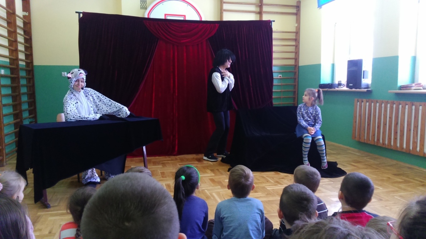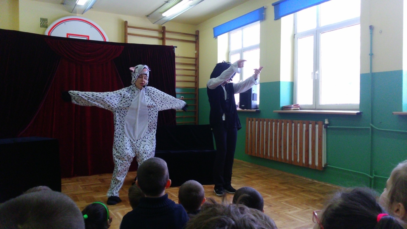 Dnia 7 lutego gościliśmy w naszej szkole aktorów teatru „Kurtyna”. Mieliśmy okazję obejrzeć zabawny, poruszający i mądry spektakl, pełen humoru i piosenek, opowiadający historię przyjaźni małego chłopca, jego mamy i wiernego psa. Aktorzy przedstawili historię, która w istocie jest uroczą teatralną lekcją, tematycznie skupioną na realizacji najważniejszych działań edukacyjnych i profilaktycznych. Spektakl obejrzeli uczniowie klas 0-VI wraz ze swoimi wychowawcami. Opowiadał on o rozbrykanym i czupurnym Dominiku, który chciał posiadać w domu żywe zwierzątko. W splocie wydarzeń główny bohater przygarnia do domu porzuconego przez właścicieli psa Reksia. Szybko uczy się, czym jest odpowiedzialność oraz, że dbanie i opieka nad zwierzętami nie kończy się wtedy, gdy już się znudzą. Dominik doskonale rozumie mowę psa. I chociaż z początku chłopcu bardzo nie podoba się to, co Reksio ma do powiedzenia o swoim nowym właścicielu i jego zachowaniu, to zaskakujące wydarzenia pozwalają Dominikowi odkryć potęgę dobra i mądrości oraz zalety odpowiedzialności.