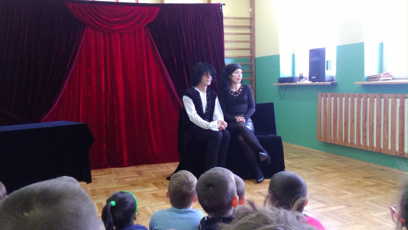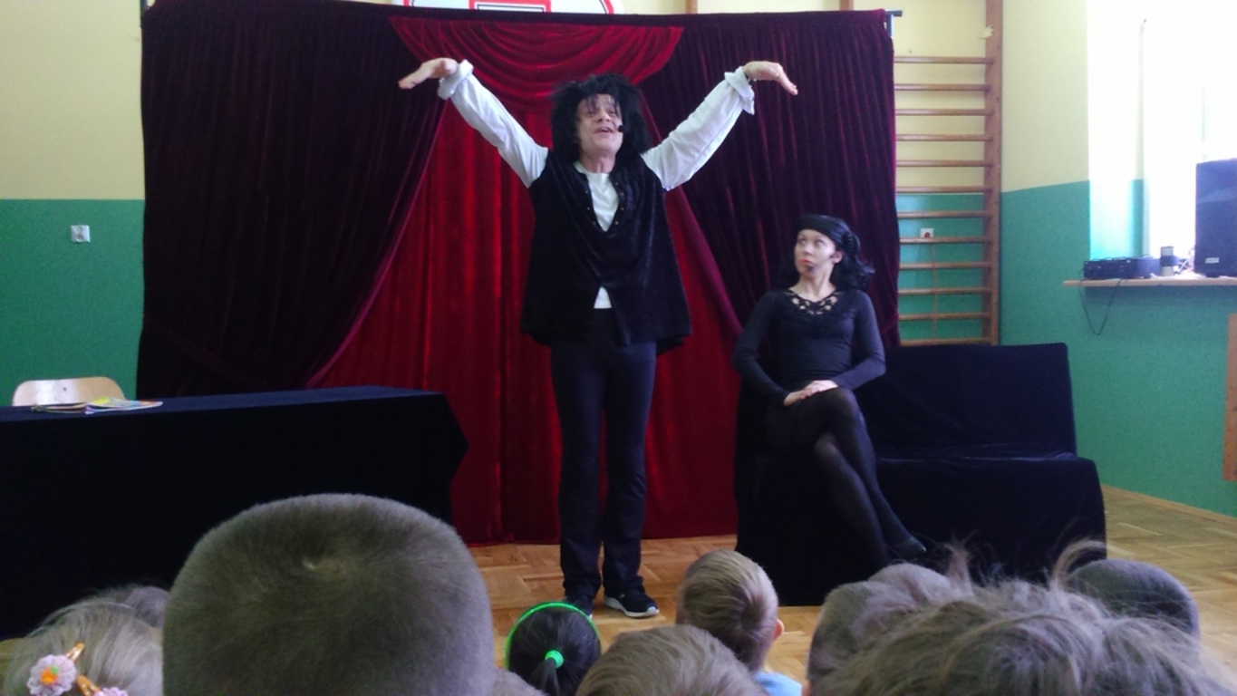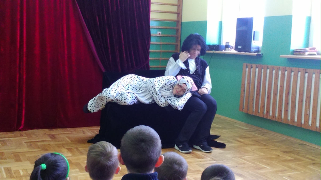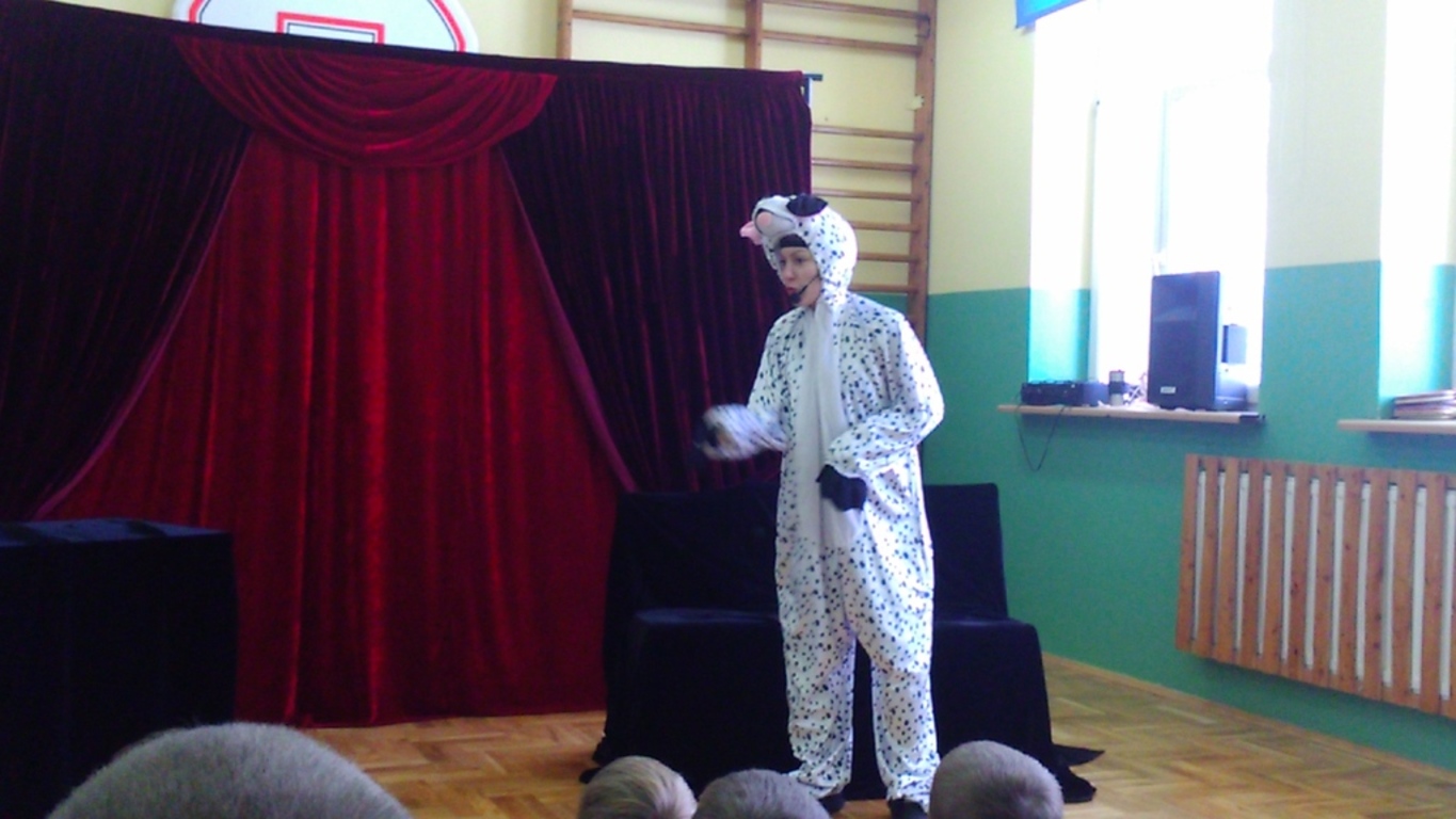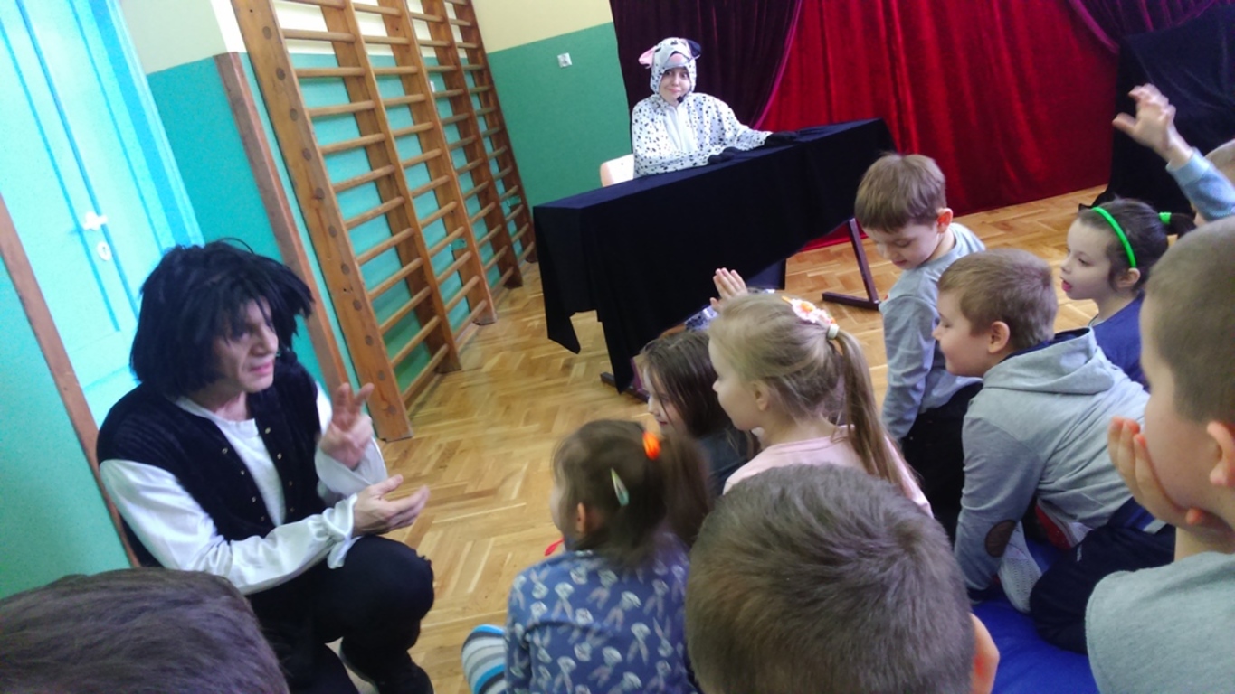 Dnia 7 lutego gościliśmy w naszej szkole aktorów teatru „Kurtyna”. Mieliśmy okazję obejrzeć zabawny, poruszający i mądry spektakl, pełen humoru i piosenek, opowiadający historię przyjaźni małego chłopca, jego mamy i wiernego psa. Aktorzy przedstawili historię, która w istocie jest uroczą teatralną lekcją, tematycznie skupioną na realizacji najważniejszych działań edukacyjnych i profilaktycznych. Spektakl obejrzeli uczniowie klas 0-VI wraz ze swoimi wychowawcami. Opowiadał on o rozbrykanym i czupurnym Dominiku, który chciał posiadać w domu żywe zwierzątko. W splocie wydarzeń główny bohater przygarnia do domu porzuconego przez właścicieli psa Reksia. Szybko uczy się, czym jest odpowiedzialność oraz, że dbanie i opieka nad zwierzętami nie kończy się wtedy, gdy już się znudzą. Dominik doskonale rozumie mowę psa. I chociaż z początku chłopcu bardzo nie podoba się to, co Reksio ma do powiedzenia o swoim nowym właścicielu i jego zachowaniu, to zaskakujące wydarzenia pozwalają Dominikowi odkryć potęgę dobra i mądrości oraz zalety odpowiedzialności.