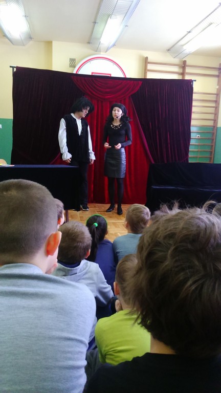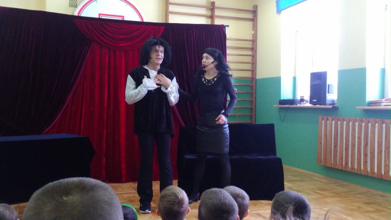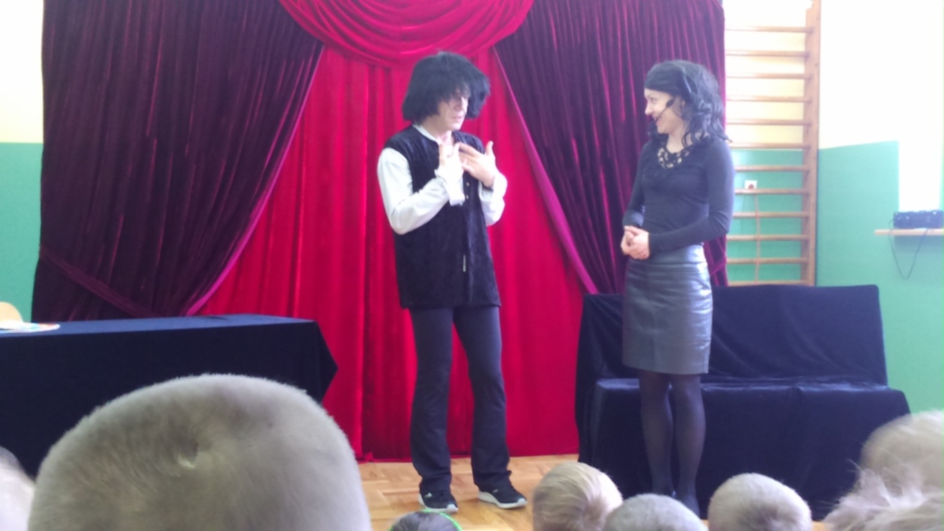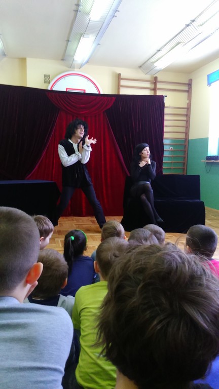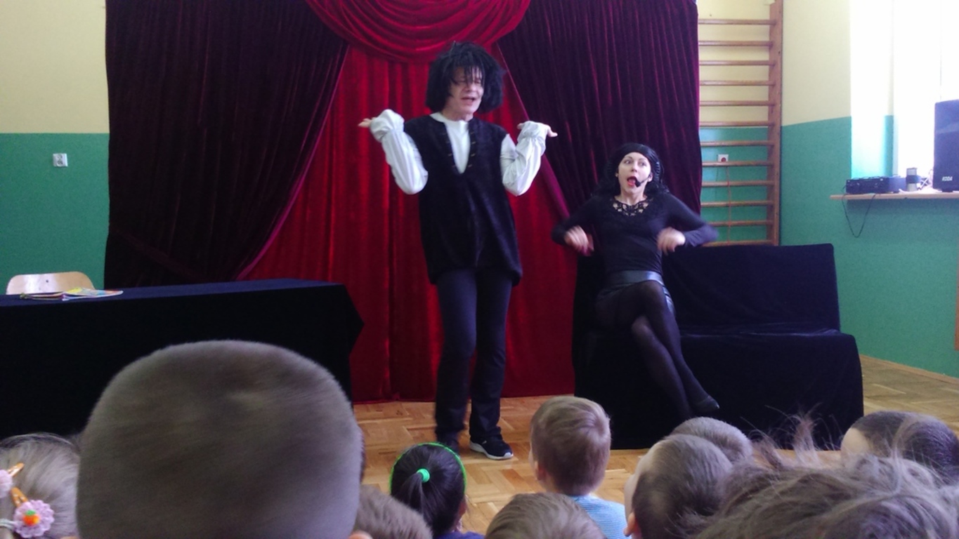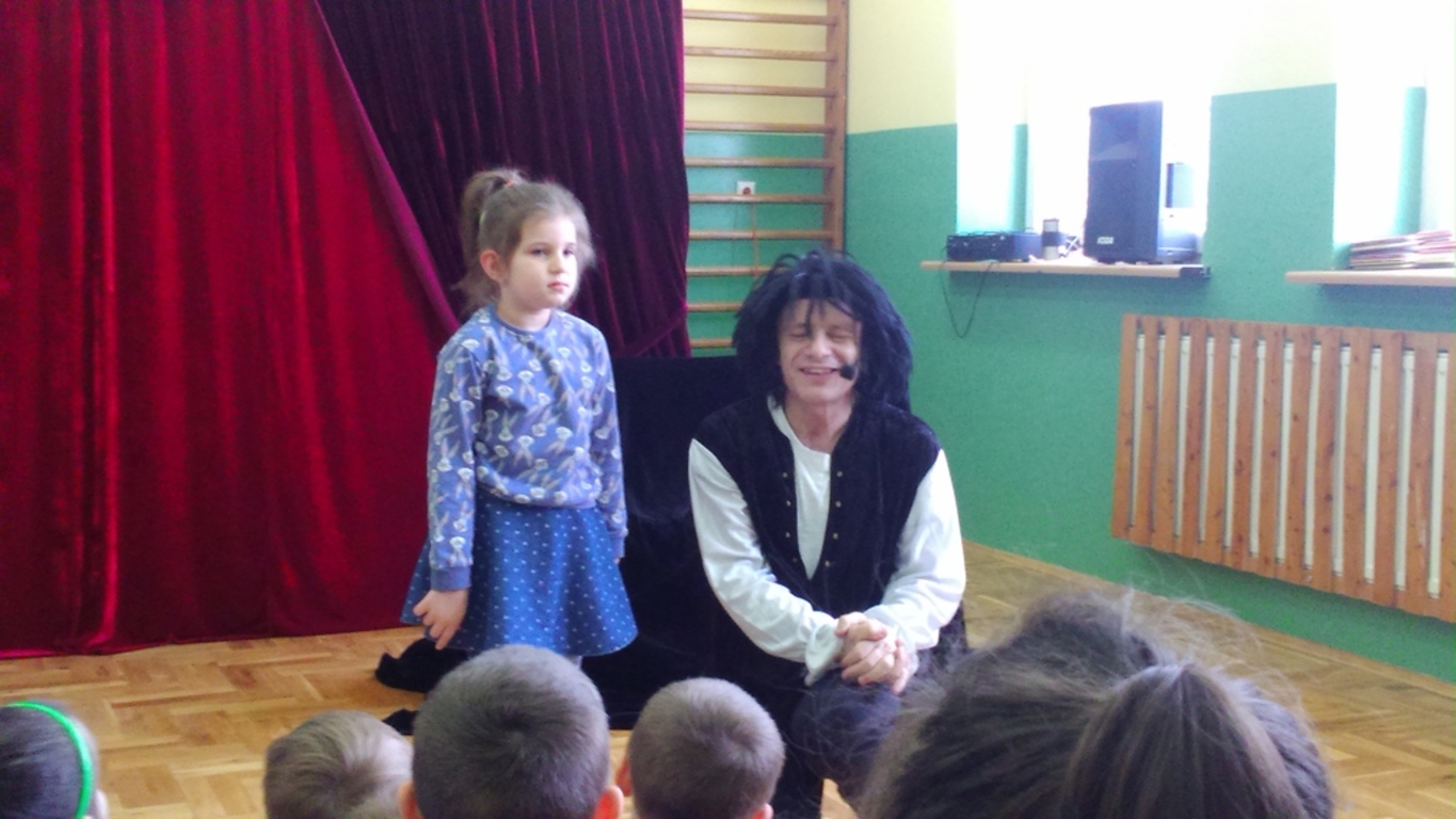 Dnia 7 lutego gościliśmy w naszej szkole aktorów teatru „Kurtyna”. Mieliśmy okazję obejrzeć zabawny, poruszający i mądry spektakl, pełen humoru i piosenek, opowiadający historię przyjaźni małego chłopca, jego mamy i wiernego psa. Aktorzy przedstawili historię, która w istocie jest uroczą teatralną lekcją, tematycznie skupioną na realizacji najważniejszych działań edukacyjnych i profilaktycznych. Spektakl obejrzeli uczniowie klas 0-VI wraz ze swoimi wychowawcami. Opowiadał on o rozbrykanym i czupurnym Dominiku, który chciał posiadać w domu żywe zwierzątko. W splocie wydarzeń główny bohater przygarnia do domu porzuconego przez właścicieli psa Reksia. Szybko uczy się, czym jest odpowiedzialność oraz, że dbanie i opieka nad zwierzętami nie kończy się wtedy, gdy już się znudzą. Dominik doskonale rozumie mowę psa. I chociaż z początku chłopcu bardzo nie podoba się to, co Reksio ma do powiedzenia o swoim nowym właścicielu i jego zachowaniu, to zaskakujące wydarzenia pozwalają Dominikowi odkryć potęgę dobra i mądrości oraz zalety odpowiedzialności.