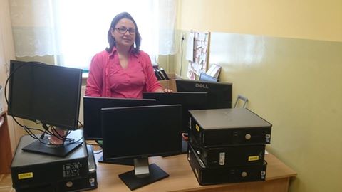 dla Pani Przewodniczącej Rady Rodziców Agnieszki Pasek, za przekazanie na rzecz naszej szkoły 5 zestawów komputerowych z ARiMR. Dziękujemy, a komputery na pewno spełnią swoją rolę podczas zajęć komputerowych w klasach I-VI