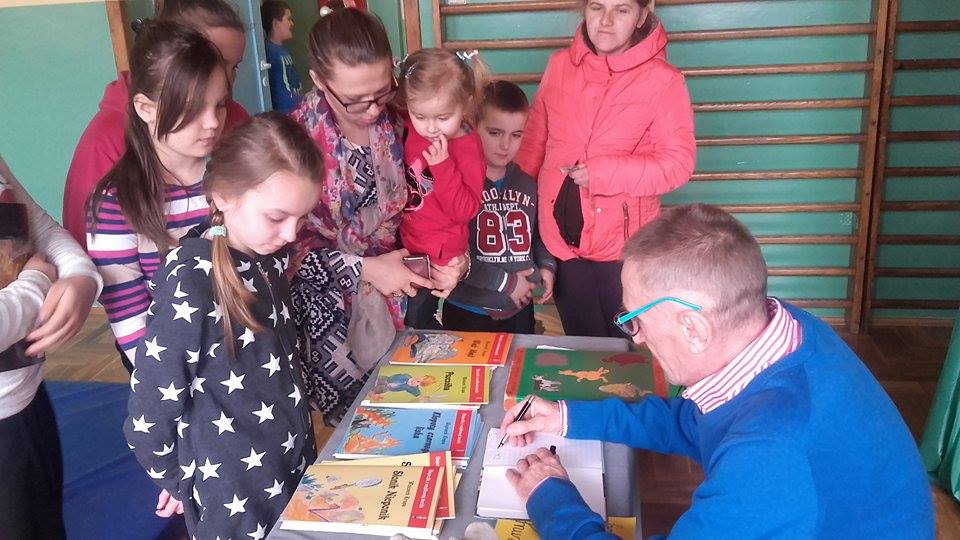 16 marca 2017 r. w naszej szkole odbyło się spotkanie z autorem scenariuszy i bajek dla dzieci. Pan Wojciech Krupa zaprezentował i czytał fragmenty swoich utworów, dając tym samym zachętę do ich przeczytania. Dzieci rozbawione czynnie uczestniczyły w niecodziennych zajęciach. Gość opowiadał uczniom, skąd czerpał pomysły na głównych bohaterów z serii „Bajeczki z Wojtkowej teczki”. Niespodzianką było czytanie Dziesięciu Przykazań Bożych dla dzieci, które jeszcze nie zostało wydane. Była też gimnastyka w rytmie wiersza autorstwa radomskiego bajkopisarza. Spotkanie upłynęło w bardzo miłej atmosferze. Podczas wizyty gościa, uczniowie mogli otrzymać jego autograf i dedykację do zakupionej książki. Panu Wojciechowi serdecznie dziękujemy za poświęcony nam czas.