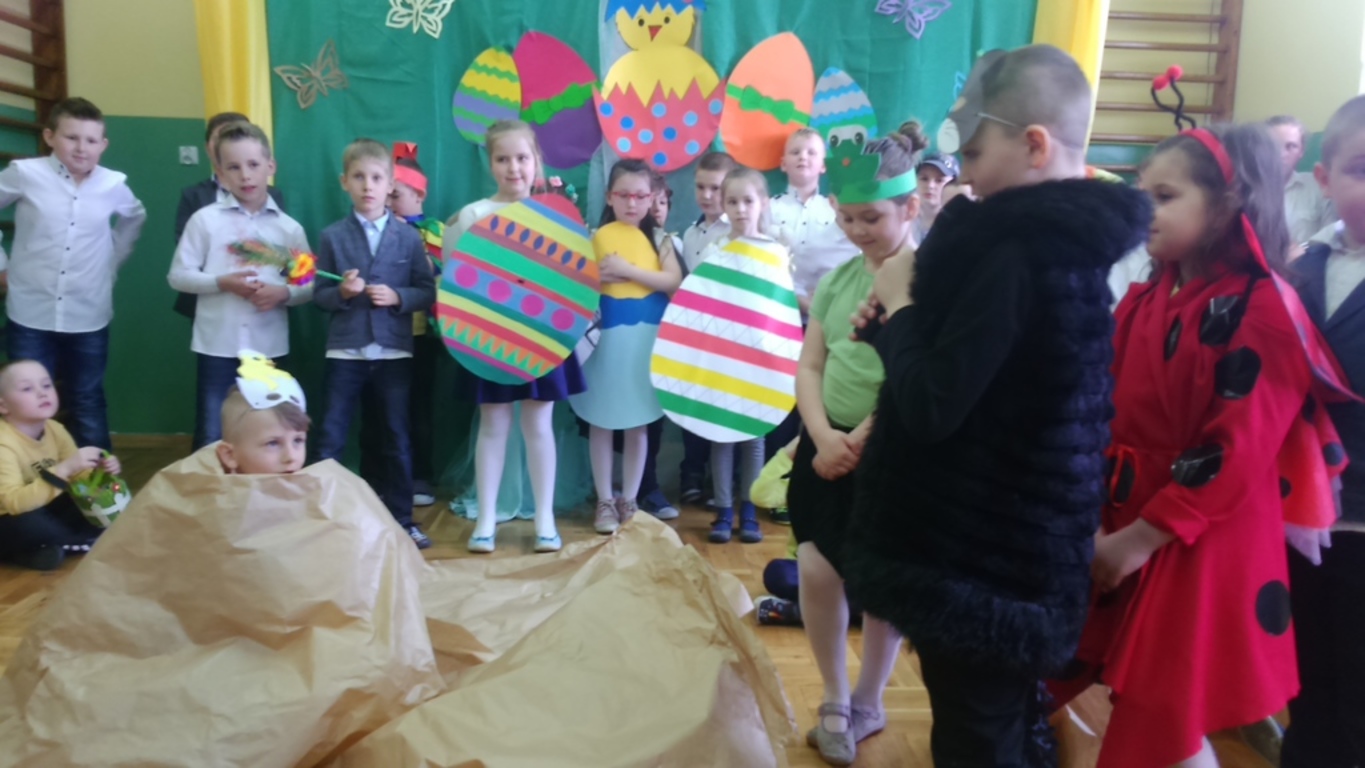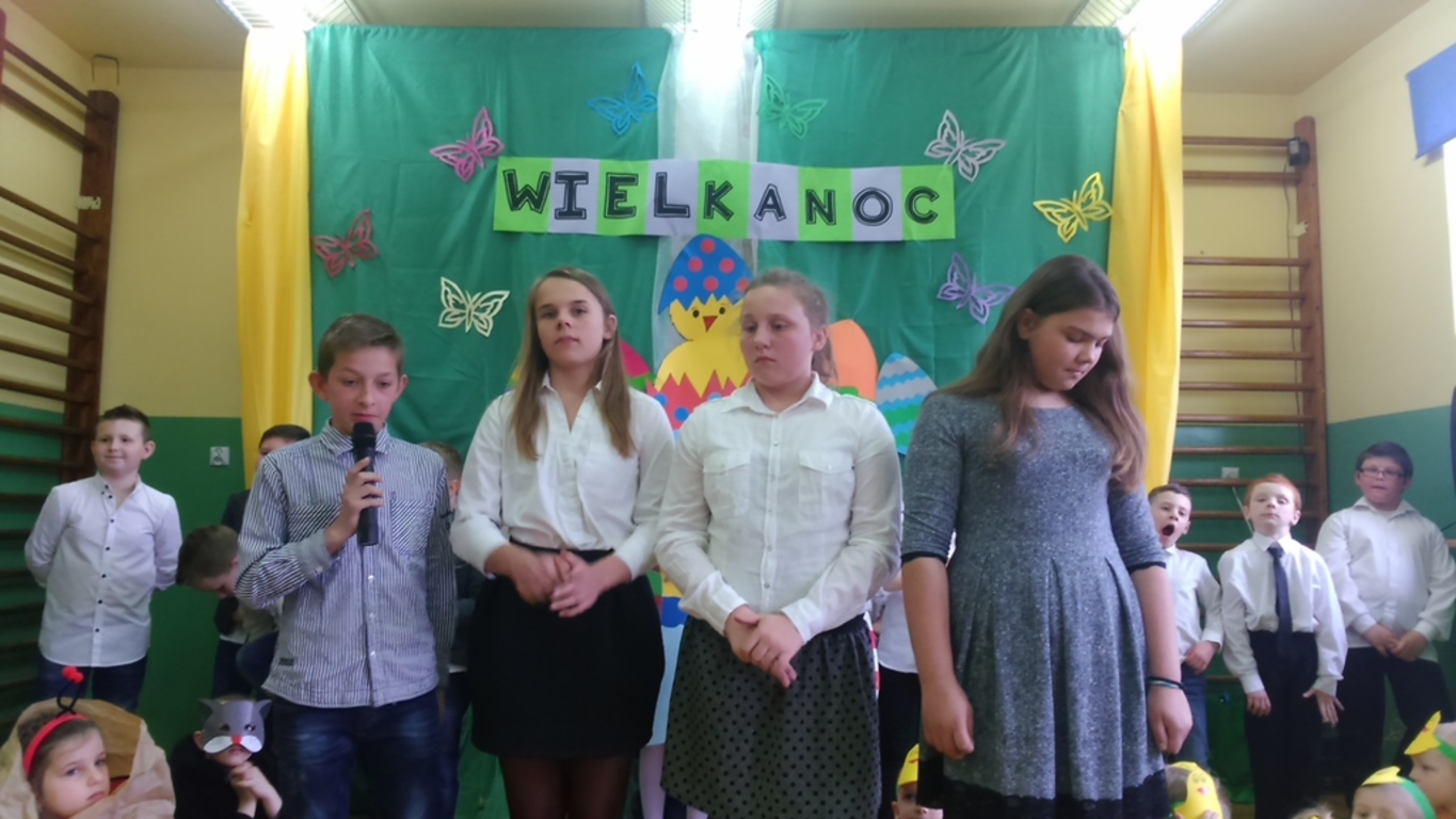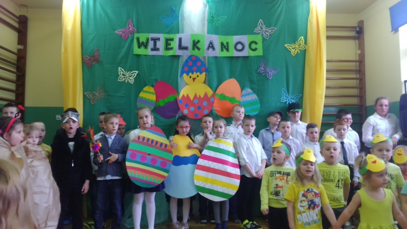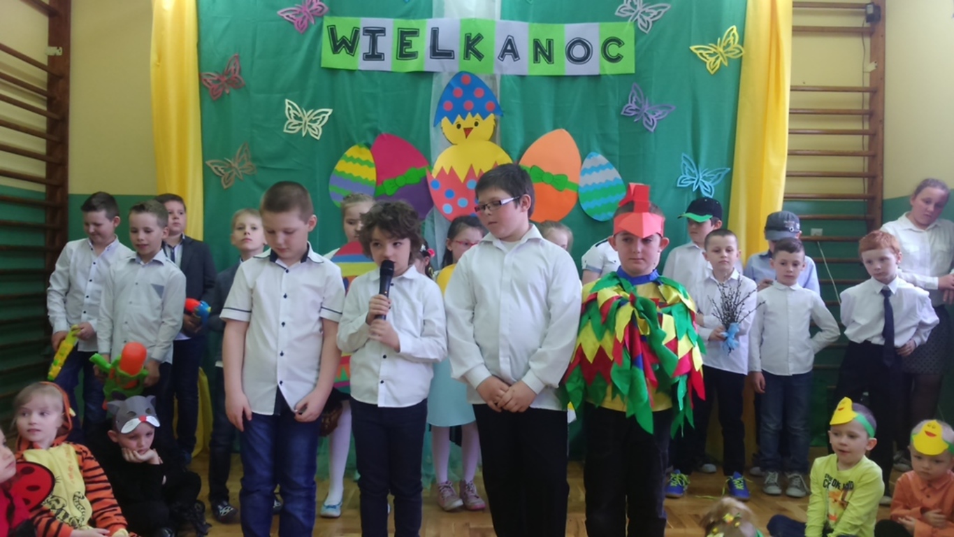 W dniu 12 kwietnia 2017 r. w naszej szkole odbył się apel wielkanocny, w którym wzięli udział zarówno uczniowie jak i przedszkolaki z Punktu Przedszkolnego „Miś”. W części artystycznej, uczniowie klas I-VI przybliżyli wierszem i piosenką sens Świąt Wielkiej Nocy. Przedszkolaki i uczniowie kl.”0”, wcieliły się w barwne postacie, prezentując piękną grę aktorską. Wspaniały występ wszystkich dzieci, zorganizowany przez panie B. Mazur i A. Kasperczyk, kolorowe dekoracje, wspólne dzielenie się jajkiem wprowadził nas w świąteczny nastrój.Uroczystość ta uświadomiła nam, że święta Wielkanocne to nie tylko bazie, pisanki czy Śmigus Dyngus, ale przede wszystkim Chrystus, który oddał za nas życie i dzięki temu zapewnił nam zbawienie.