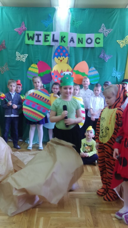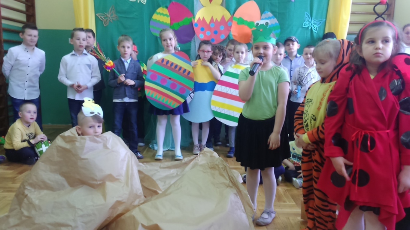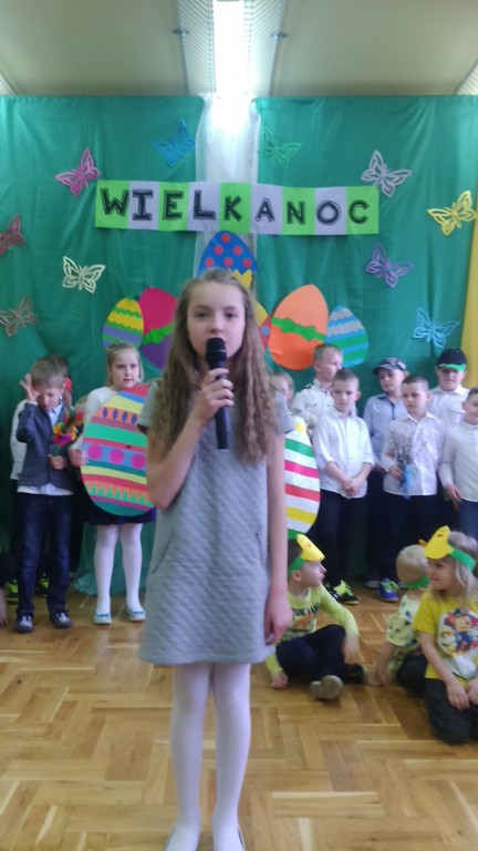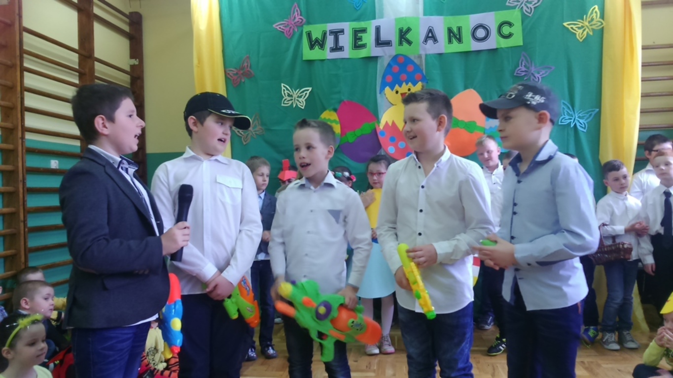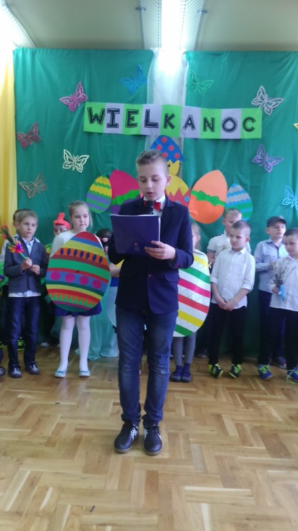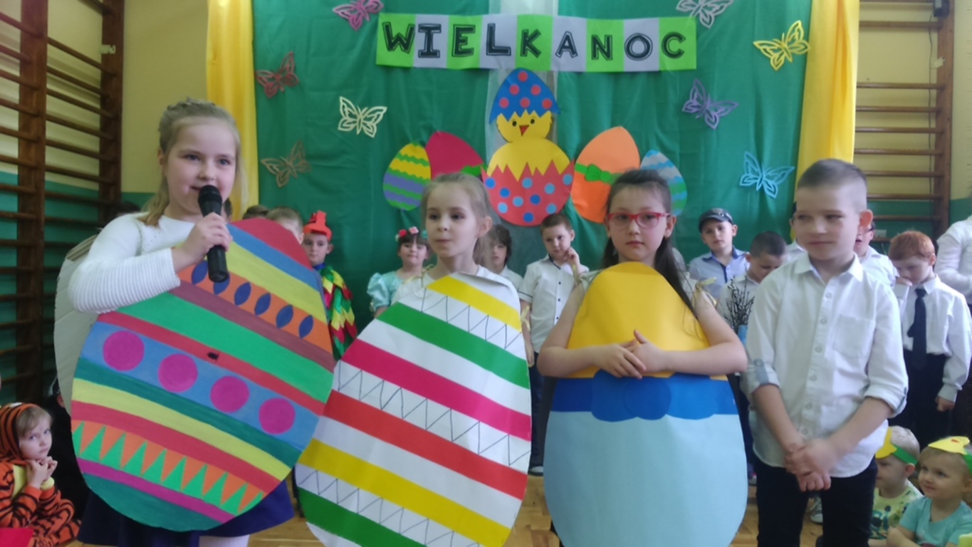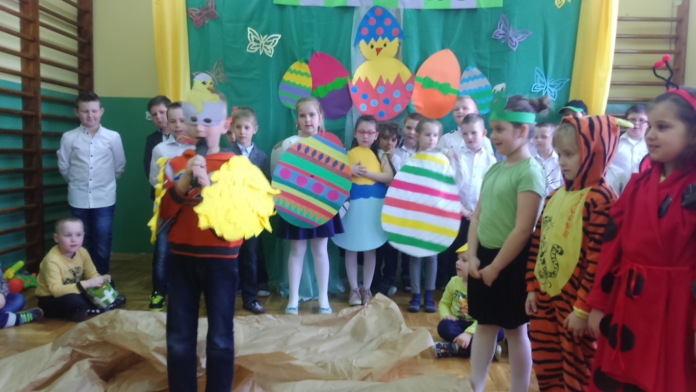 W dniu 12 kwietnia 2017 r. w naszej szkole odbył się apel wielkanocny, w którym wzięli udział zarówno uczniowie jak i przedszkolaki z Punktu Przedszkolnego „Miś”. W części artystycznej, uczniowie klas I-VI przybliżyli wierszem i piosenką sens Świąt Wielkiej Nocy. Przedszkolaki i uczniowie kl.”0”, wcieliły się w barwne postacie, prezentując piękną grę aktorską. Wspaniały występ wszystkich dzieci, zorganizowany przez panie B. Mazur i A. Kasperczyk, kolorowe dekoracje, wspólne dzielenie się jajkiem wprowadził nas w świąteczny nastrój.Uroczystość ta uświadomiła nam, że święta Wielkanocne to nie tylko bazie, pisanki czy Śmigus Dyngus, ale przede wszystkim Chrystus, który oddał za nas życie i dzięki temu zapewnił nam zbawienie.