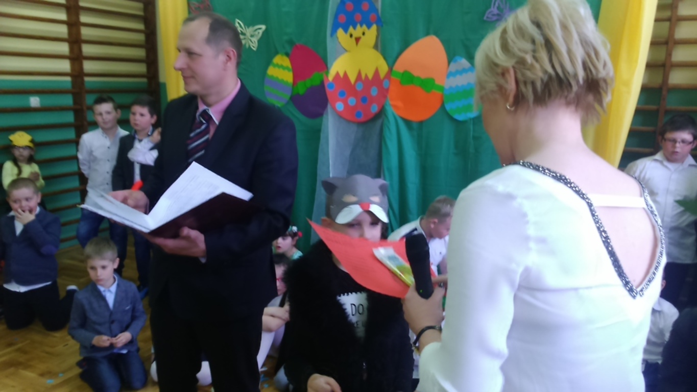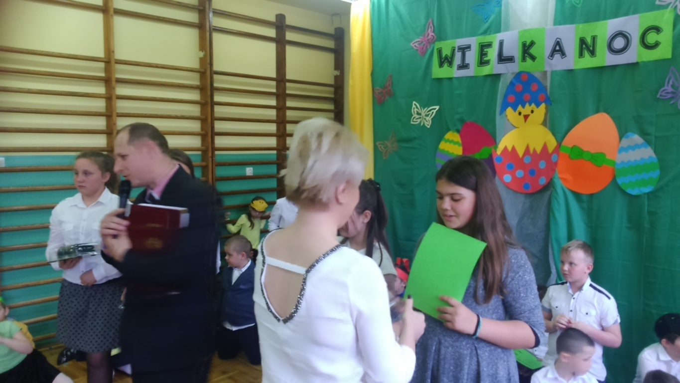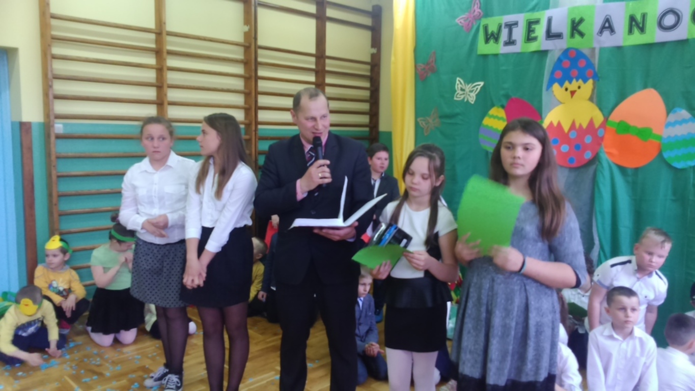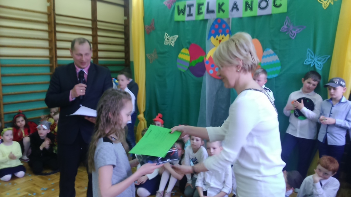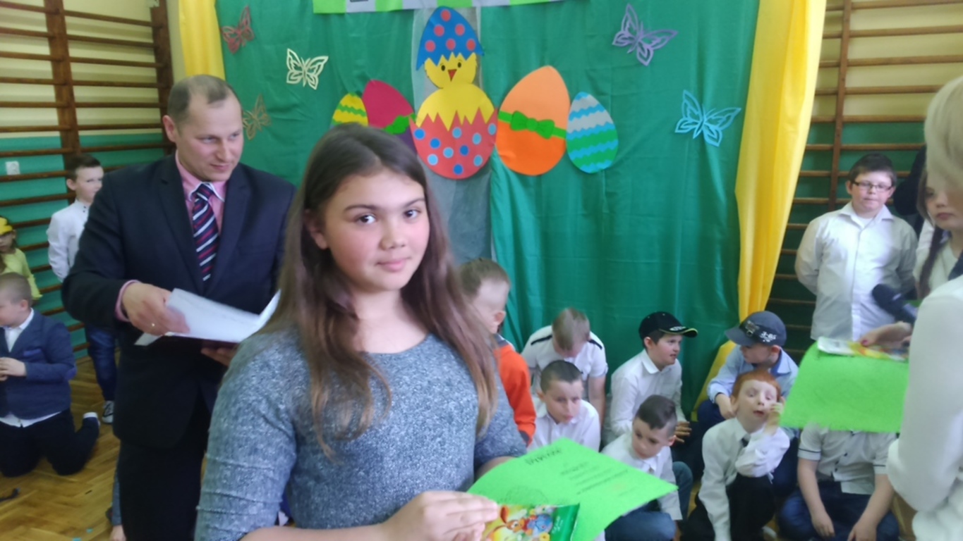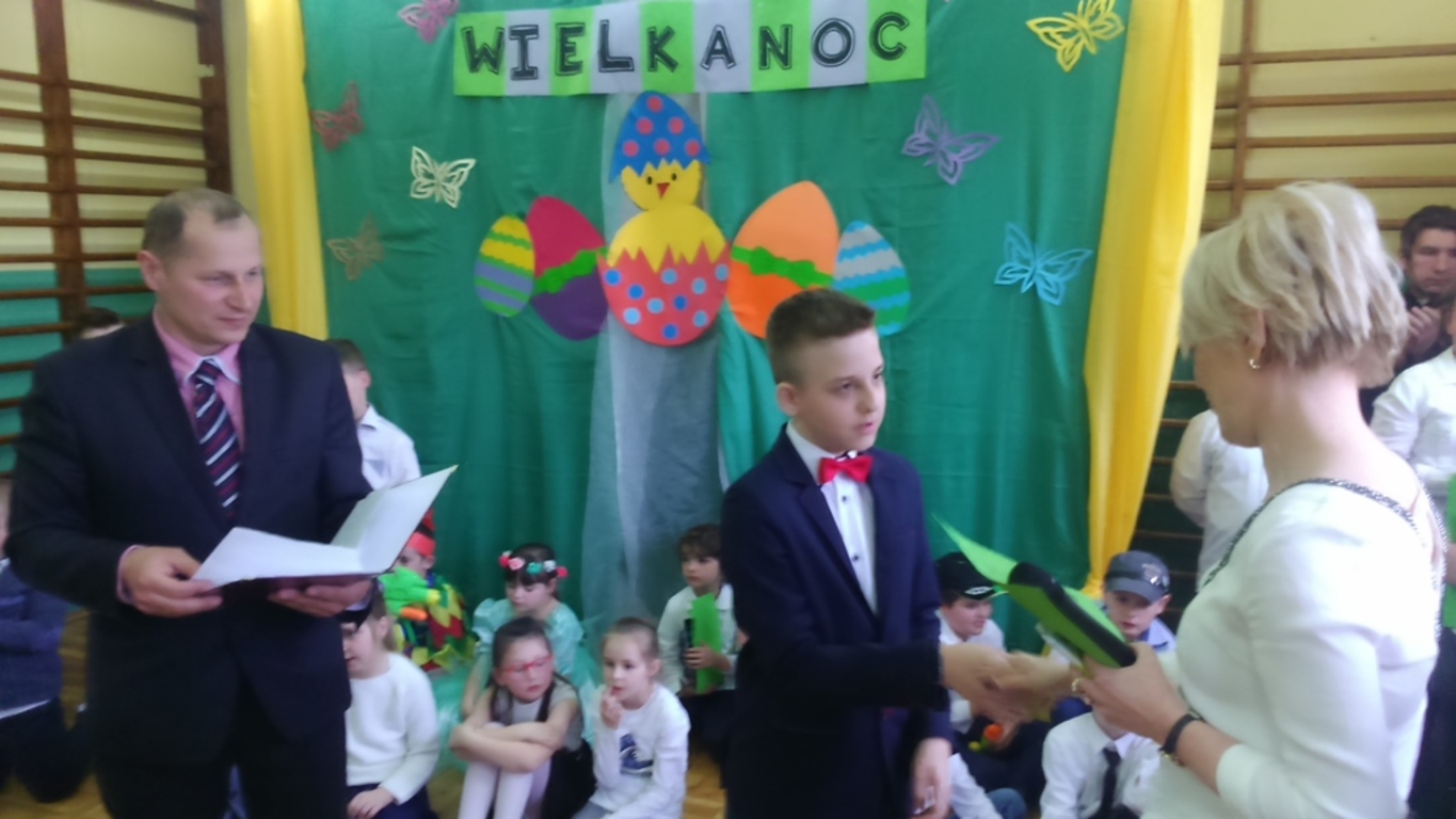 Przy okazji apelu wielkanocnego, zostały wręczone nagrody i dyplomy w konkursach na „Odkrywcę baśni” - I nagroda dla Julii Tomaszewskiej za najpiękniejszą baśń o rzece Wiśle i tytuł „Małego poety” - I nagroda dla Jana Kuśty za wiersz „Jako, czy kura?”. Konkursy literackie, zorganizowane zostały przez zespół humanistyczny, a w konkursie na „Najpiękniejszą palmę i pisankę” za I miejsca w obu kategoriach, nagrodę i dyplom wręczono Weronice Woźniak i Filipowi Szpakowi. Samorząd Szkolny odebrał rolki, hulajnogę i piłkę, uzyskane w ramach konkursu Agencji Rynku Rolnego za „Najlepszy program działań towarzyszących programowi owoce i warzywa w szkole”.