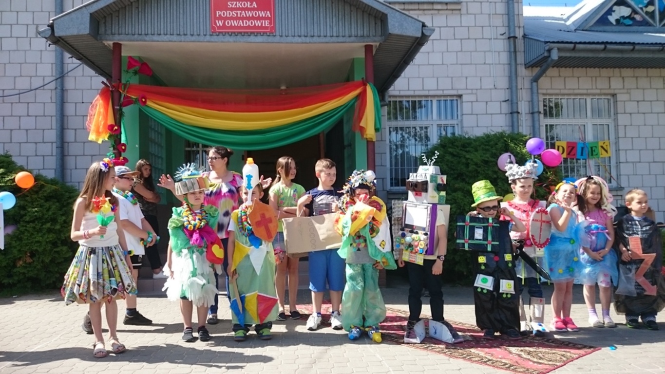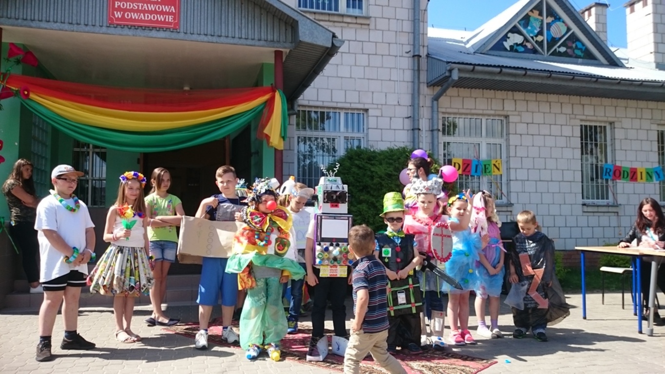 W dniu 1 czerwca przy Niepublicznej Szkole Podstawowej w Owadowie odbył się Dzień Rodziny, konkursom i zabawom nie było końca. Dzieci z przedszkola i klas I-III zaprezentowały się przed swoimi rodzicami z wierszem i piosenką. W trakcie pikniku odbył się także pokaz mody ekologicznej EKO-MODA 2017 w ramach konkursu "Najpiękniejszy strój ekologiczny" zorganizowany przez p. Katarzynę Rajkowską. Już od godziny 9.00 ruszyły kolorowe stoiska z przepysznymi przekąskami i ciastami upieczonymi przez mamy naszych uczniów. Na placu szkolnym odbyły sie zabawy i rozegrano zaciekły mecz siatkarski. Nie zabrakło malowania twarzy i okazji do zrobienia sobie pamiątkowego zdjęcia w dziwacznym przebraniu lub peruce. Była też okazja, jak na każdym pikniku, do zjedzenia kiełbaski z grilla. A ten piękny dzień udał się dlatego, że pogoda doposała i wszyscy, a więc rodzice z dziećmi i nauczyciele, byli gospodarzami uroczystości. Dziękujemy rodzicom za pomoc organizacji poczęstunku, Radzie Rodziców za ufundowanie upominków i nagród oraz Panu Radnemu Marcinowiu Paskowi za ufundowanie piłek na nagrody do konkursow sportowych.