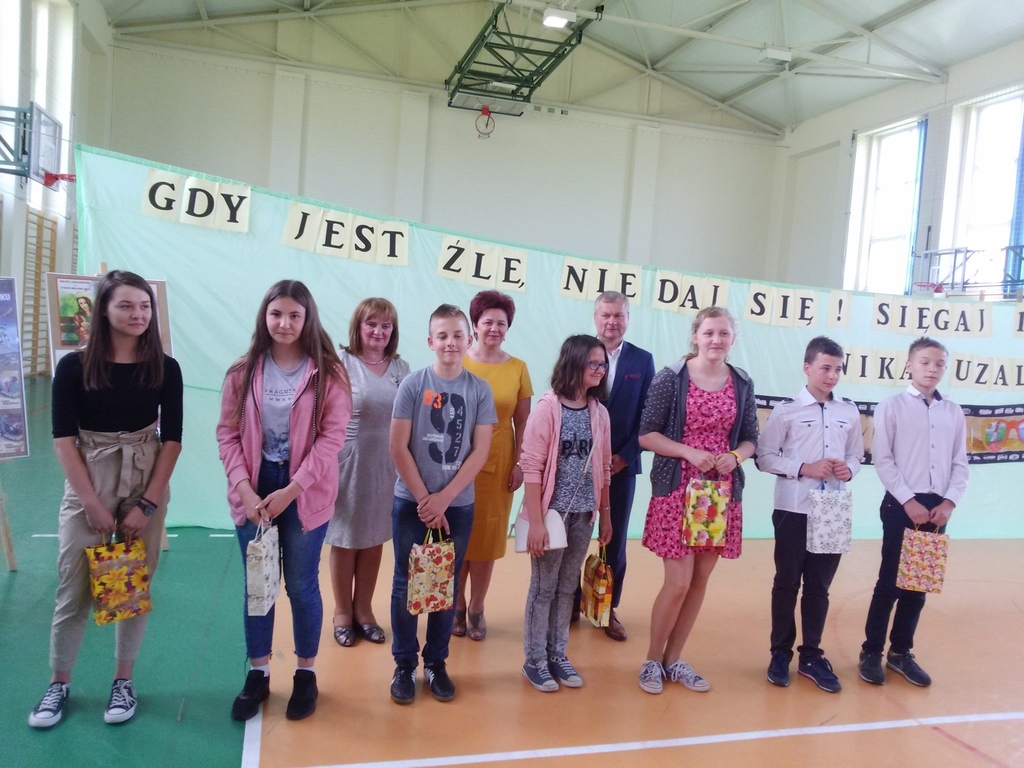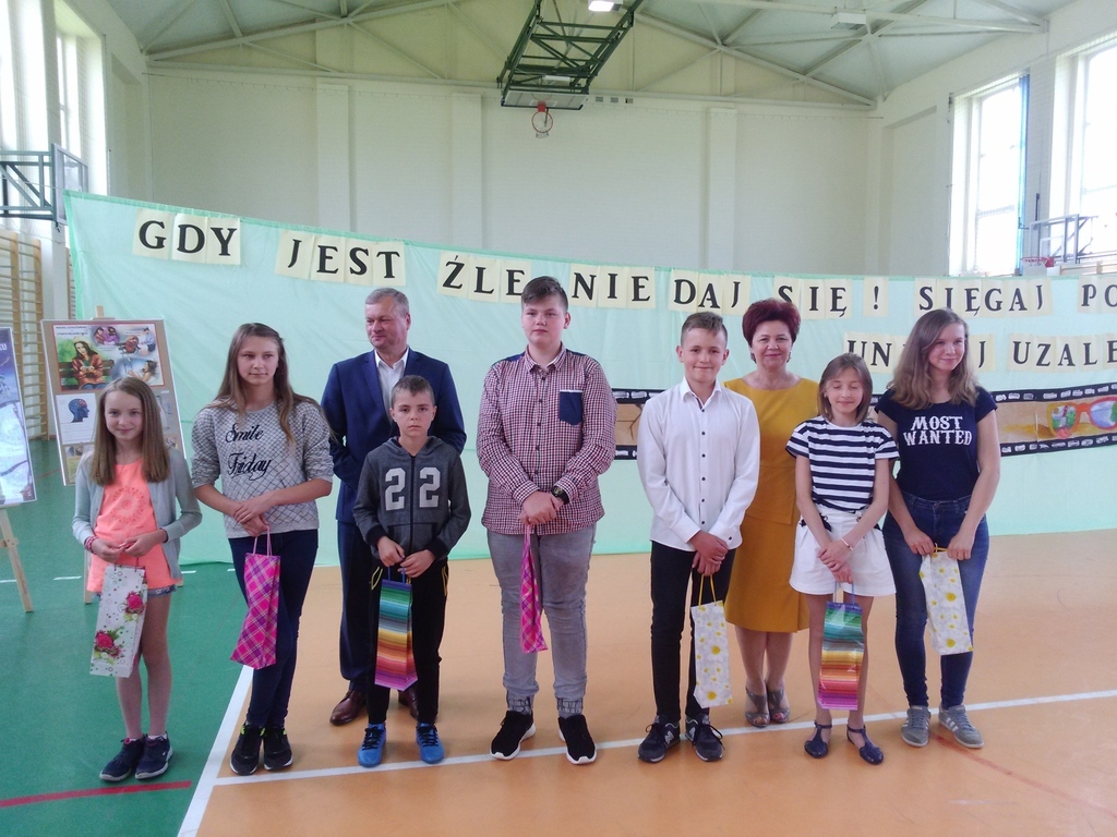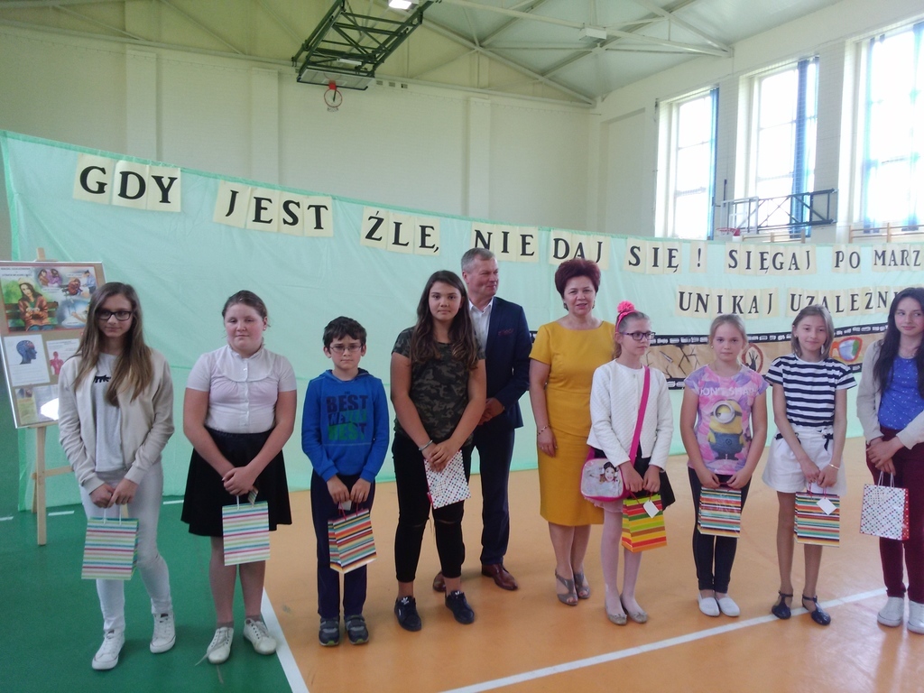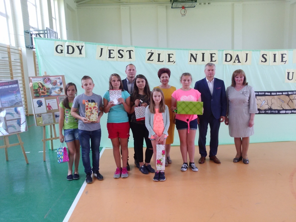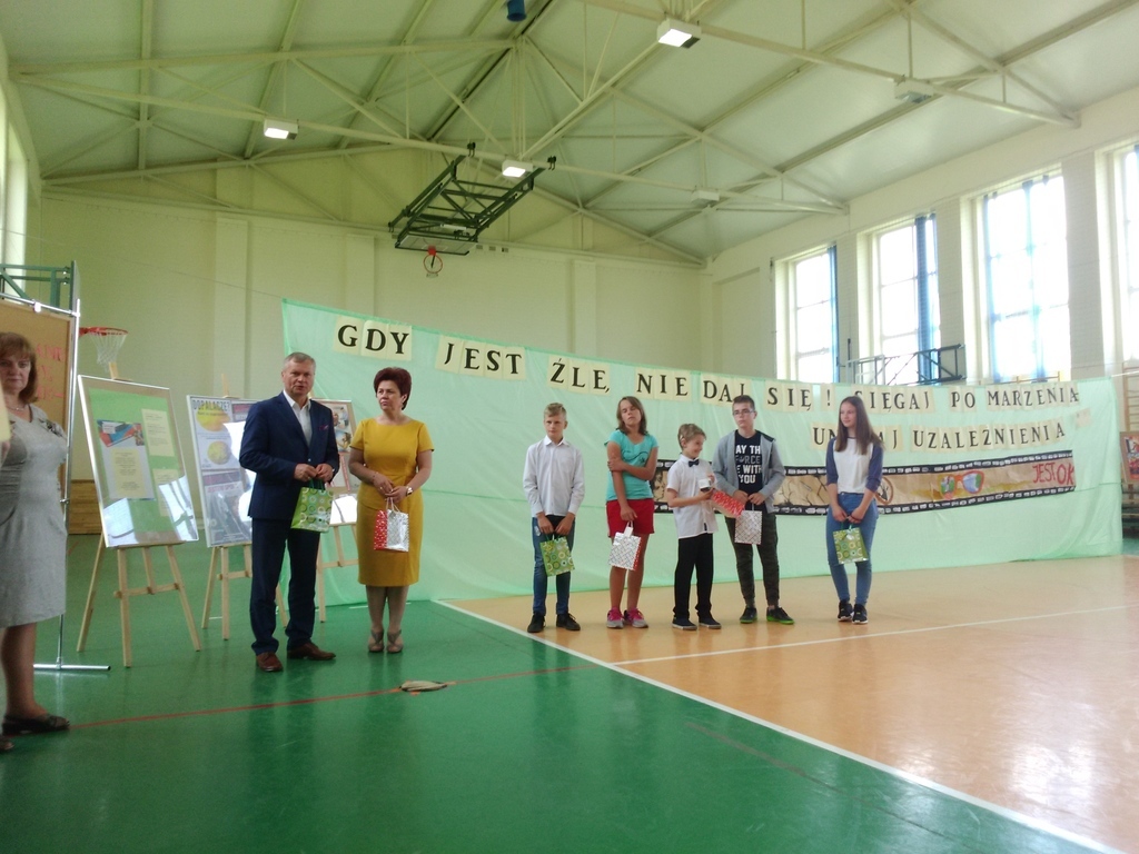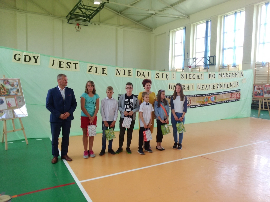 W dniu 1 czerwca 2017 r. w Publicznym Gimnazjum w Jastrzębi odbył się finał konkursu pod hasłem „GDY JEST ŹLE, NIE DAJ SIĘ! SIĘGAJ PO MARZENIA – UNIKAJ UZALEŻNIENIA”. W konkursie tym wzięli także udział uczniowie Niepublicznej Szkoły Podstawowej w Owadowie. Celem konkursu, było promowanie wiedzy o uzależnieniach oraz niebezpieczeństwie zarażenia wirusem HIV i chorobie AIDS wśród młodzieży szkolnej. Nagrody, które ufundowali Starostwo Powiatowe w Radomiu oraz Wójt Gminy Jastrzębia otrzymało 48 uczniów w sześciu kategoriach. Otwarcia uroczystości dokonała Pani Elżbieta Zasada - Wójt Gminy Jastrzębia. Nastepnie zabrał głos Wicestarosta Radomski Pan Leszek Margas. Obecny był również Naczelnik Wydziału Zdrowia Pan Piotr Kozubek. Uroczystość uświetniła recytacja wierszy tematycznie związanych z konkursem w wykonaniu młodzieży gimnazjalnej. Spotkanie zakończono prelekcją oraz koncertem muzycznym. Dziękujemy uczniom za udział w tym konkursie i gratulujemy Kacprowi Jarząbkowi - I miejsca, Weronice Woźniak - II miejsca, a Oli Olczyk - miejsca III.