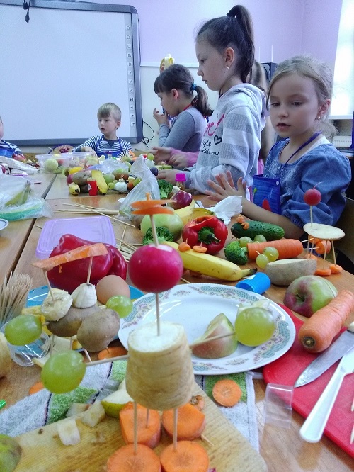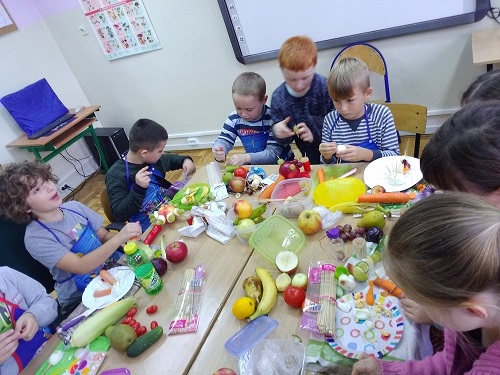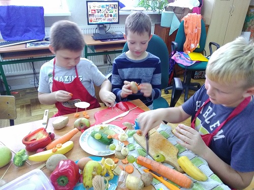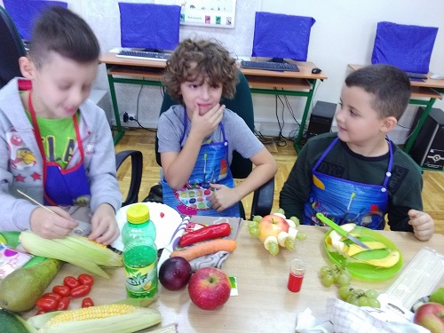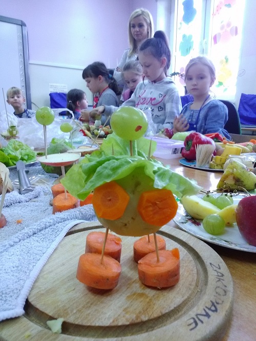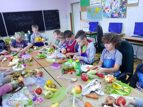 Nasza szkoła zarejestrowana została do konkursu pod nazwą „Zdrowo jem, więcej wiem”, jest to już 8 edycja programu Fundacji Banku Ochrony Środowiska objętego honorowym patronatem małżonki Prezydenta RP Agaty Kornhauser-Dudy. W związku z tym w dniu 6 października 2017r. z inicjatywy koordynatora ds. promocji zdrowia, a zarazem opiekuna programu Katarzyny Rajkowskiej w naszej szkole w ramach zajęć z edukacji społecznej odbyły się pierwsze w tym roku warsztaty o zdrowiu. Podczas warsztatów dzieci mogły nazywać i grupować warzywa, owoce, przetwory mleczne, tłuszcze i produkty mączne. Dzieci z klas I,II i III wzięły udział w konkursach z udziałem warzyw i owoców oraz samodzielnie wykonywały stworki z warzyw i owoców. Uczniowie dowiedzieli co należy jeść aby być zdrowym, miały za zadanie napisać propozycje dziennych posiłków. Dzielna grupa szkolnych Warzywniaków i Owocniaków sprawiła się znakomicie oraz wykazała bogatą wiedzą na temat zdrowego odżywiania. Na koniec dzieci nagrodzone zostały dyplomami i upominkami w konkursach.