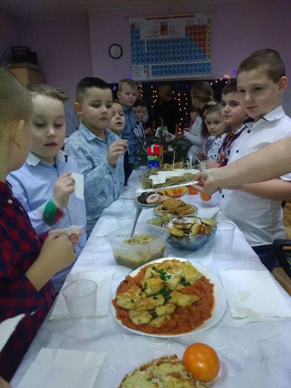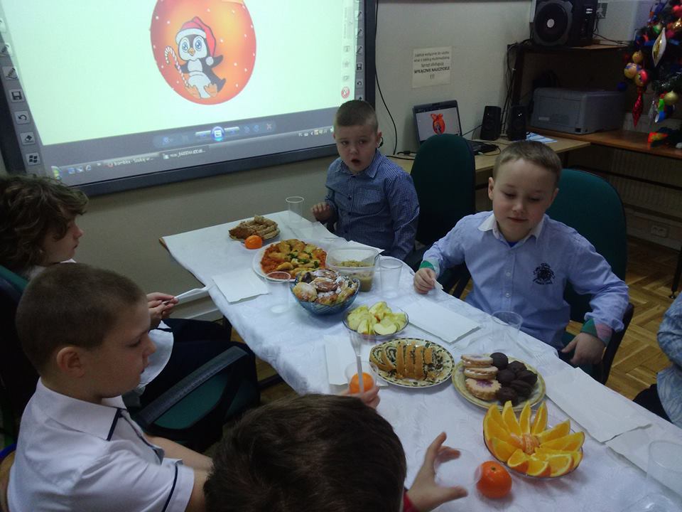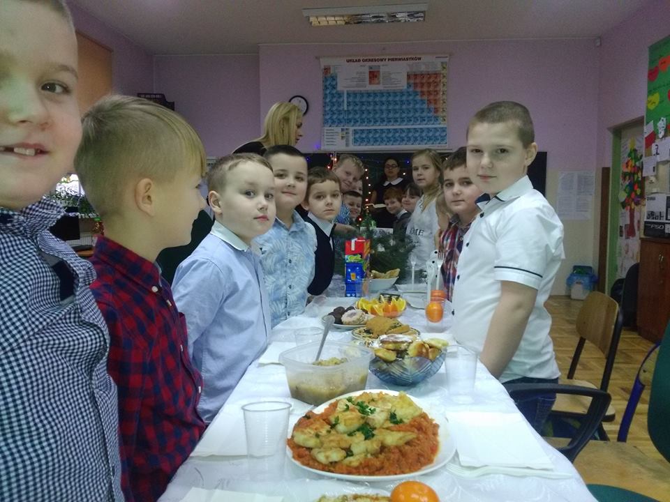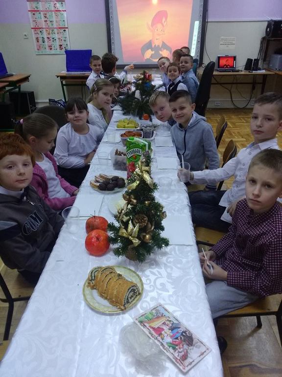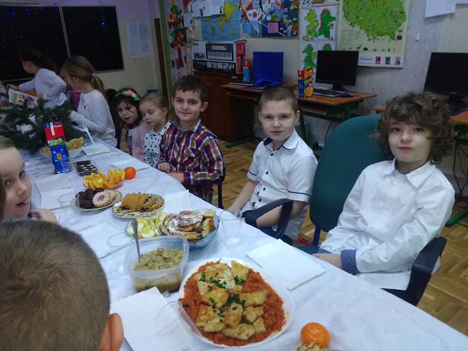 Boże Narodzenie to szczególny dla wszystkich czas. Po raz kolejny we wszystkich klasach nasza szkolna „rodzina” zebrała się, aby wspólnie spędzić chwilę w radosnej atmosferze oczekiwania na Boże Narodzenie. Po odczytaniu fragmentu Pisma Świętego wspólnie podzieliliśmy się opłatkiem i zaśpiewaliśmy kolędy, a z pomocą naszych nieocenionych mam przygotowaliśmy przepyszne potrawy wigilijne. Otrzymaliśmy moc ciepłych życzeń nie tylko od naszych klasowych przyjaciół, ale też od naszych Nauczycieli i Dyrekcji. Wierzymy, że spełnią się wszystkie!