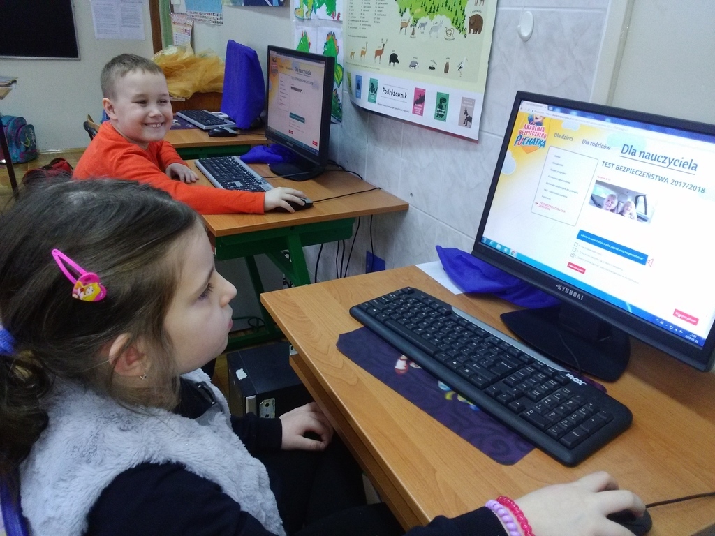 Edukacja i długotrwałe budowanie prawidłowych postaw od najmłodszych lat dają szansę na poprawę bezpieczeństwa dzieci. Dlatego po raz kolejny pierwszaki z NSP w Owadowie wzięły udział w IX edycji Programu Akademia Bezpiecznego Puchatka, którego patronami są Komendant Główny Policji oraz Kuratoria Oświaty, a szkolnym koordynatorem jak co roku jest Pani Katarzyna Rajkowska. W zeszłorocznej edycji programu dzieci bardzo dobrze poradziły sobie z tematyką związaną z poruszaniem się po drogach oraz ze wszystkimi zadaniami jakie czekały na nich podczas warsztatów przeprowadzonych przez koordynatora. W dniu 01.02.8r. pierwszaki z Owadowa wzięły udział w Ogólnopolskim Teście Bezpieczeństwa sprawdzającym zdobytą przez pierwszoklasistów wiedzę z zakresu profilaktyki, bezpieczeństwa oraz zasad udzielania pierwszej pomocy. Ogólnopolski Test Bezpieczeństwa miał trakcyjną, multimedialną formułę. Dzieci odpowiadając online na 15 pytań miały 3 możliwości do wyboru. Do każdego pytania podane były trzy warianty odpowiedzi, z których tylko jedna była prawidłowa. Po zakończeniu testu dzieci otrzymały informację, ile poprawnych odpowiedzi wybrały. Test ma nie tylko sprawdzać wiedzę, ale również uczyć. Po zakończonym teście klasa I otrzymała Certyfikat Akademii Bezpiecznego Puchatka 2017/18. Pierwszakom składamy serdeczne gratulacje!!!