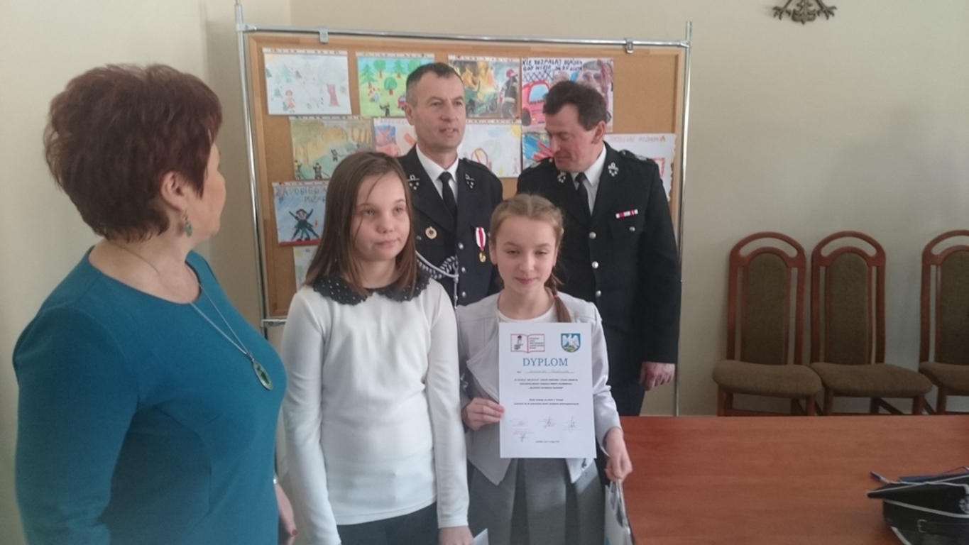 W dniu 13 lutego 2018r, odbyły się eliminacje gminne Ogólnopolskiego Turnieju Wiedzy Pożarniczej ,,Młodzież Zapobiega Pożarom”. Reprezentantkami z Owadowa były uczennice: Julia Tomaszewska i Weronika Woźniak, przygotowane do konkursu przez pana Jakuba Rajkowskiego. Organizatorem Gminnego Turnieju Wiedzy Pożarniczej był Zarząd Gminny OSP w Jastrzębi przy współpracy Wójta Gminy Jastrzębi Elżbiety Zasady, dyrektorów szkół podstawowych i gimnazjum. Podobnie jak w latach ubiegłych turniej odbył się w Urzędzie Gminy Jastrzębia. Na konkurs przybyło wielu uczniów szkół podstawowych: Owadów, Mąkosy Stare, Wola Goryńska, Jastrzębia, Lesiów, Kozłów. Uczestnicy podzieleni na dwie grupy wiekowe: szkoły podstawowe i gimnazja, musieli wykazać się obszerną wiedzą pożarniczą, rozwiązując test pisemny, na podstawie którego byli oceniani. Jury konkursu wyłoniło po 5 osób z każdej grupy wiekowej do części ustnej. Część pisemna trwała 30 minut, a ustna 1,5 godziny!!! W wyniku rozgrywek finałowych I miejsce w kategorii szkół podstawowych uzyskała Weronika Woźniak. Weronice składamy serdeczne gratulacje i życzymy sukcesów na etapie powiatowym.