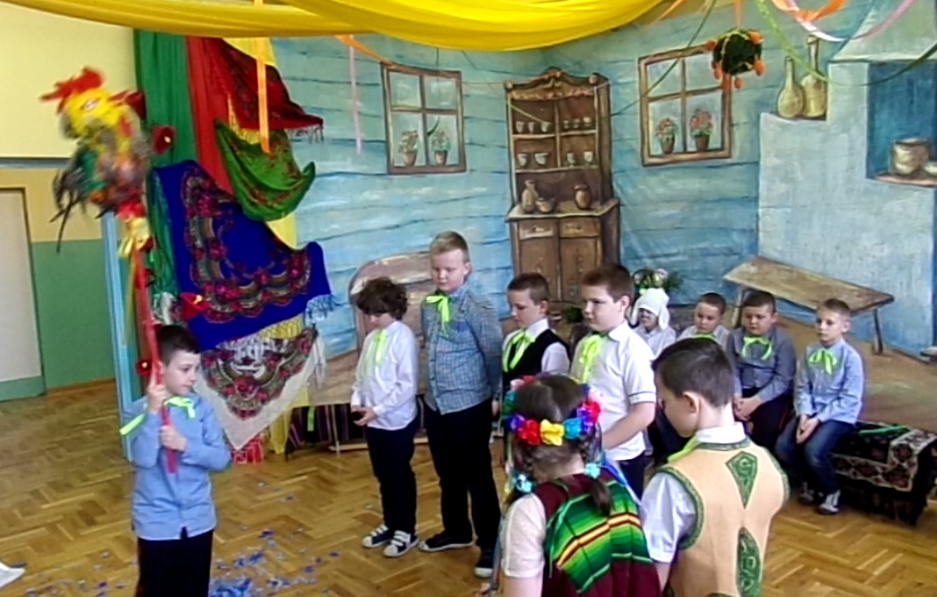 Przed Świętami Wielkiej Nocy w owadowskiej szkole zgomadzili się rodzice, uczniowie i pracownicy szkoły. Uczniowie klas I-III pod kierownictwem Pani Kasi Rajkowskiej wychowawcy kl.III, przenieśli nas w przeszłość, kiedy to na Wielkanoc po wsiach chodziło sie z kurkiem, tańczyło z gaikiem czy śpiewało z bębnem. Dzieci przy kolorowej scenerii pięknej dekoracji przedstawiającej dawną chatę wiejską, odegrały ponad godzinne przedstawienie o chrakterze religijnym, a zarazem i tradycyjnym. Pokazano wiele zapomnianych juz tradycji i zwyczajów, ale i przedstawiono te które przetrwały do dziś. W przedstawieniu wziął udział także żywy królik, ale nie zabrakło barwnie przystrojonych aktorów takich jak: baranek, pisanki, króliczek czy kura oraz rekwizytów ludowych, palm wielkanocnych ręcznie tworzonych na warsztatach, pisanek i wielu innych. Wszystkim dzieciom z klas 0-VII łącznie z przedszkolakami składamy serdeczne podziękowania za wkład w realizację tego przedstawienia, a zarazem gratulacje oraz życzenia wielkanocne.