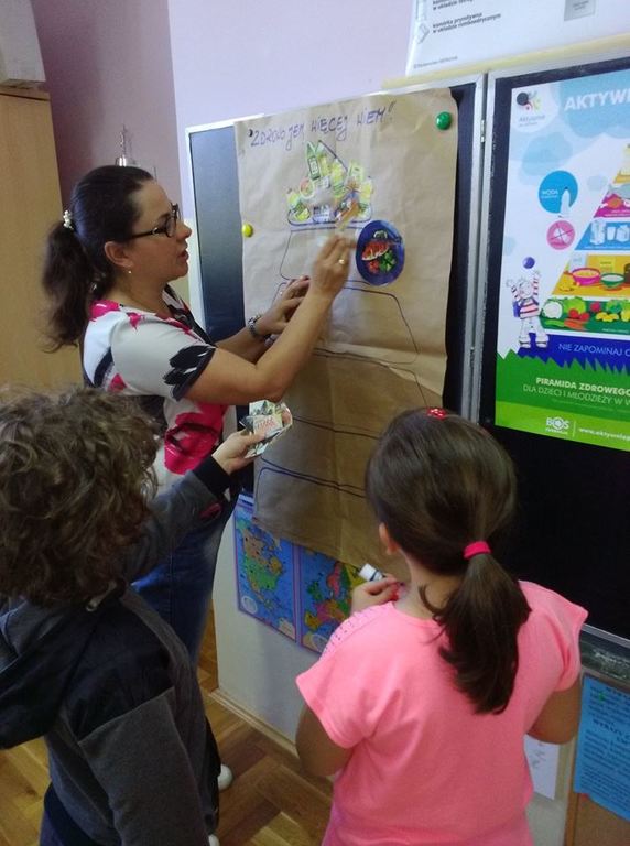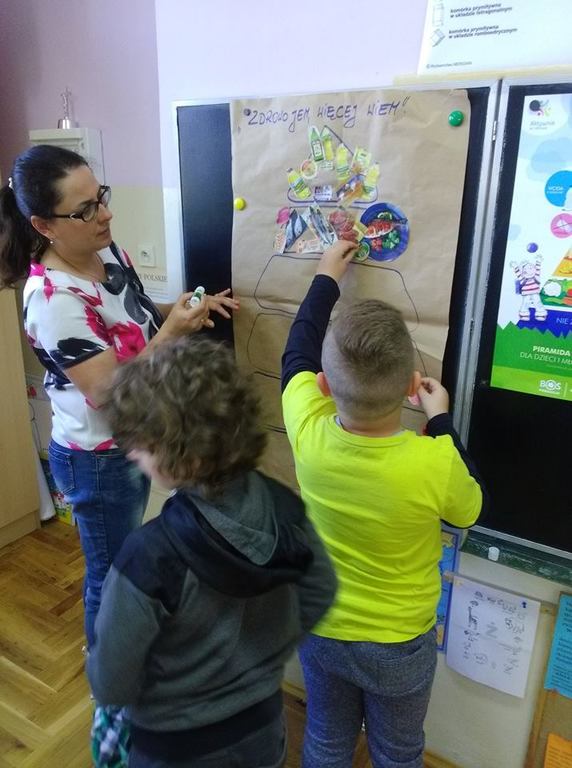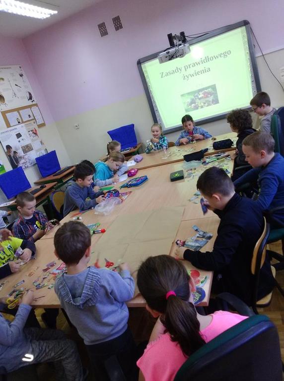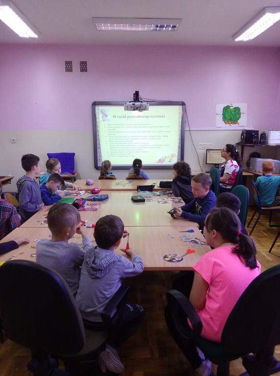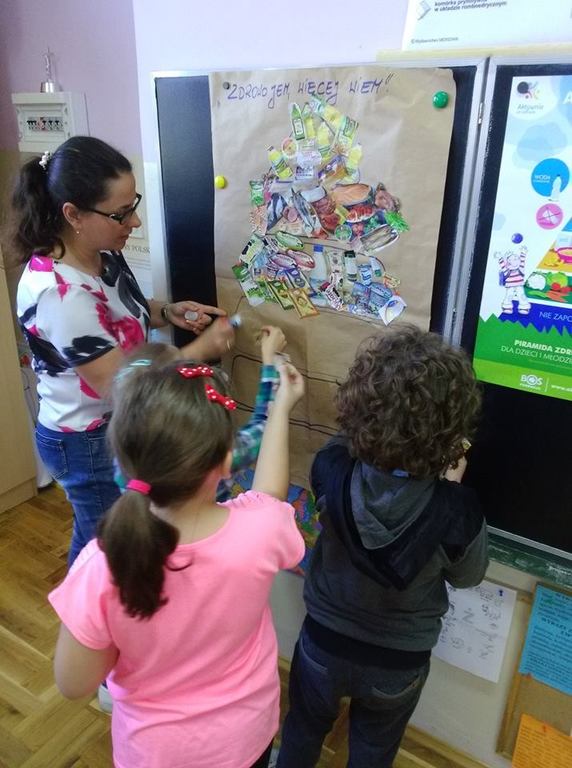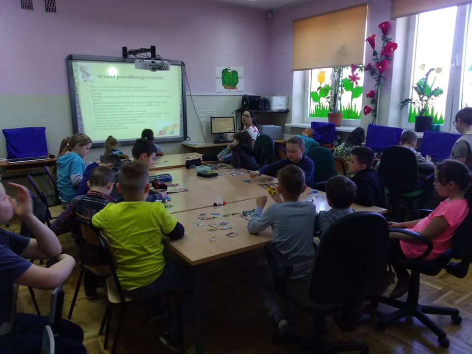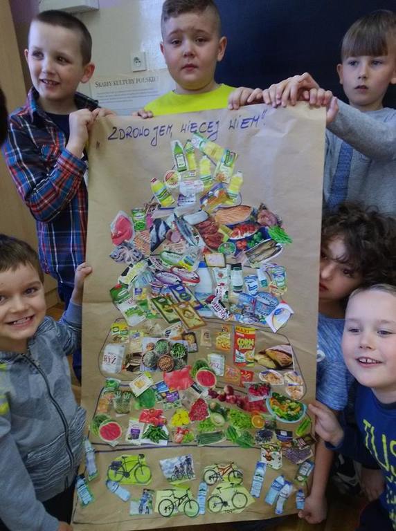 Uczniowie klas I-III biorą udział w programie „Zdrowo jem, więcej wiem”, to już kolejne warsztaty w których brali udział uczniowie klas wczesnoszkolnych. Uczniom najbardziej podobają się praktyczne zajęcia o zdrowiu, które cieszyły i nadal cieszą się ogromnym powodzeniem. Robiliśmy sałatki i soki owocowo - warzywne, samodzielnie śniadania, zdrowe kanapki i ludziki z warzyw i owoców, tworzyliśmy gazetkę ścienną, plakaty pt: „Dbam o zdrowie”, braliśmy udział w licznych konkursach o zdrowiu, uprawialiśmy warzywa i zioła, tworzyliśmy encyklopedie gier i zabaw, księgę warzywnych historyjek, braliśmy udział w wycieczkach na basen i lodowisko, a tym razem poznaliśmy zasady zdrowego trybu życia i tworzyliśmy piramidę zdrowego odżywiania. W zimowej edycji programu znów uzyskaliśmy imponującą liczbę punktów. Zaczynamy edycję wiosenną.