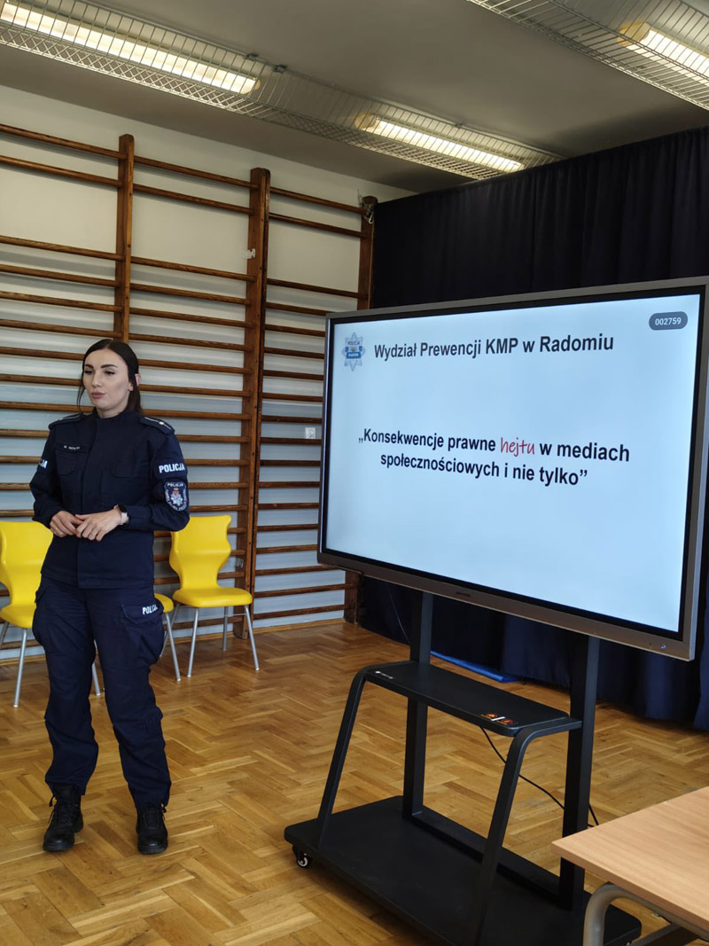 11 września 2025 r. odbyła się w naszej szkole niezwykle wartościowa i pouczająca prelekcja na temat "Cyberprzemocy w Internecie". Dziękujemy Wydziałowi Prewencji Komendy Miejskiej Policji w Radomiu. Państwa wiedza i zaangażowanie oraz sposób przekazu przychyliły się do zwiększenia świadomości naszych uczniów w zakresie bezpiecznego korzystania z sieci.