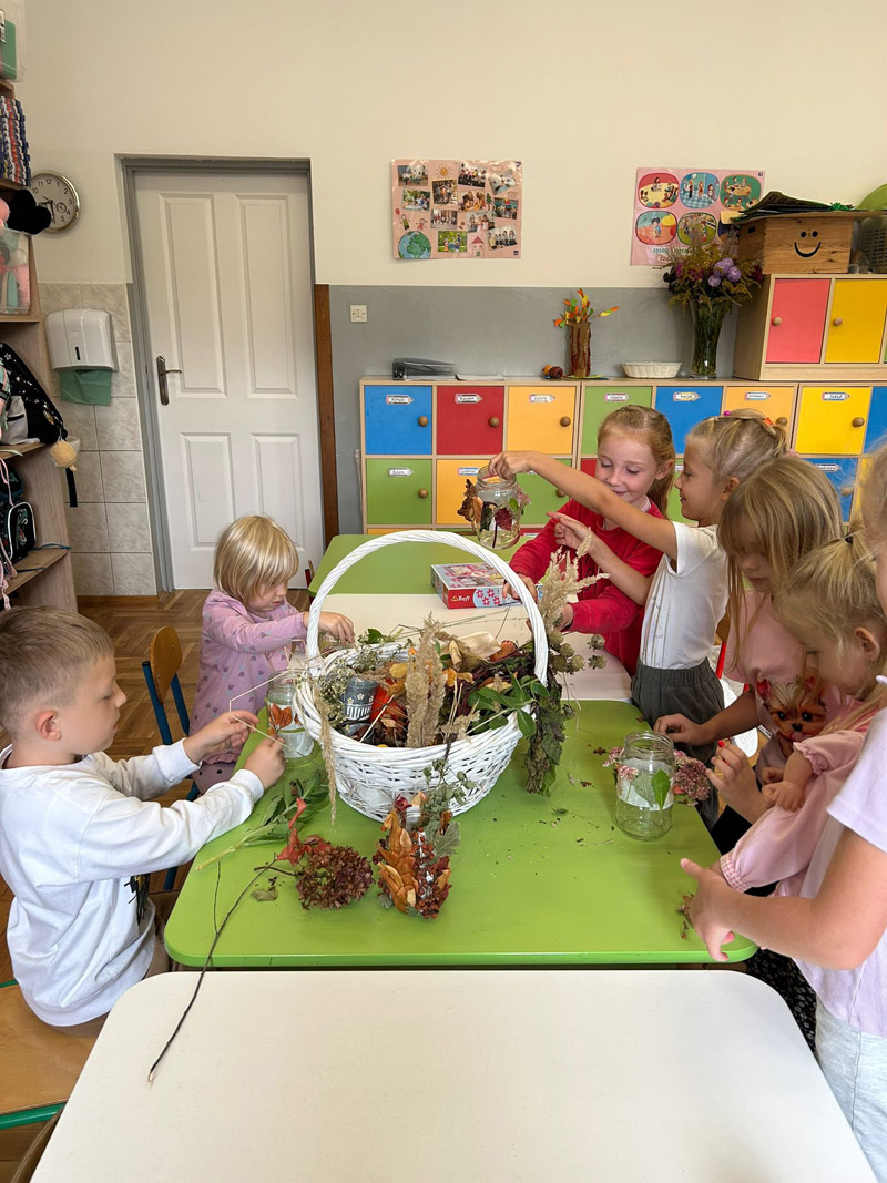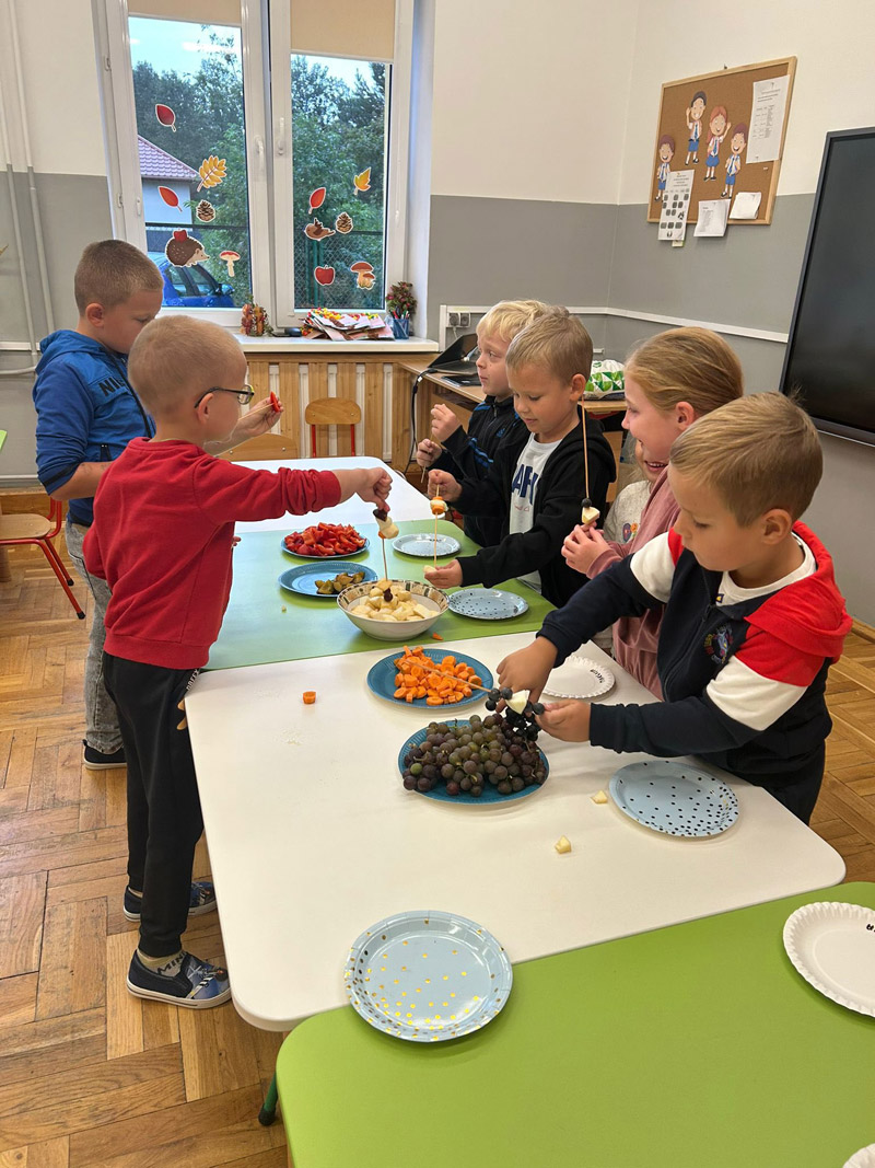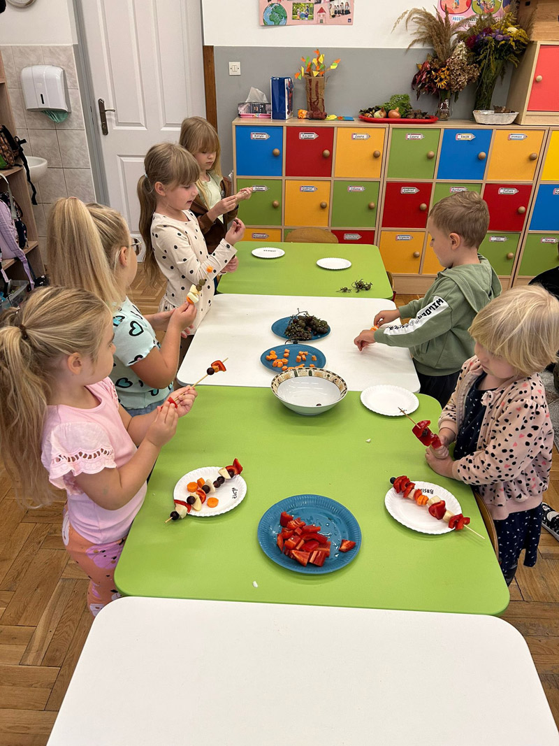 - Etapu kulinarnego. Mali kucharze przygotowywali pyszne potrawy z jesiennych darów, ucząc się współpracy i zdrowych nawyków.