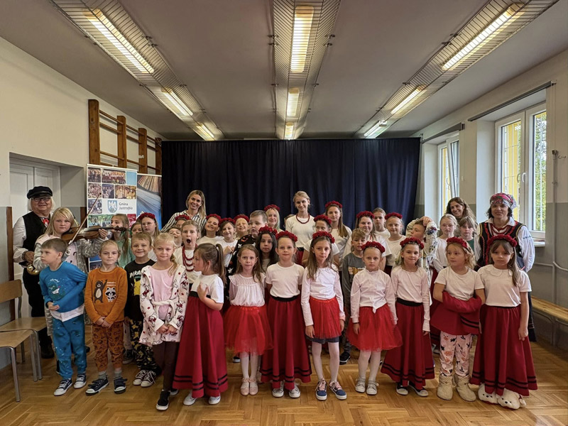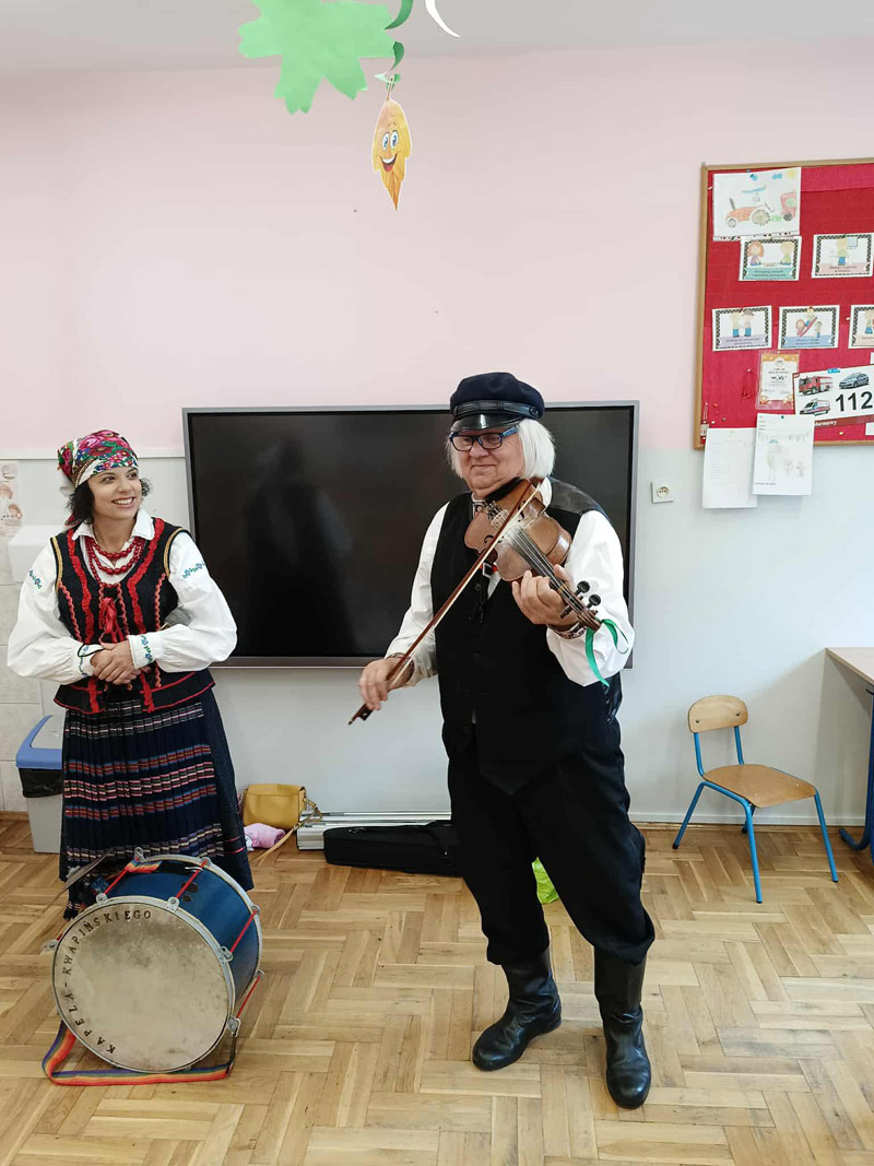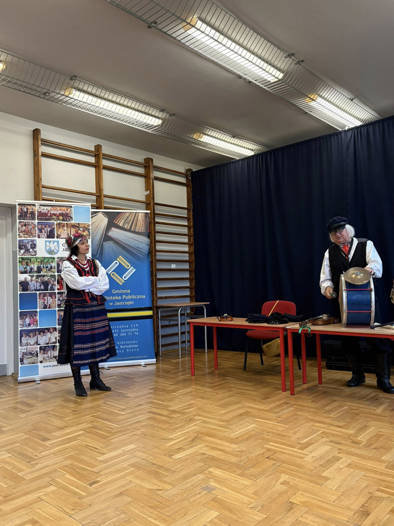10 października, wyjątkowo po raz drugi, gościliśmy w naszej szkole Pana Zdzisława Kwapińskiego, twórcę ludowego i muzyka oraz Panią Małgorzatę Skwarek, Dyrektor Gminnej Biblioteki Publicznej w Jastrzębi. Tym razem o muzyce ludowej mogli posłuchać uczniowie klas 0–III oraz przedszkolaki z PP "Miś".