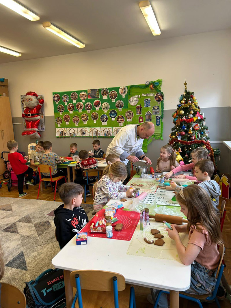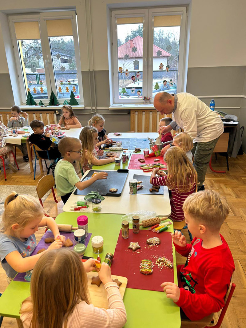 15 grudnia w przedszkolu oraz w klasie 0 cudownie pachniało pierniczkami! Tego dnia odbyły się świąteczne warsztaty dekorowania pierniczków, podczas których dzieci z wielkim zaangażowaniem ozdabiały słodkie wypieki. Kolorowe lukry i posypki zamieniły pierniczki w prawdziwe małe dzieła sztuki.