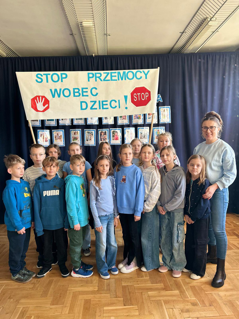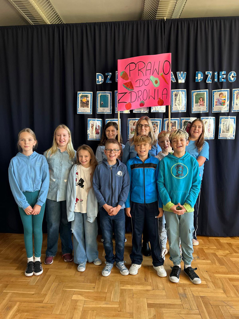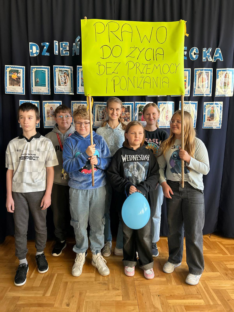 18 listopada obchodziliśmy Międzynarodowy Dzień Praw Dziecka, podkreślający znaczenie ochrony i poszanowania praw każdego dziecka. Tego dnia cała społeczność szkolna, ubrana na niebiesko, zaśpiewała hymn Praw Dziecka i przeszła z transparentami wokół szkoły. Wydarzeniu towarzyszyła także prelekcja mł. asp. K. Karcz oraz mł. asp. P. Kowalczyk z Komendy Miejskiej Policji w Radomiu. Dziękujemy funkcjonariuszom Policji za wsparcie.
